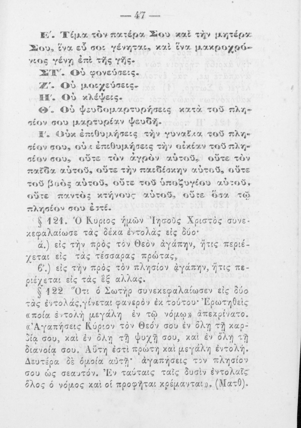 Σχολικό εγχειρίδιο για τις τάξεις του Ελληνικού για το μάθημα των Θρησκευτικών. Το εγχειρίδιο περιλαμβάνει εισαγωγικά τους ορισμούς της κατήχησης, τα ιερά βιβλία της χριστιανικής εκκλησίας, τις δέκα εντολές. Ο