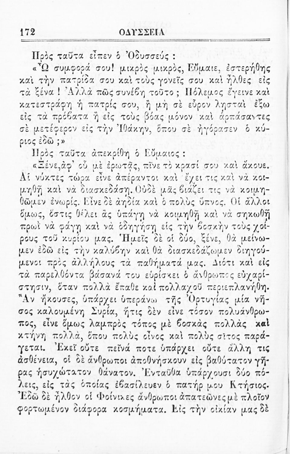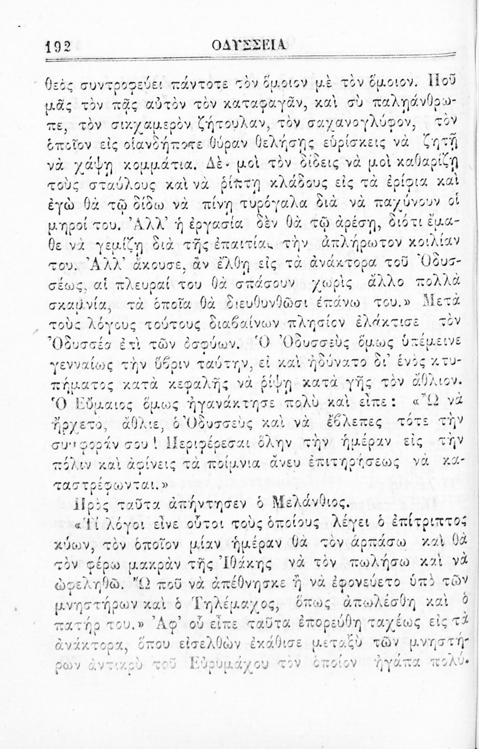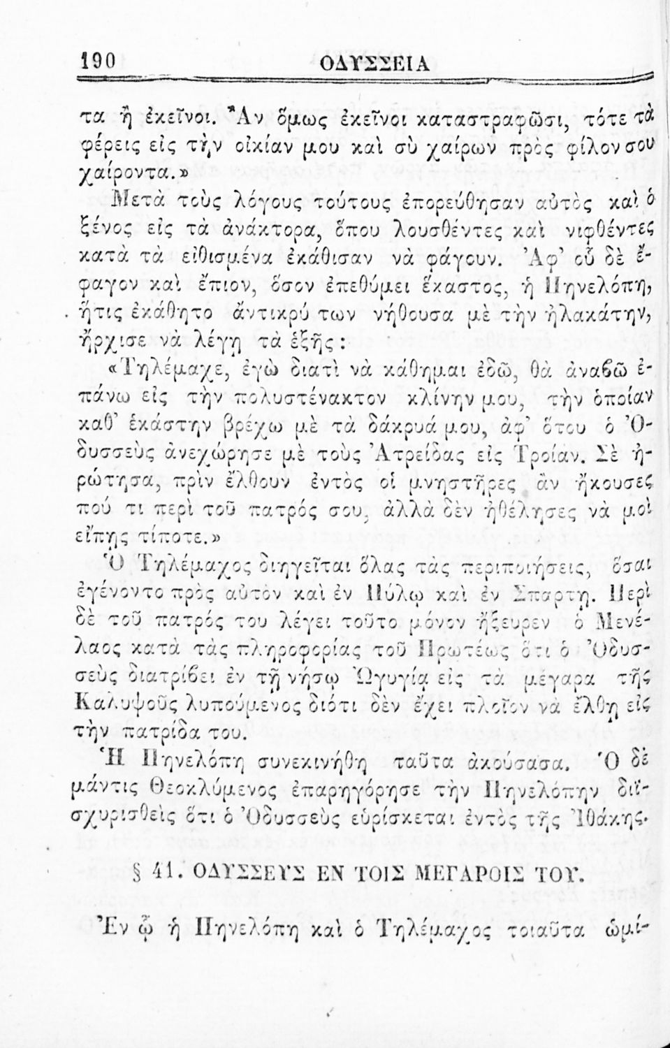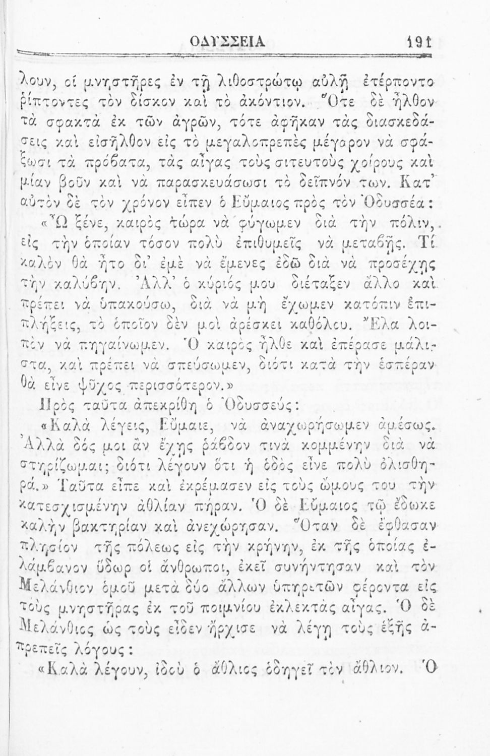 Παρουσίαση περιεχομένου: Αναγνωστικό για τα Δημοτικά Σχολεία και Παρθεναγωγεία που εξιστορεί τις περιπέτειες του Οδυσσέα. Το κείμενο συνοδεύεται από γλωσσικές και ερμηνευτικές σημειώσεις.