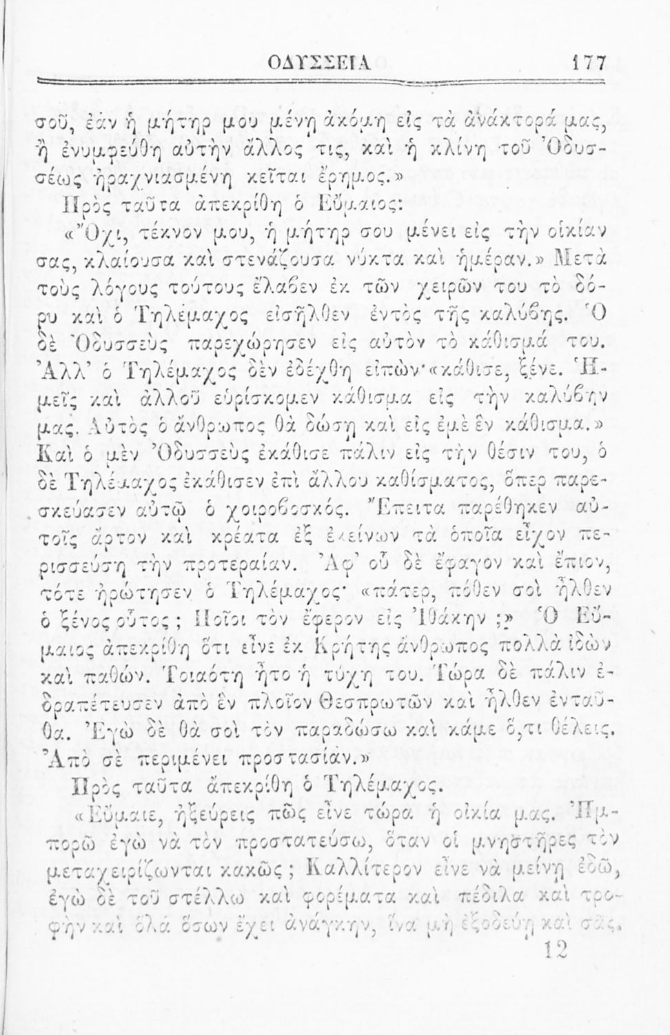 Τίτλος: Ομήρου Οδύσσεια, προς χρήσιν των Δημοτικών Σχολείων ιδία δε των Παρθεναγωγείων, μετ΄ εικόνων, τεύχος Α΄