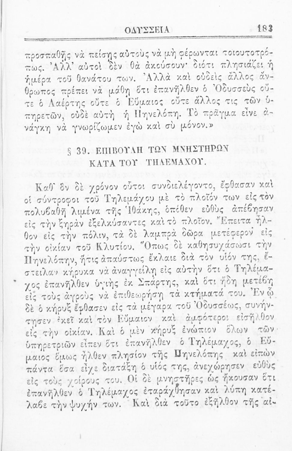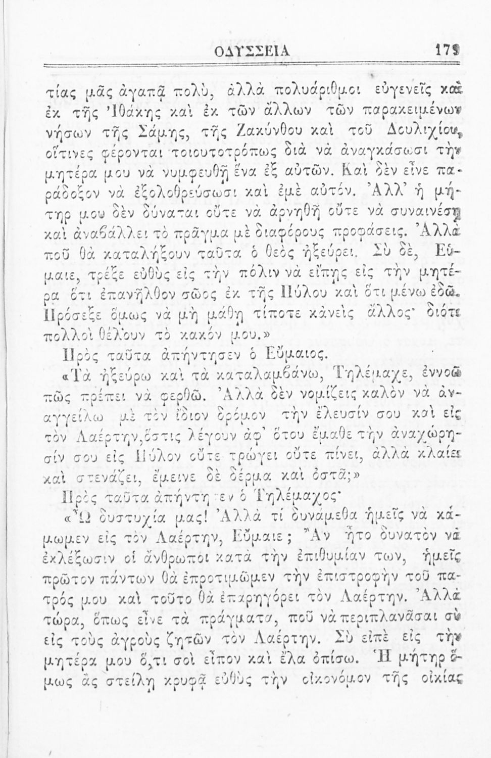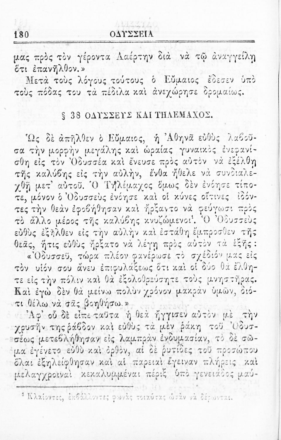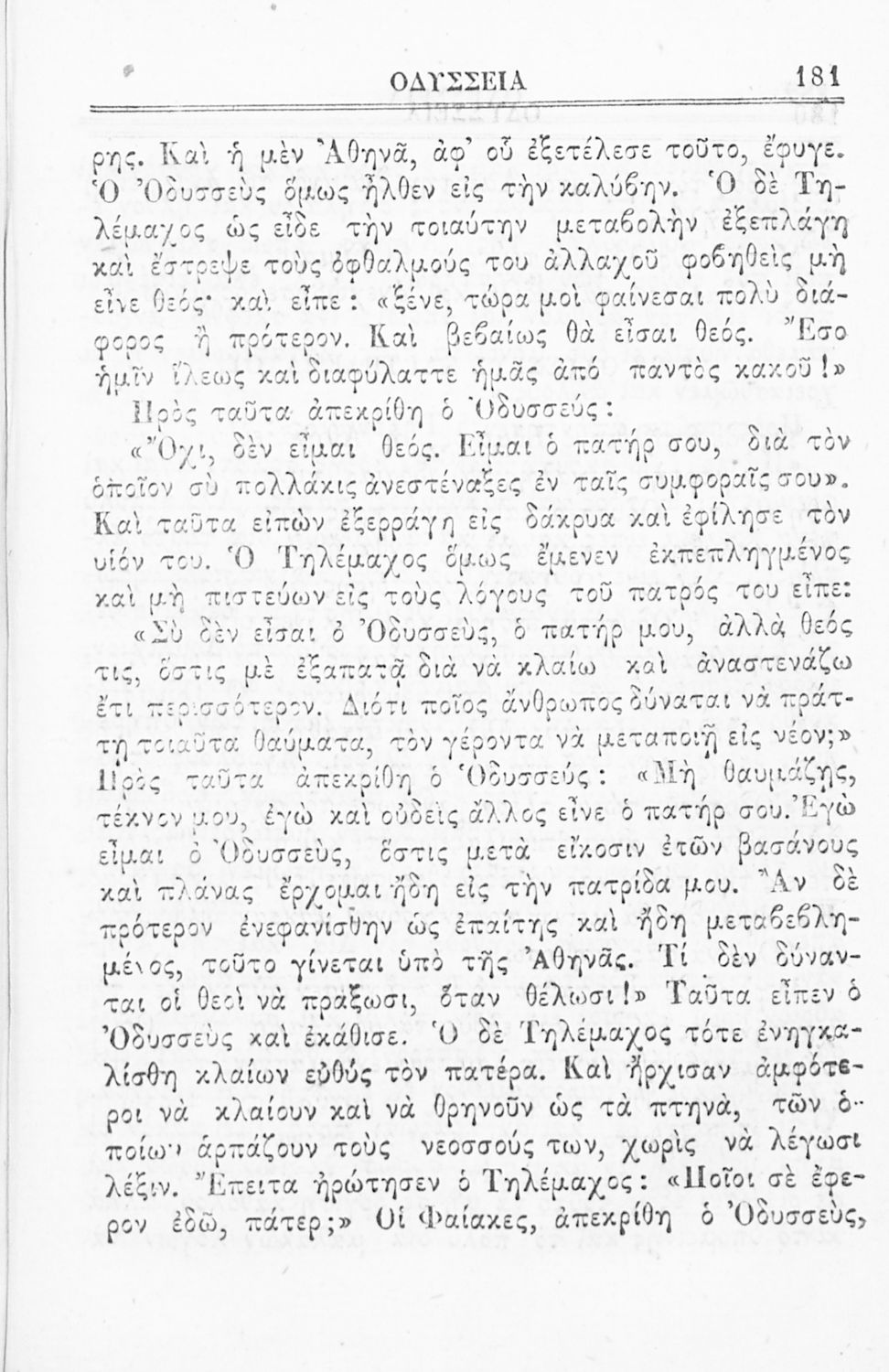 Ομήρου Οδύσσεια, προς χρήσιν των Δημοτικών Σχολείων ιδία δε των Παρθεναγωγείων, μετ΄ εικόνων, τεύχος Α΄