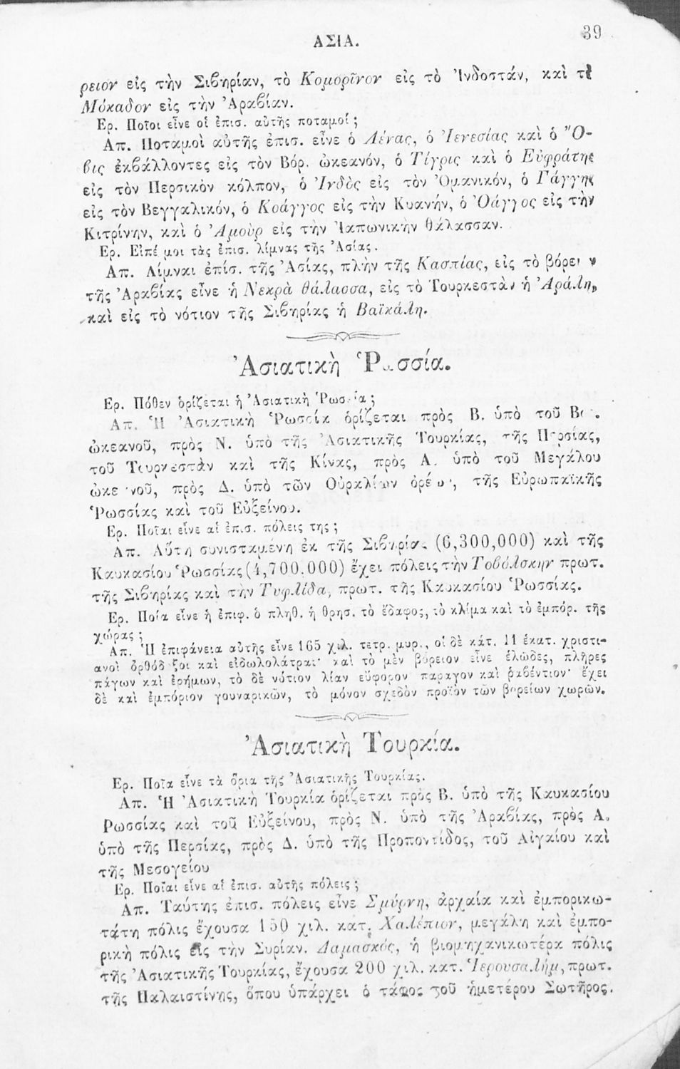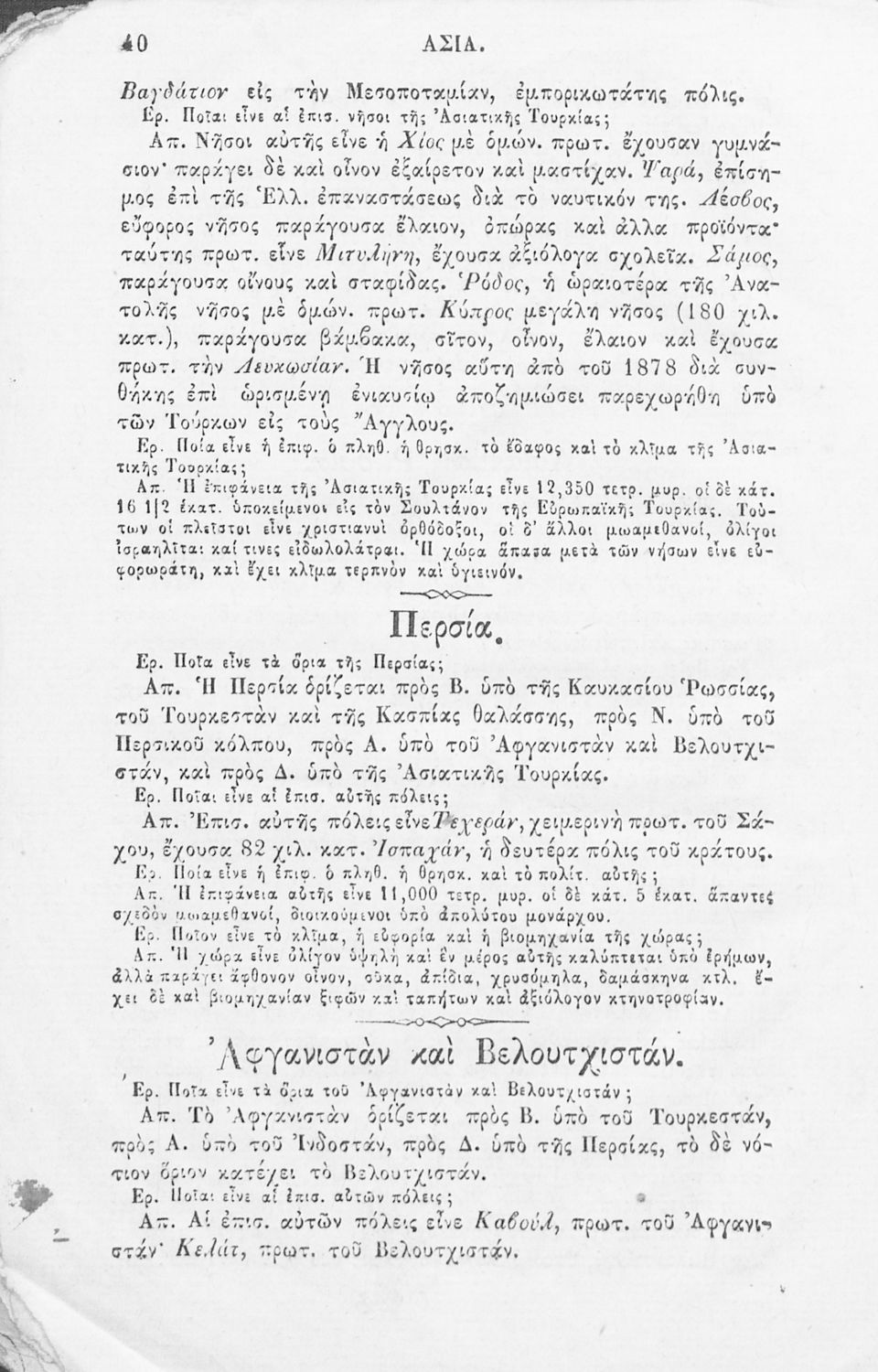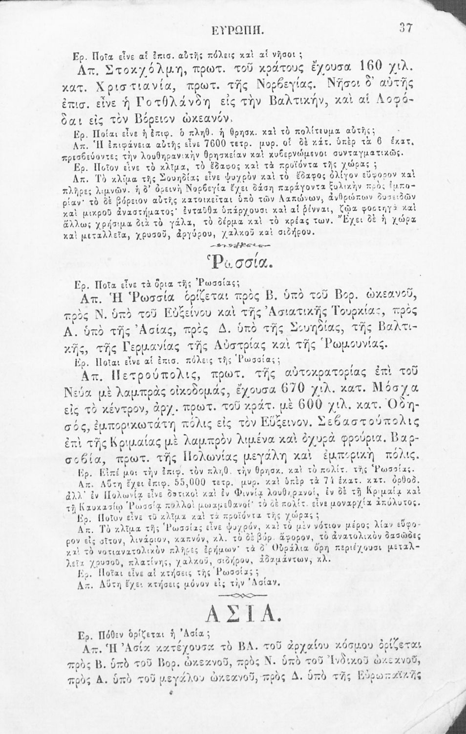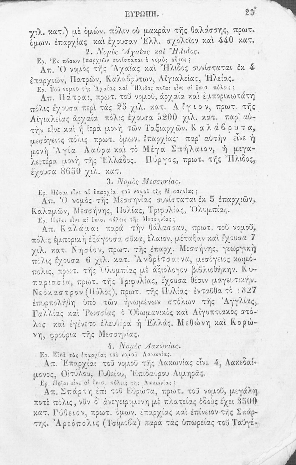 Σχολικό εγχειρίδιο Γεωγραφίας για τα Ελληνικά Σχολεία που περιλαμβάνει εισαγωγή στις βασικές έννοιες και ορισμούς της επιστήμης, και στοιχεία μαθηματικής, φυσικής και πολιτικής γεωγραφίας των πέντε ηπείρων.