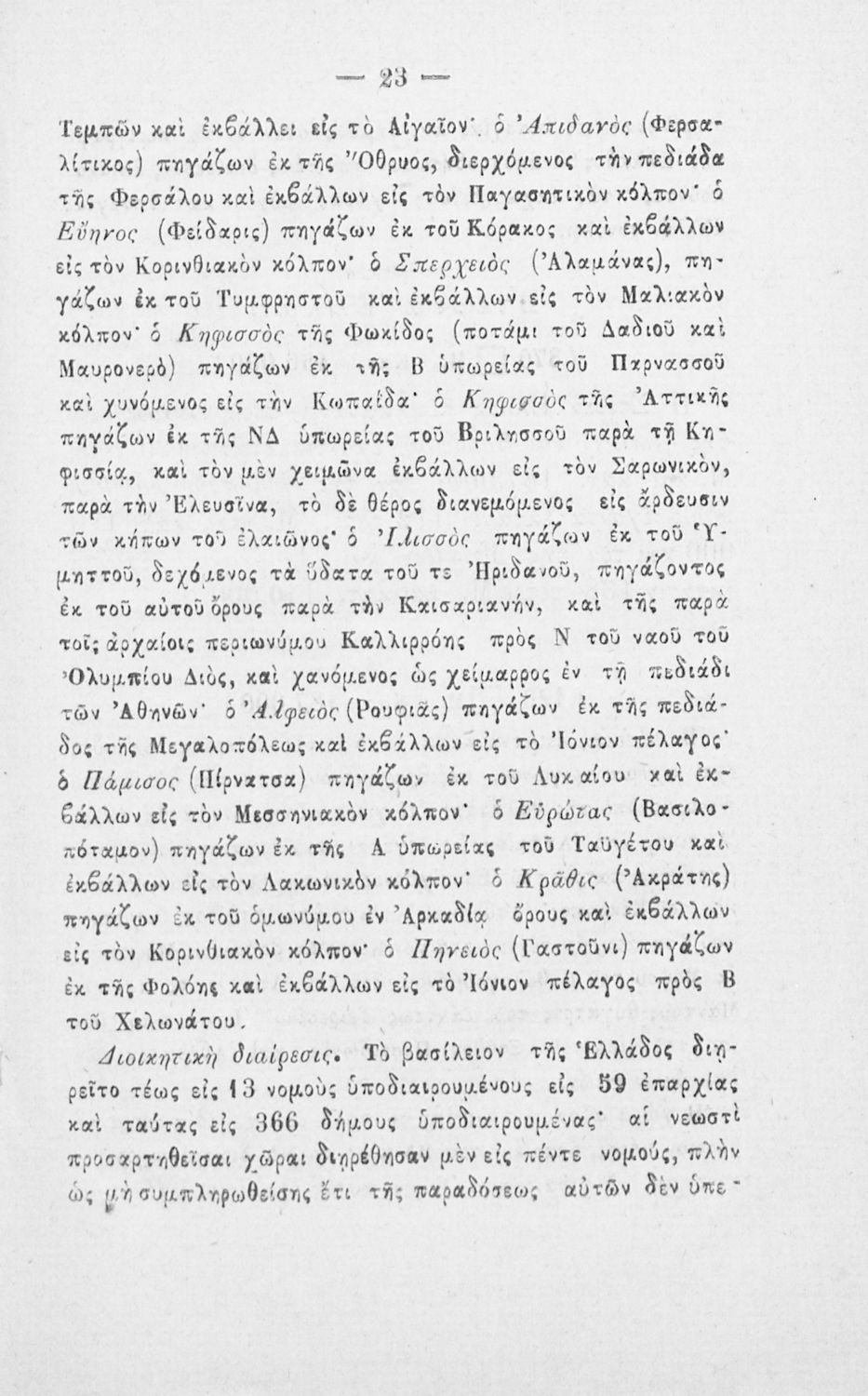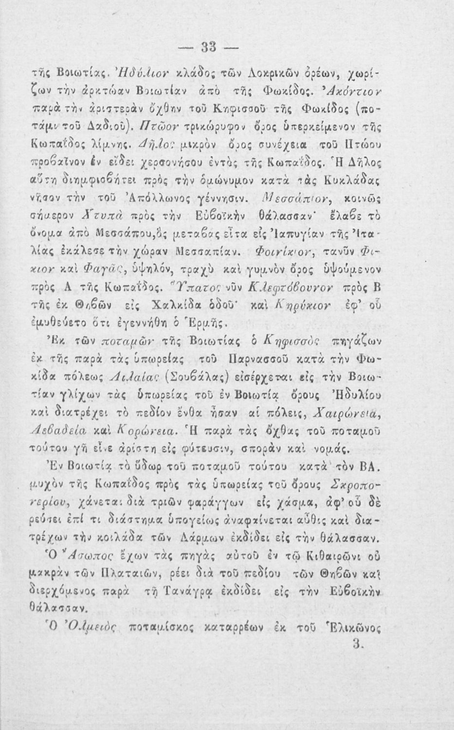 Σχολικό εγχειρίδιο Γεωγραφίας που περιέχει στοιχεία φυσικής και πολιτικής γεωγραφίας της Ελλάδας καθώς και αναφορές στα ιστορικά γεγονότα της απελευθέρωσης της κάθε περιοχής από τους Οθωμανούς. Το εγχειρίδιο είχε εγκριθεί από το Αυτοκρατορικό Υπουργείο Δημόσιας Εκπαιδεύσεως.