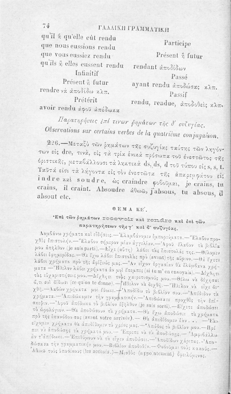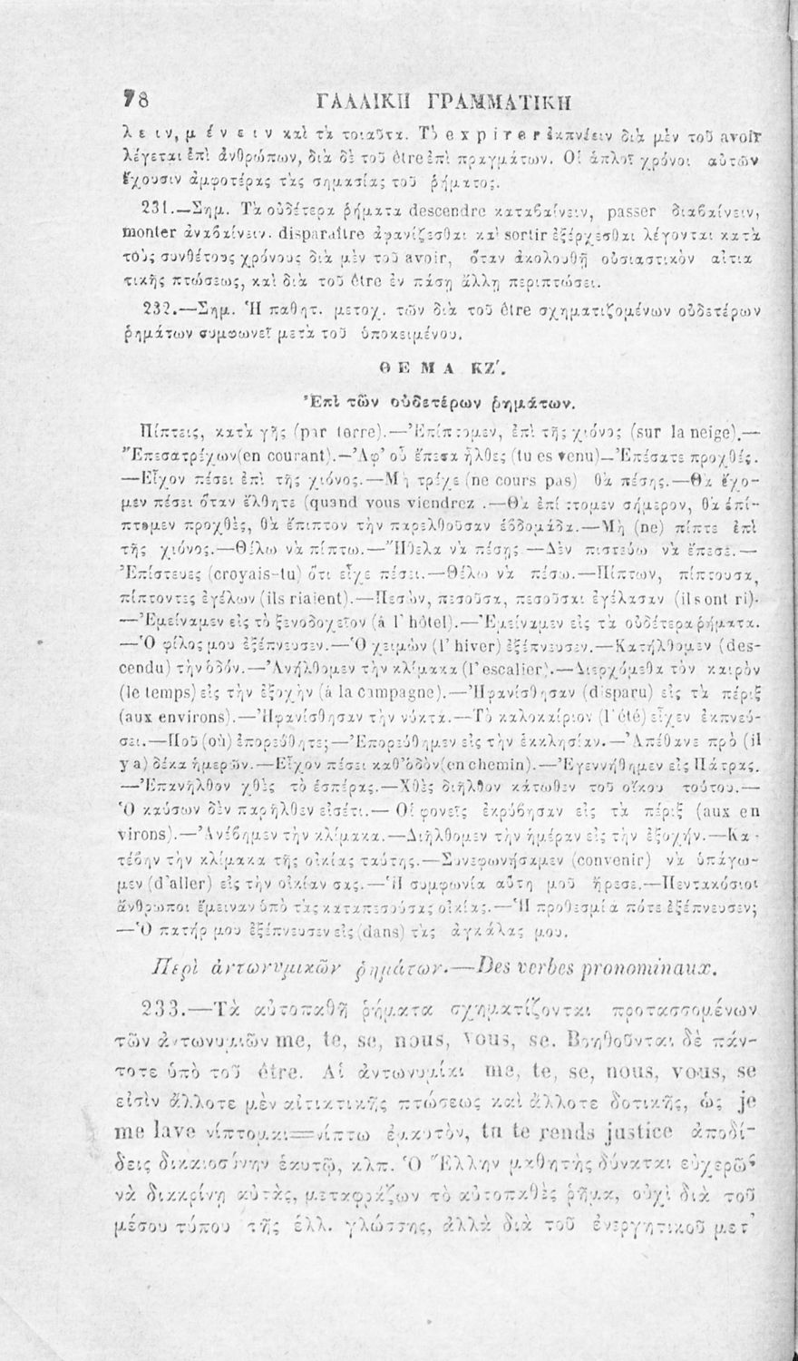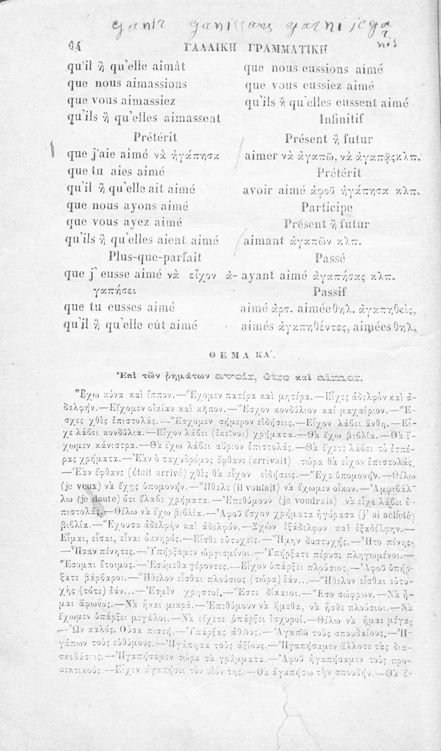 Γραμματική της γαλλικής γλώσσης θεωρητική τε και πρακτική, προς χρήσιν των Γυμνασίων, μετά προσθήκης θεμάτων, γυμνασμάτων, παρατηρήσεων και πραγματείας περί προσωδείας