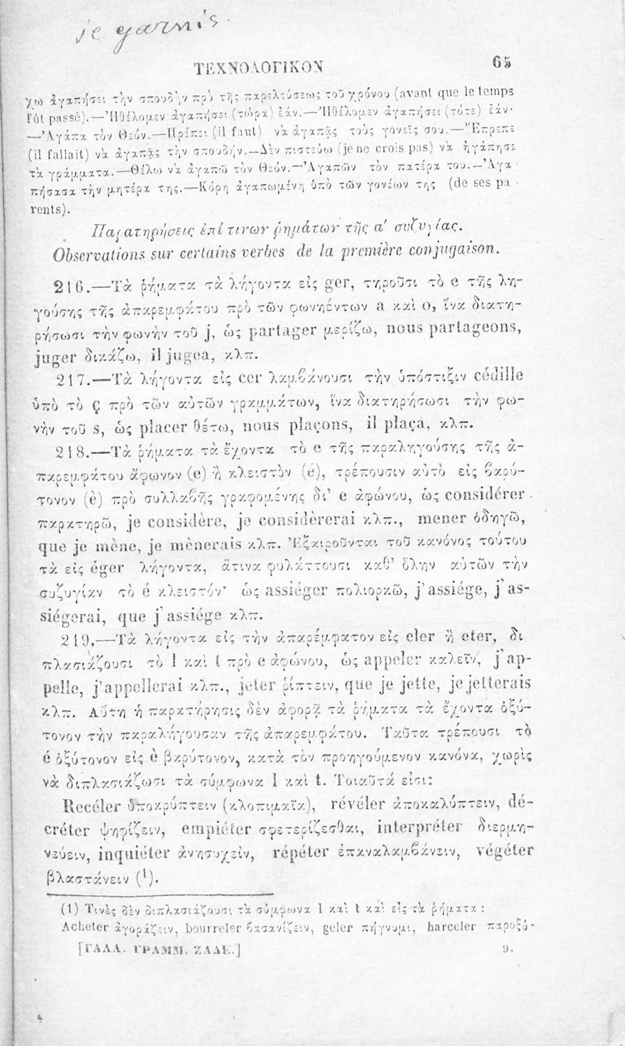 Σχολικό εγχειρίδιο Γαλλικών για τα Ελληνικά Σχολεία και Γυμνάσια που περιέχει τους κανόνες γραμματικής και συντακτικού.