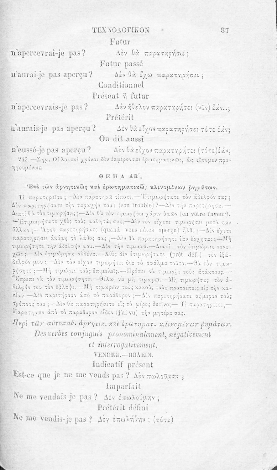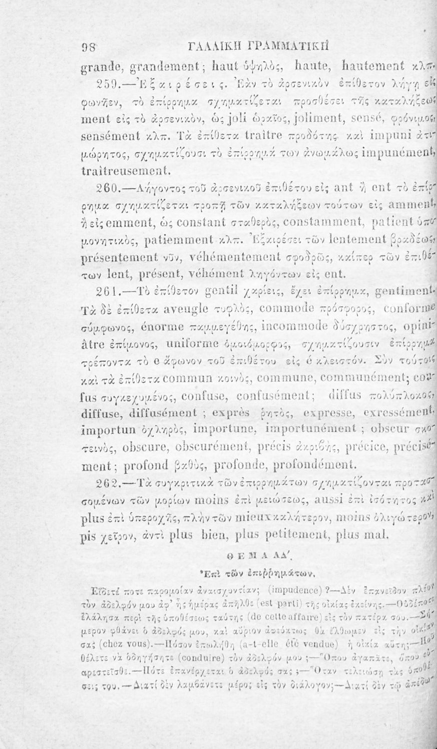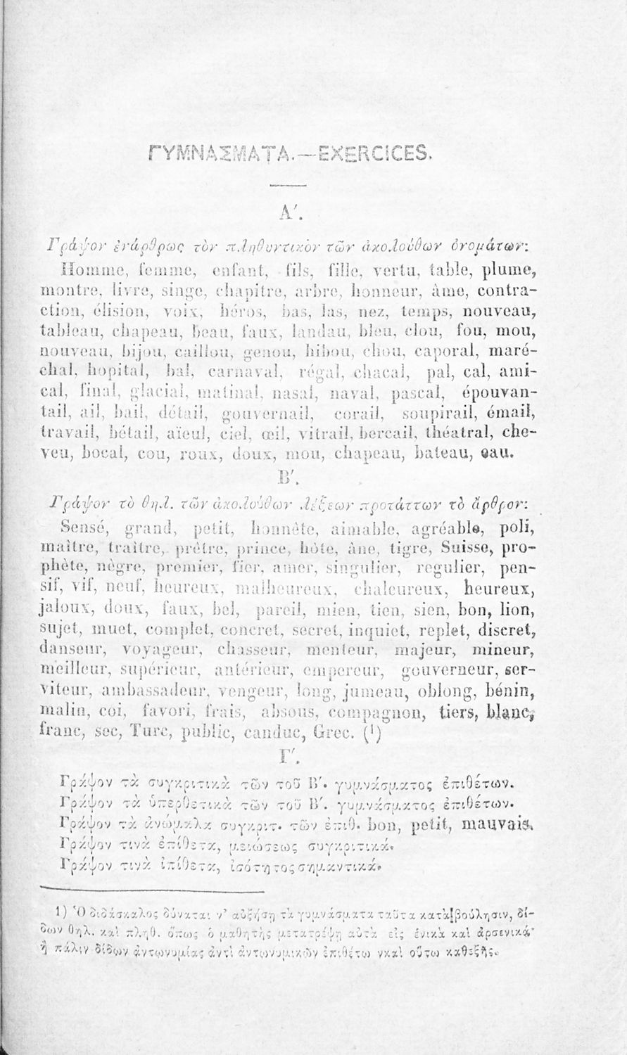 Γραμματική της γαλλικής γλώσσης θεωρητική τε και πρακτική, προς χρήσιν των Γυμνασίων, μετά προσθήκης θεμάτων, γυμνασμάτων, παρατηρήσεων και πραγματείας περί προσωδείας
