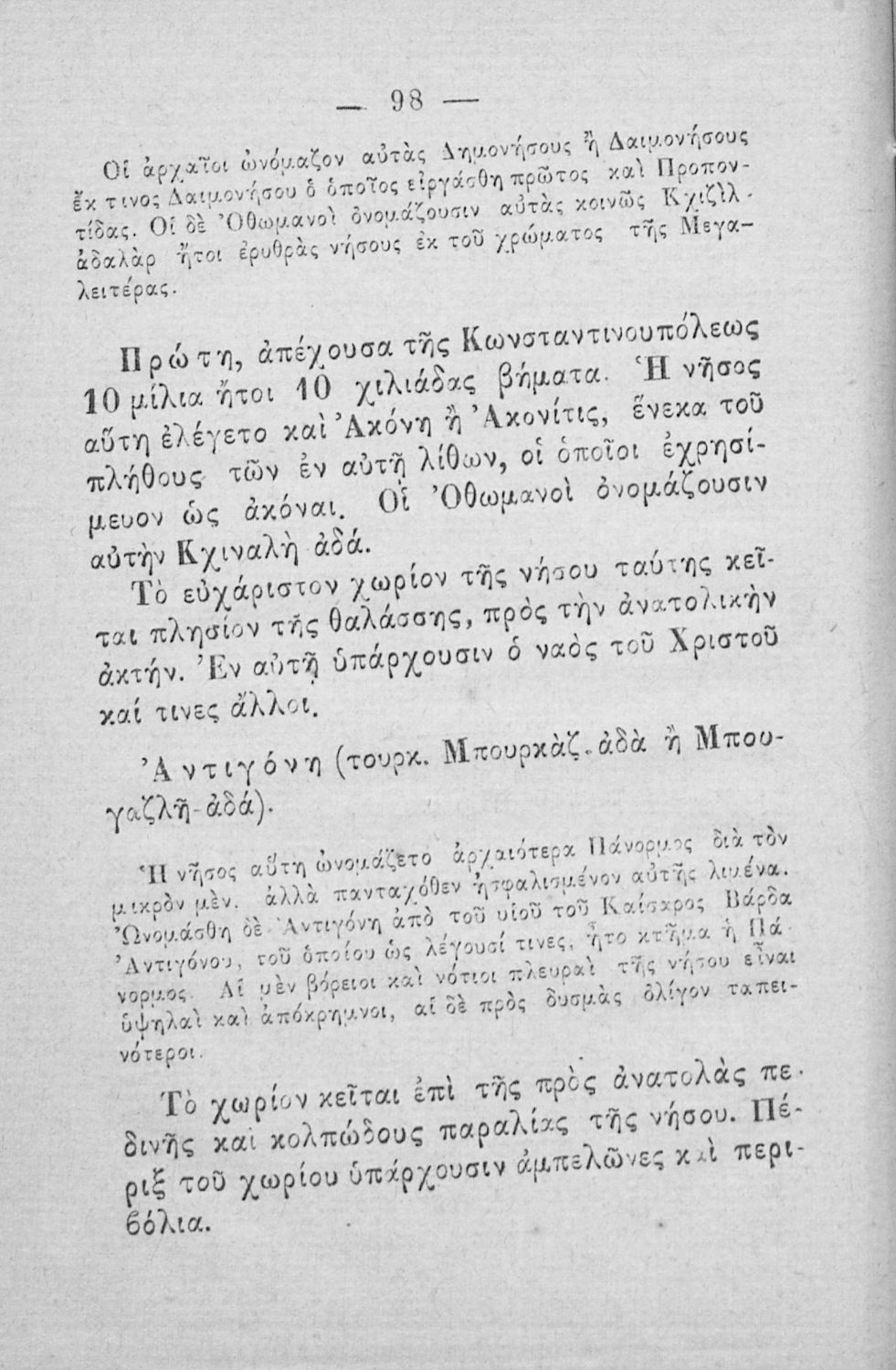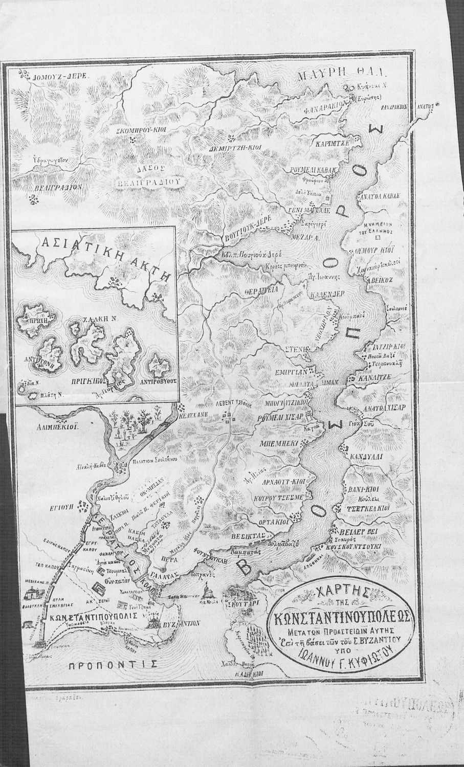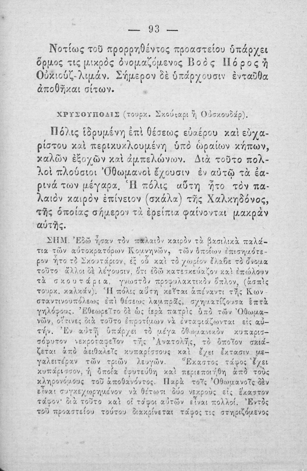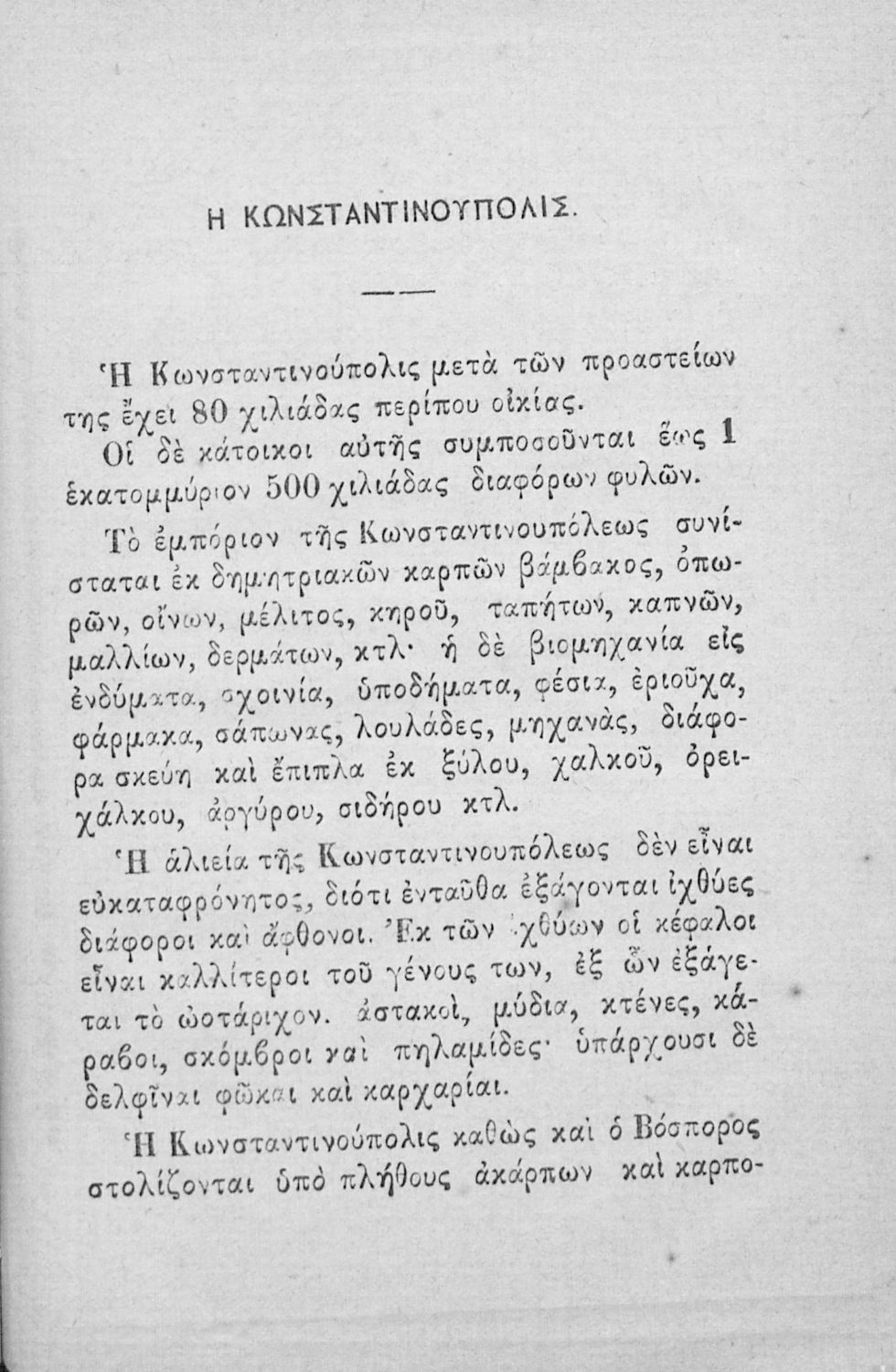 Σχολικό εγχειρίδιο Γεωγραφίας για τα Δημοτικά και τα Παρθεναγωγεία που περιέχει αναλυτική περιγραφή των συνοικιών της Κωνσταντινούπολης και τη γεωμορφολογία της Θράκης.
