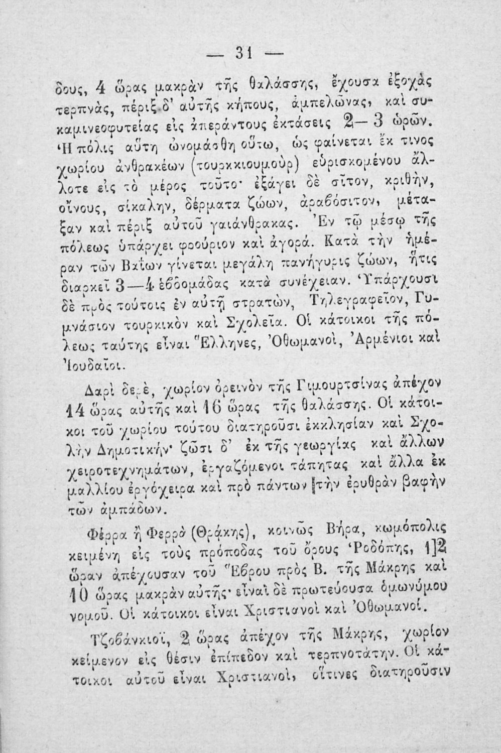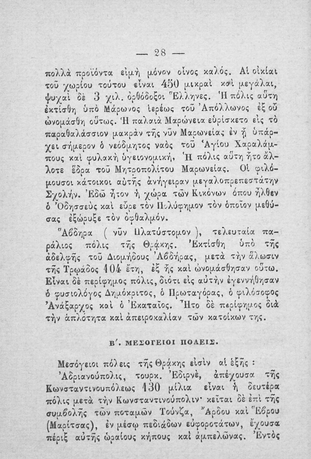 Σχολικό εγχειρίδιο Γεωγραφίας για τα Δημοτικά και τα Παρθεναγωγεία που περιέχει αναλυτική περιγραφή των συνοικιών της Κωνσταντινούπολης και τη γεωμορφολογία της Θράκης.