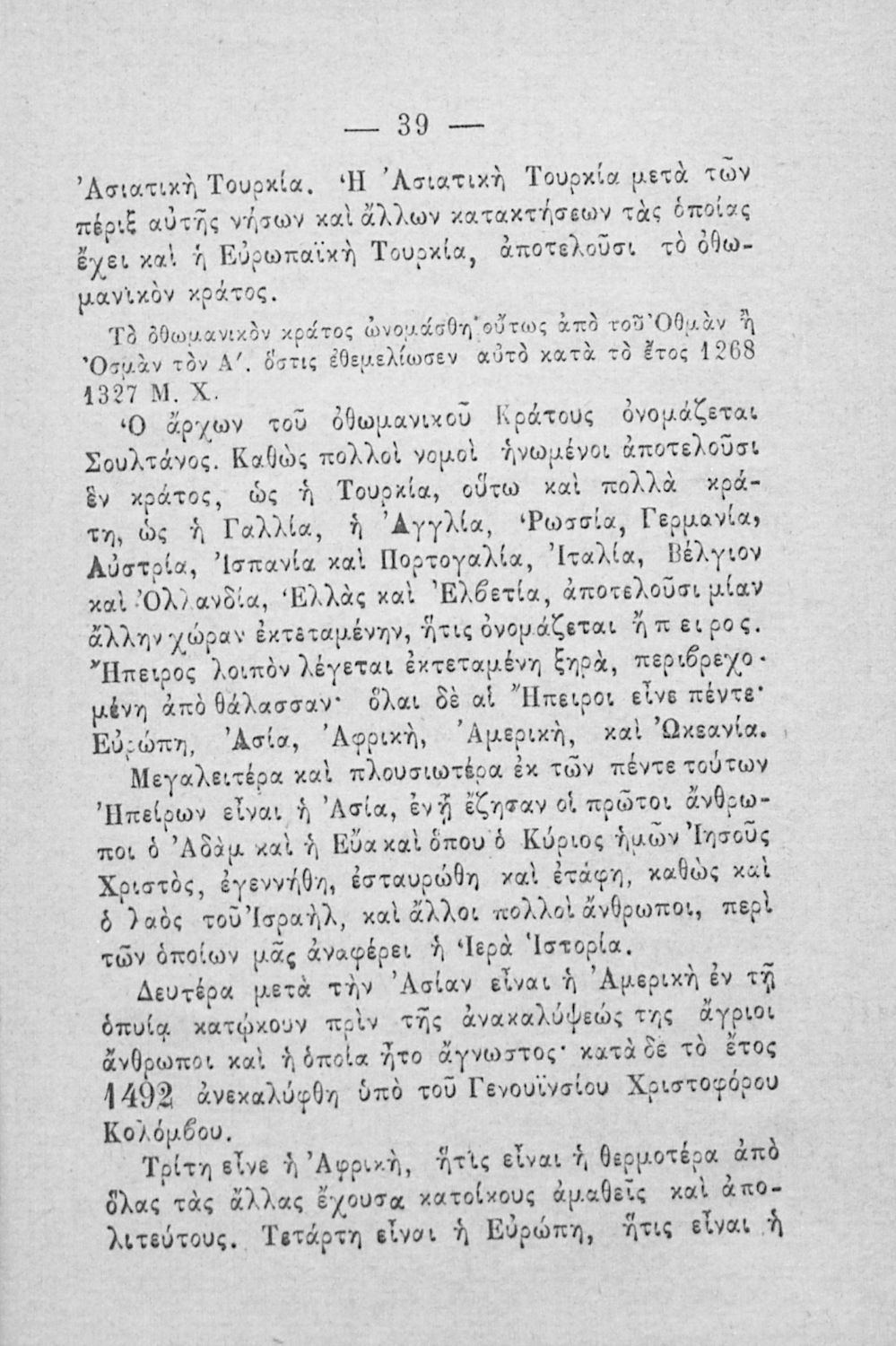 Σχολικό εγχειρίδιο Γεωγραφίας για τα Ελληνικά Σχολεία και Παρθεναγωγεία που περιλαμβάνει εισαγωγή στη φυσική, πολιτική και οικονομική γεωγραφία και μια γενική επισκόπηση της Ελλάδας και της Ευρωπαϊκής Τουρκίας
