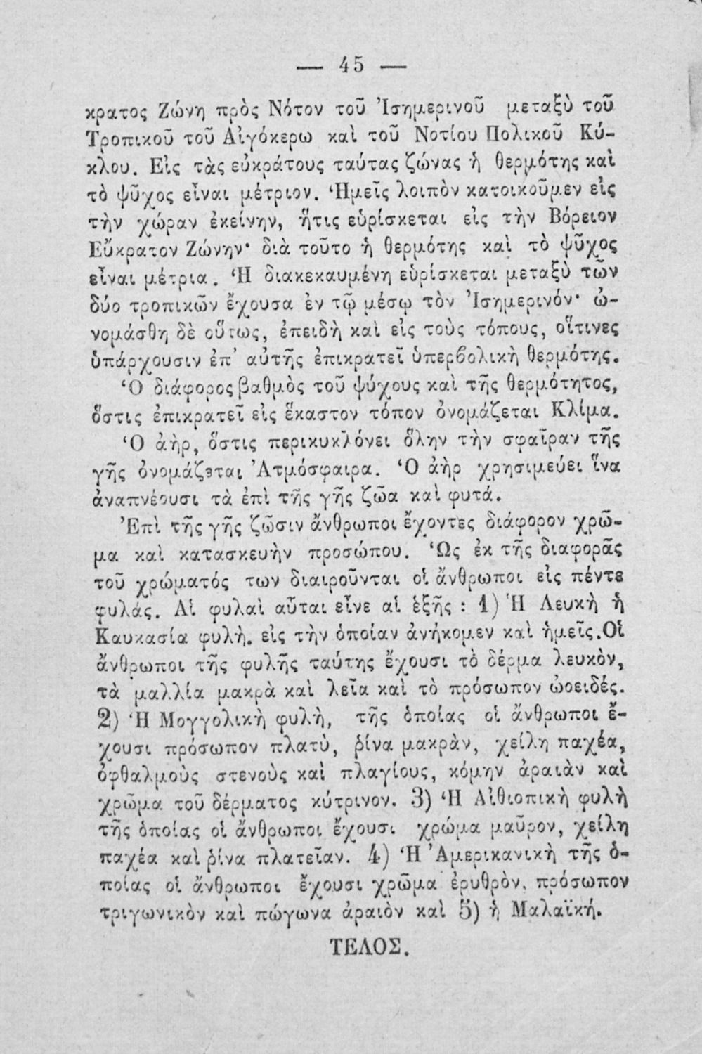 Σχολικό εγχειρίδιο Γεωγραφίας για τα Δημοτικά και τα Παρθεναγωγεία που περιέχει αναλυτική περιγραφή των συνοικιών της Κωνσταντινούπολης και τη γεωμορφολογία της Θράκης.