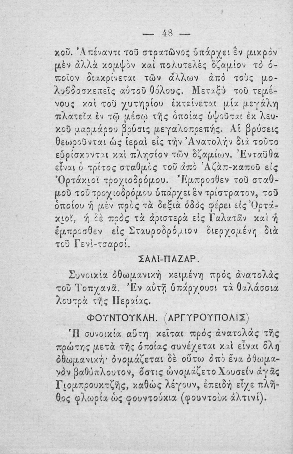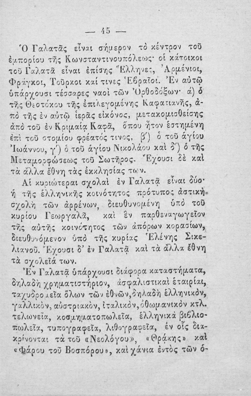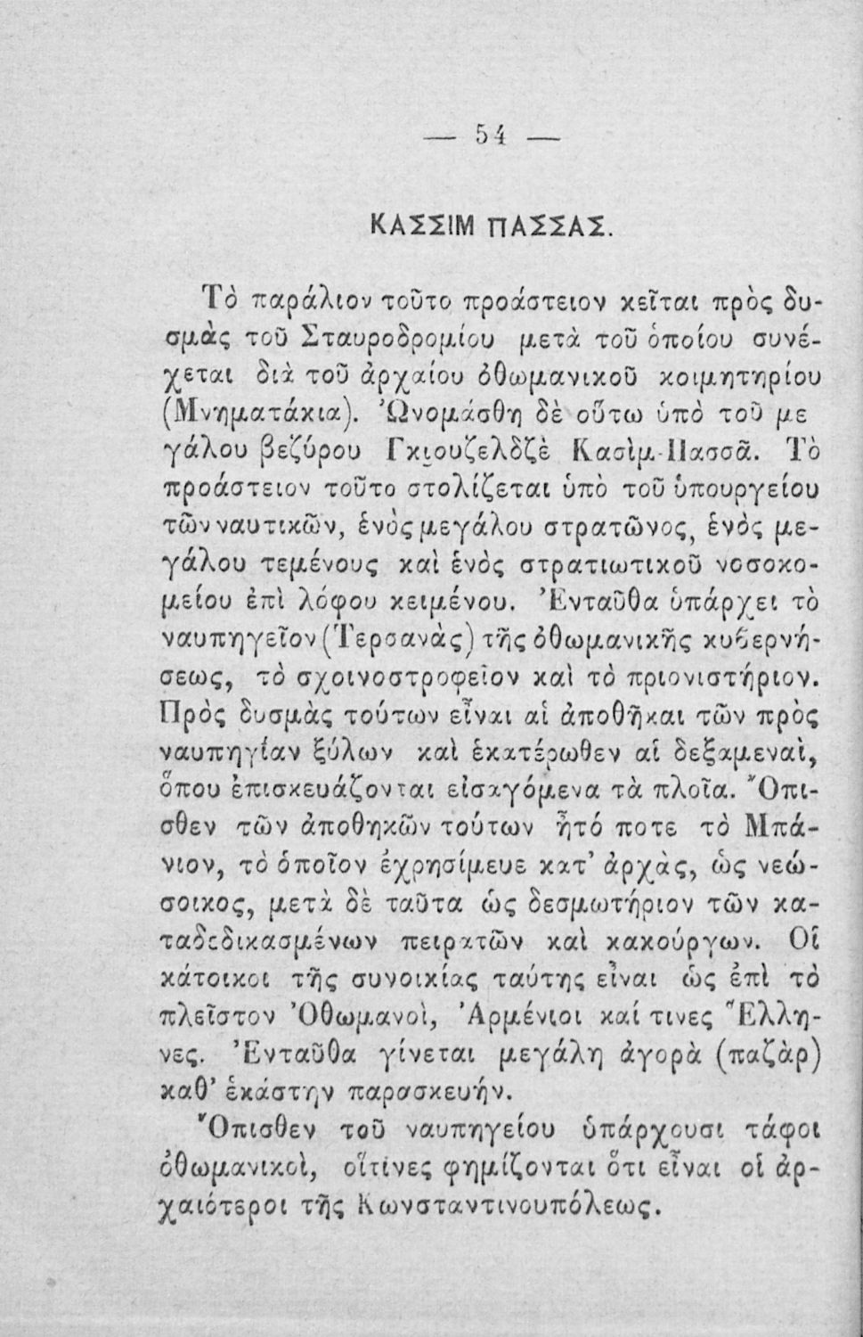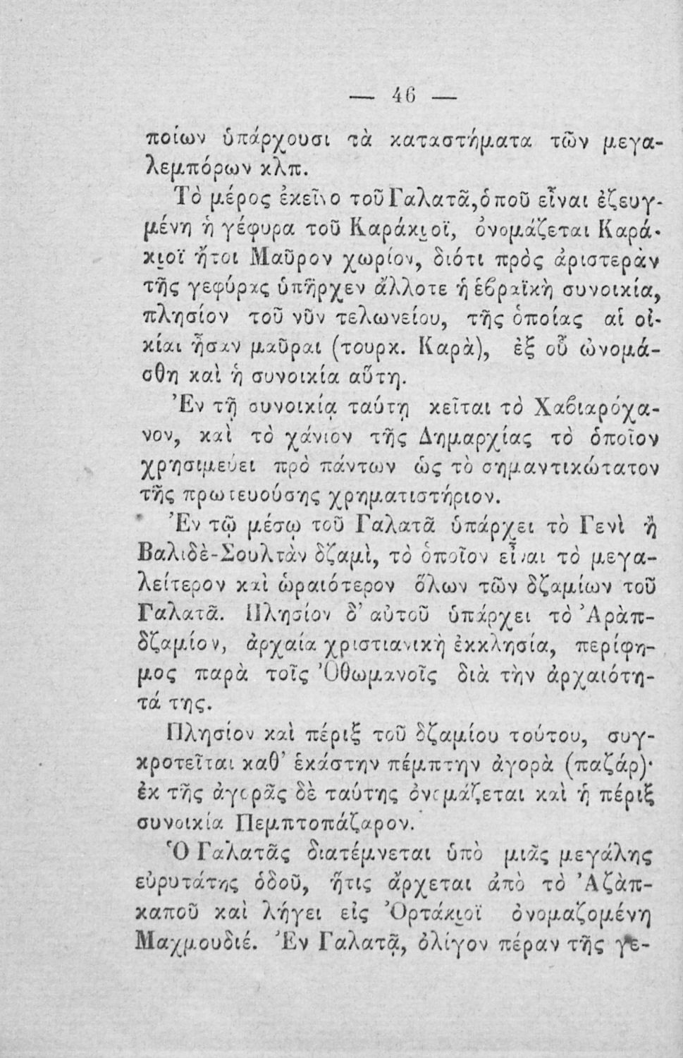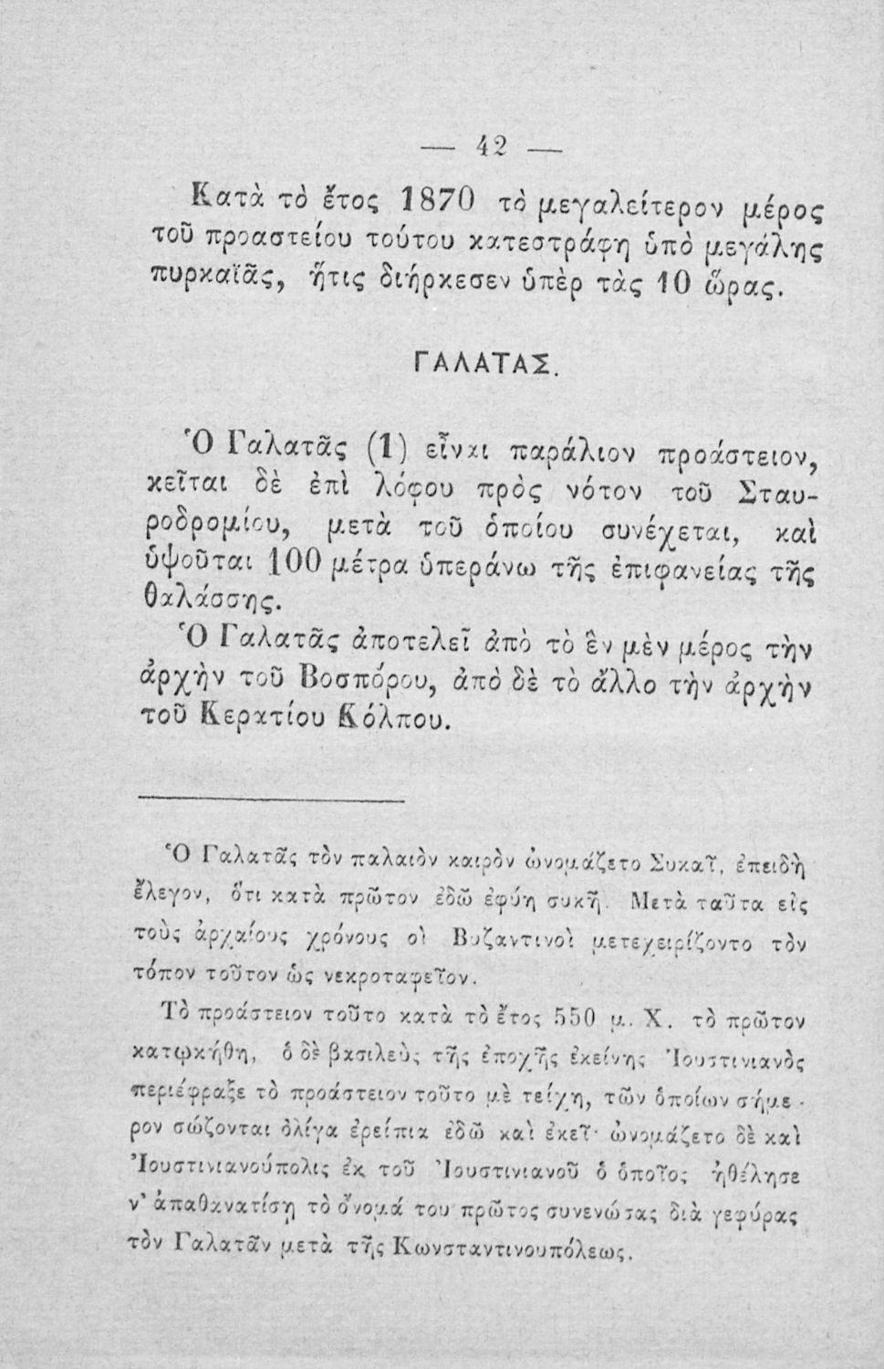 Σχολικό εγχειρίδιο Γεωγραφίας για τους μαθητές των Αστικών σχολείων της Κωνσταντινούπολης που εξετάζει το ιστορικό και γεωμορφολογικό προφίλ της Κωνσταντινούπολης. Περιέχει και στοιχεία οικονομικής γεωγραφίας.