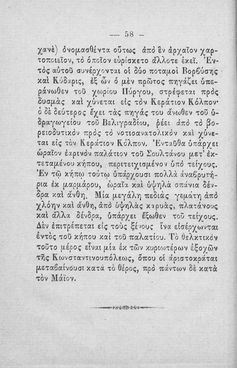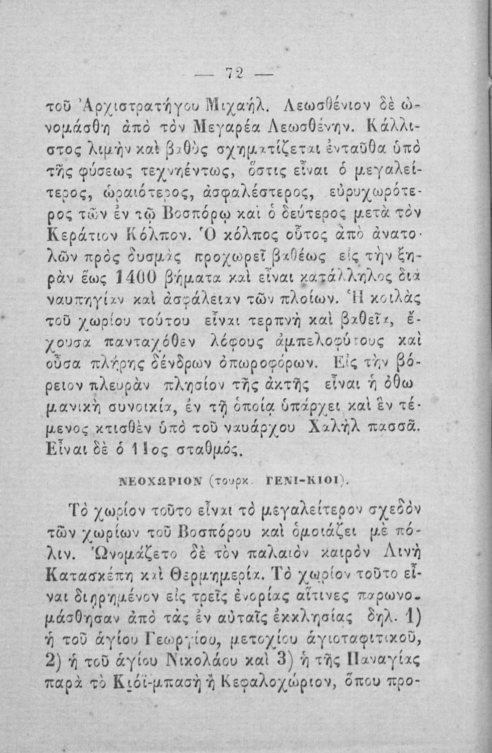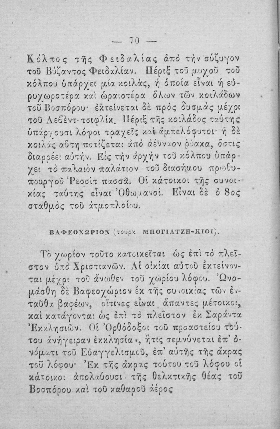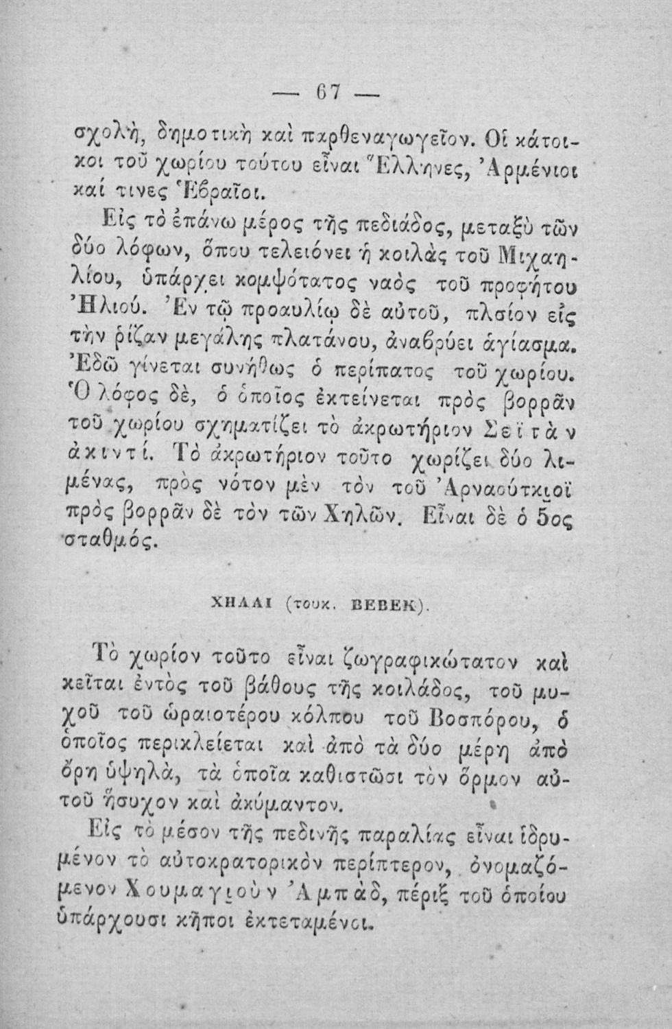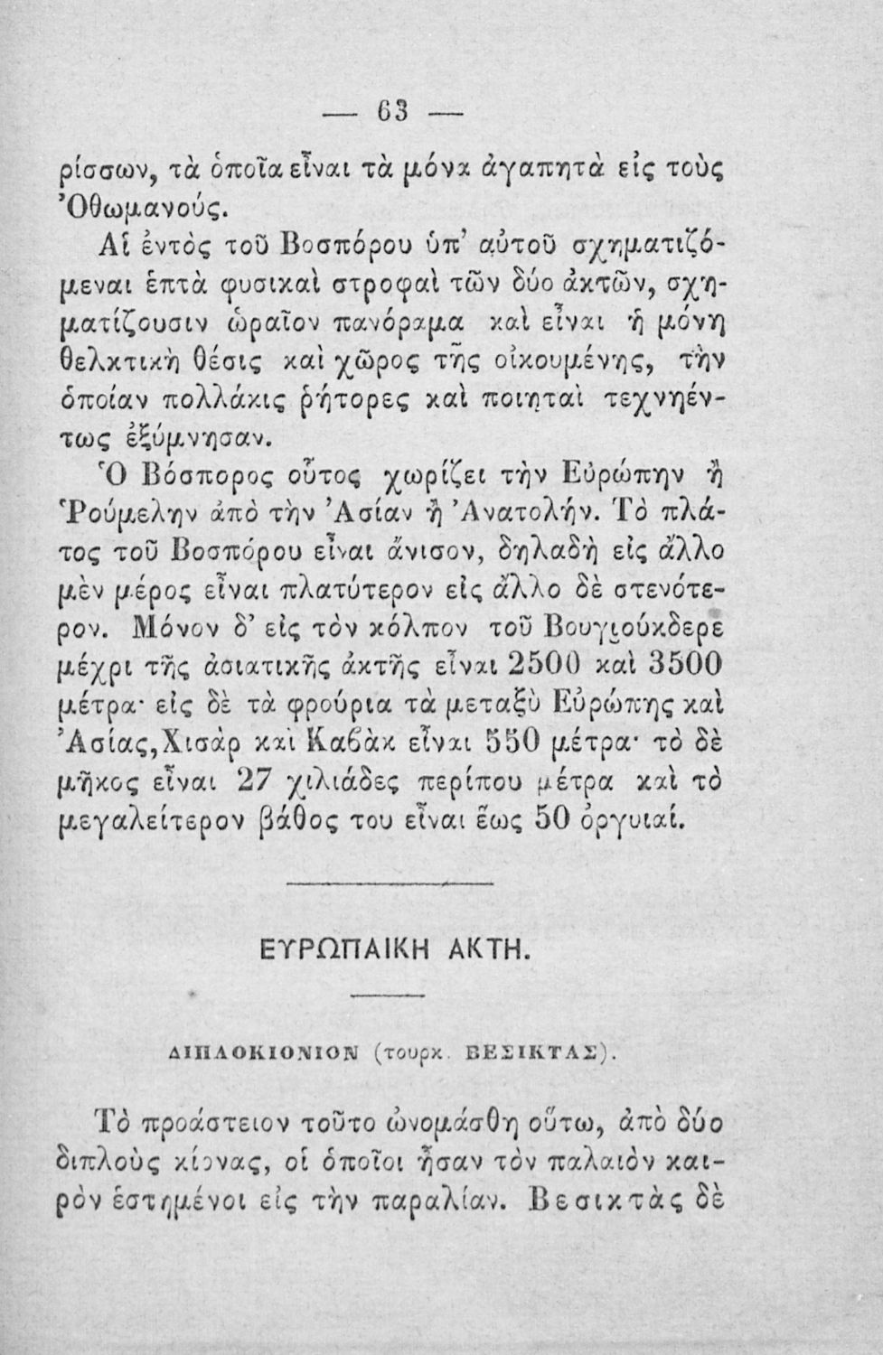 Σχολικό εγχειρίδιο Γεωγραφίας για τους μαθητές των Αστικών σχολείων της Κωνσταντινούπολης που εξετάζει το ιστορικό και γεωμορφολογικό προφίλ της Κωνσταντινούπολης. Περιέχει και στοιχεία οικονομικής γεωγραφίας.