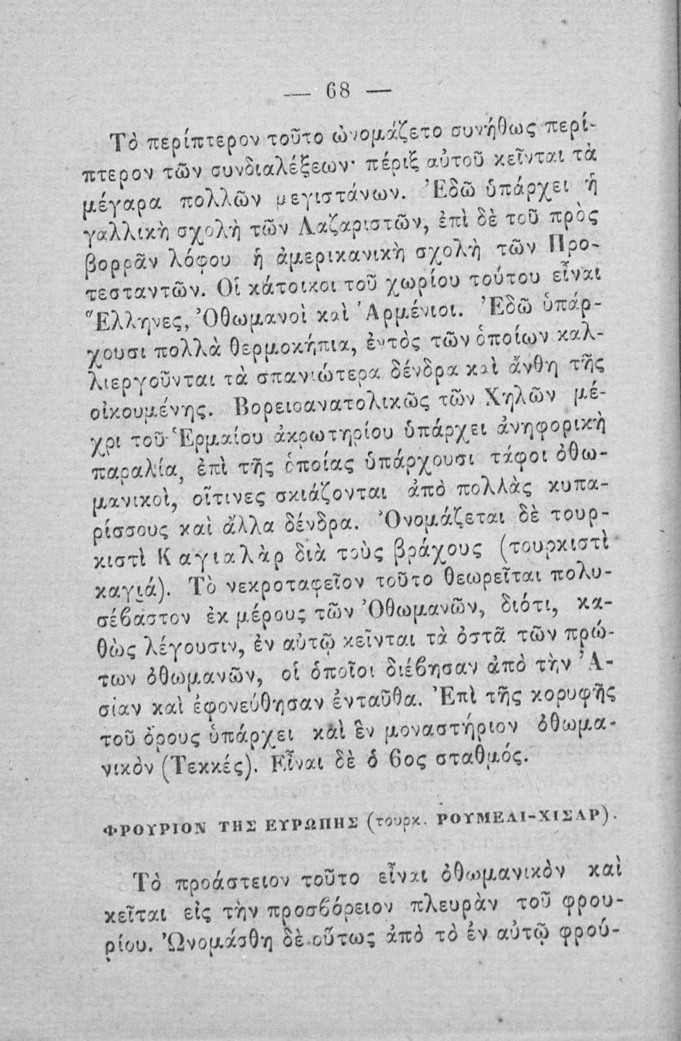 Σχολικό εγχειρίδιο Γεωγραφίας για τα Ελληνικά Σχολεία και Παρθεναγωγεία που περιλαμβάνει εισαγωγή στη φυσική, πολιτική και οικονομική γεωγραφία και μια γενική επισκόπηση της Ελλάδας και της Ευρωπαϊκής Τουρκίας