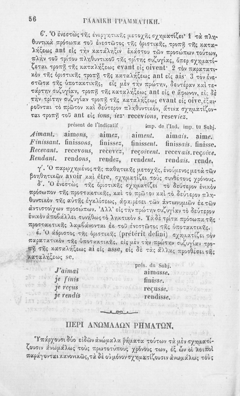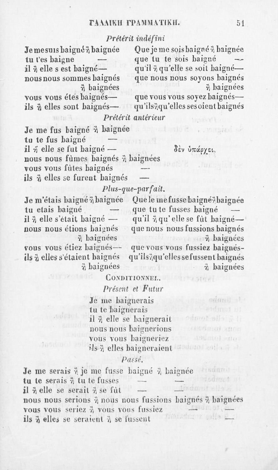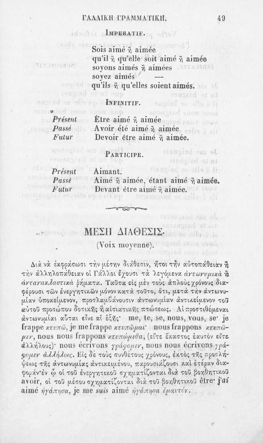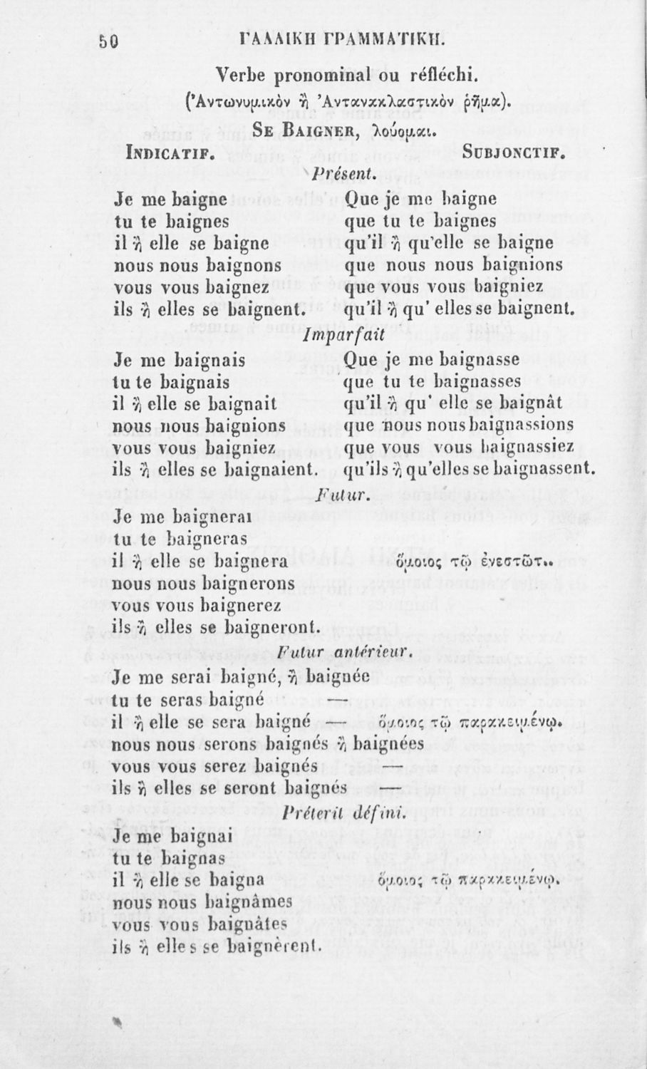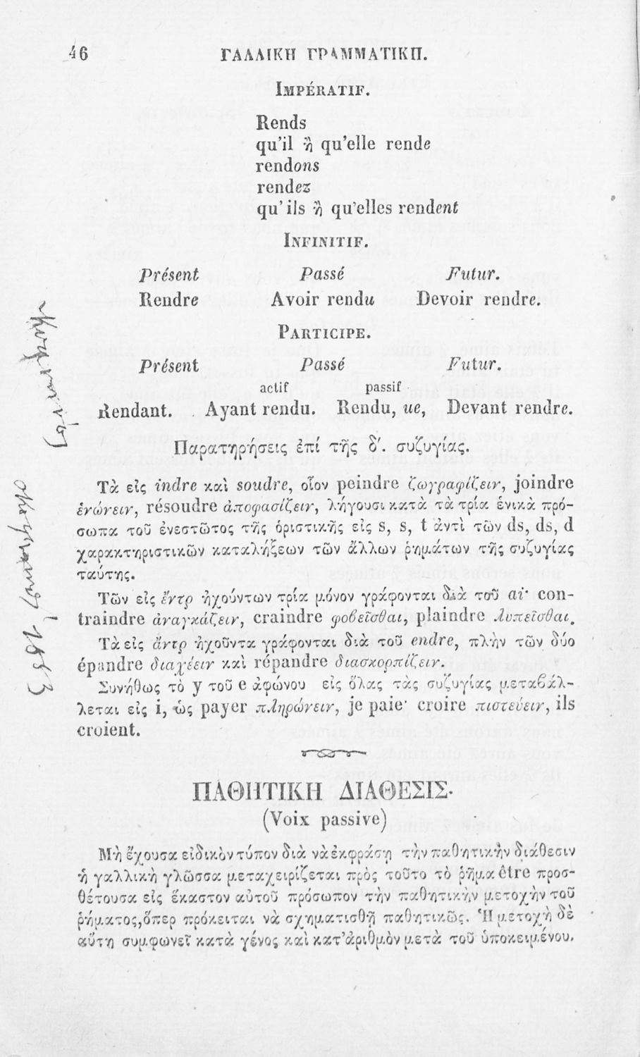 Σχολικό εγχειρίδιο για τα Ελληνικά Σχολεία και Παρθεναγωγεία περιλαμβάνει τους βασικούς κανόνες γραμματικής της γαλλικής γλώσσας.