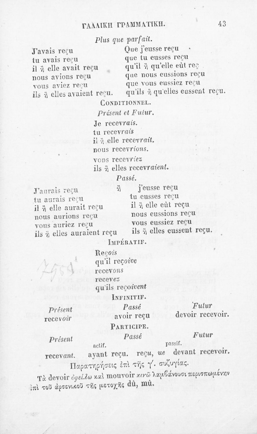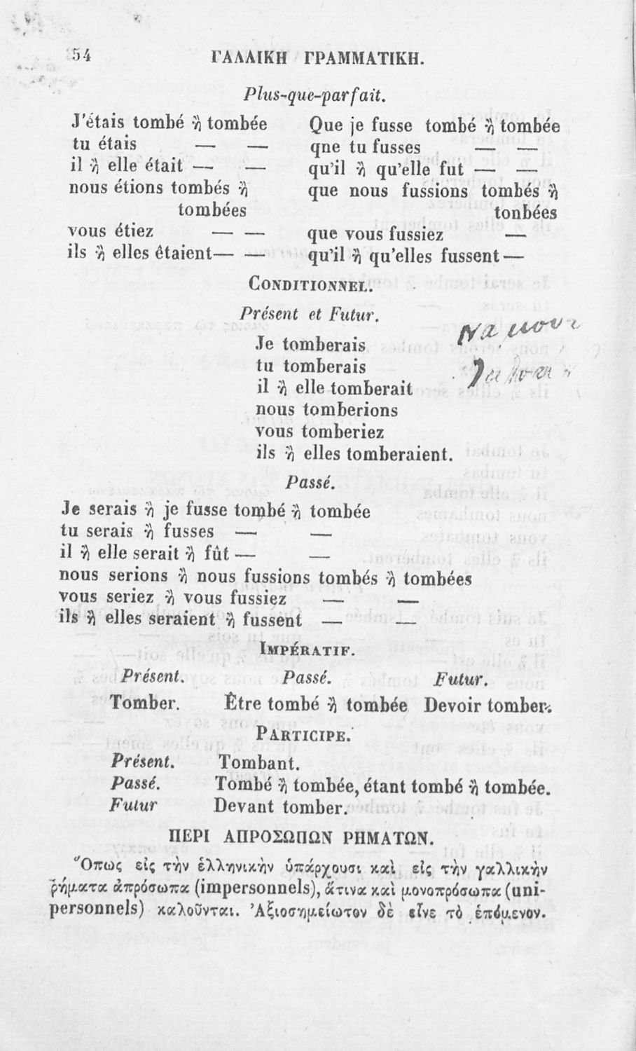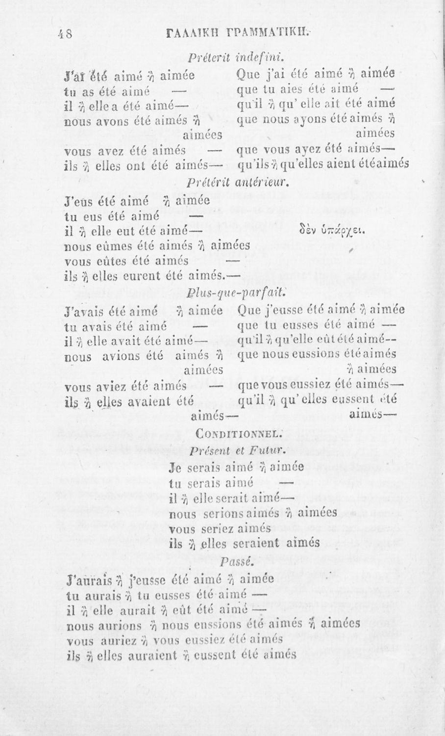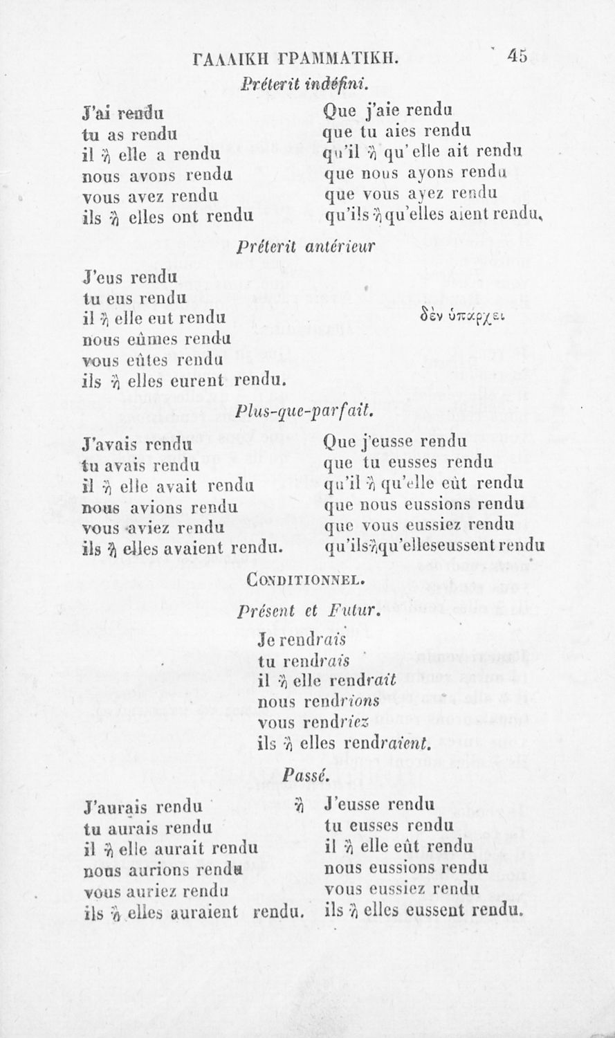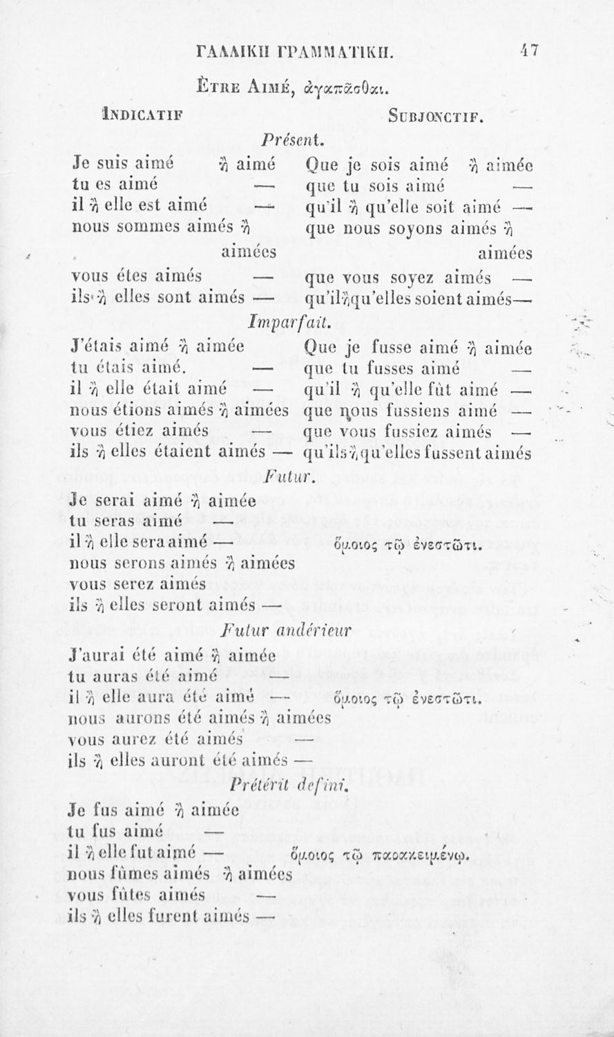 Σχολικό εγχειρίδιο για τα Ελληνικά Σχολεία και Παρθεναγωγεία περιλαμβάνει τους βασικούς κανόνες γραμματικής της γαλλικής γλώσσας.