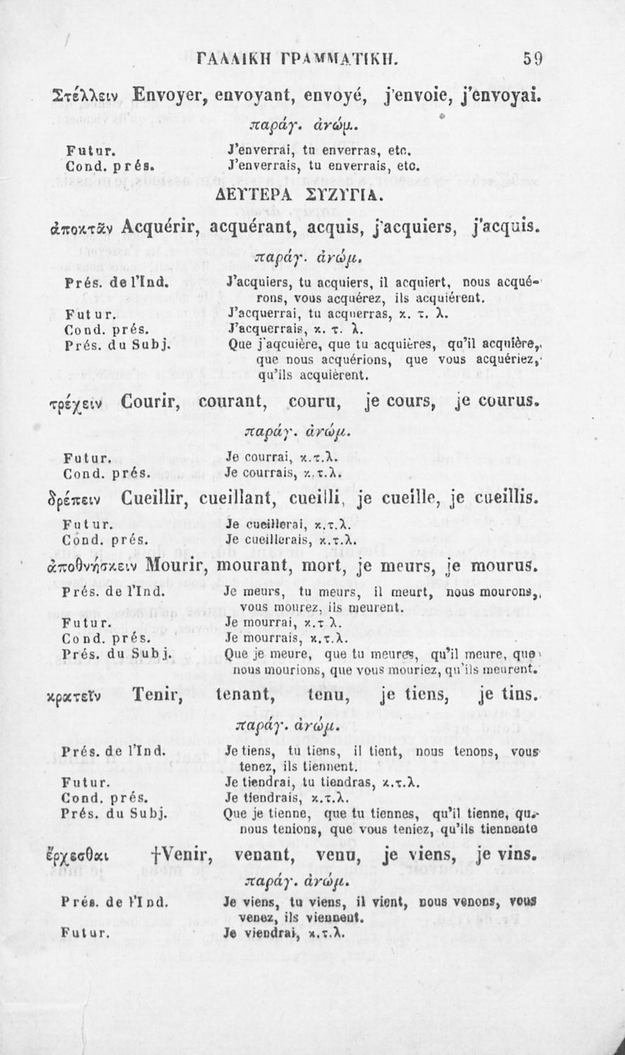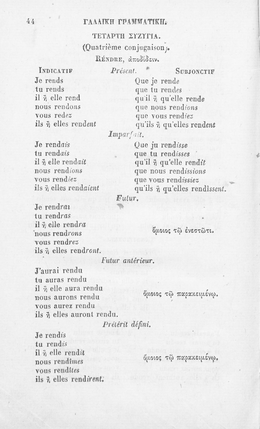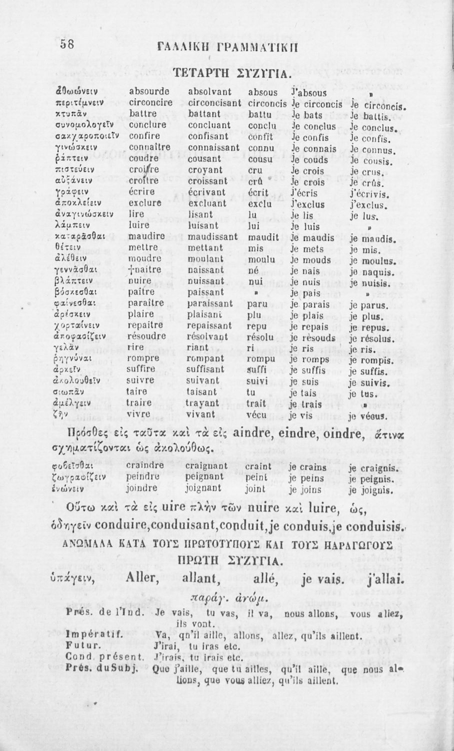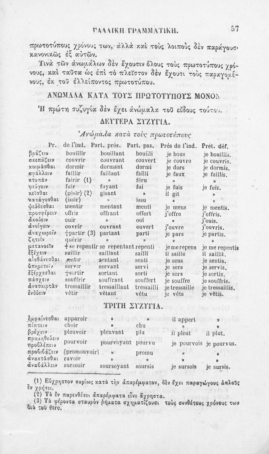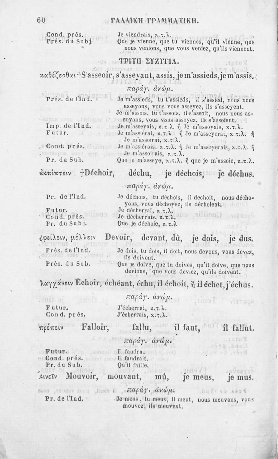 Σχολικό εγχειρίδιο για τα Ελληνικά Σχολεία και Παρθεναγωγεία περιλαμβάνει τους βασικούς κανόνες γραμματικής της γαλλικής γλώσσας.