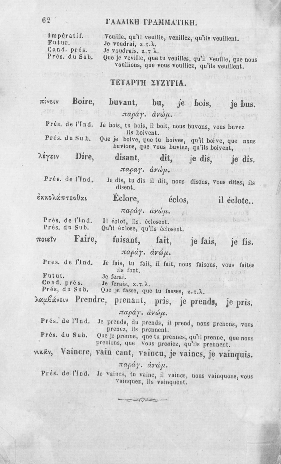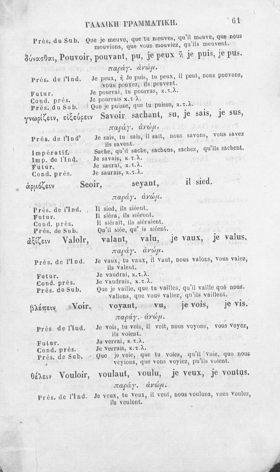 Σχολικό εγχειρίδιο για τα Ελληνικά Σχολεία και Παρθεναγωγεία περιλαμβάνει τους βασικούς κανόνες γραμματικής της γαλλικής γλώσσας.