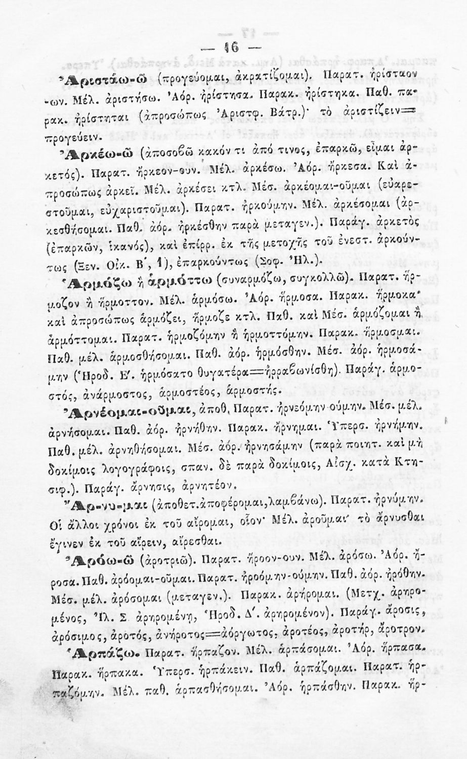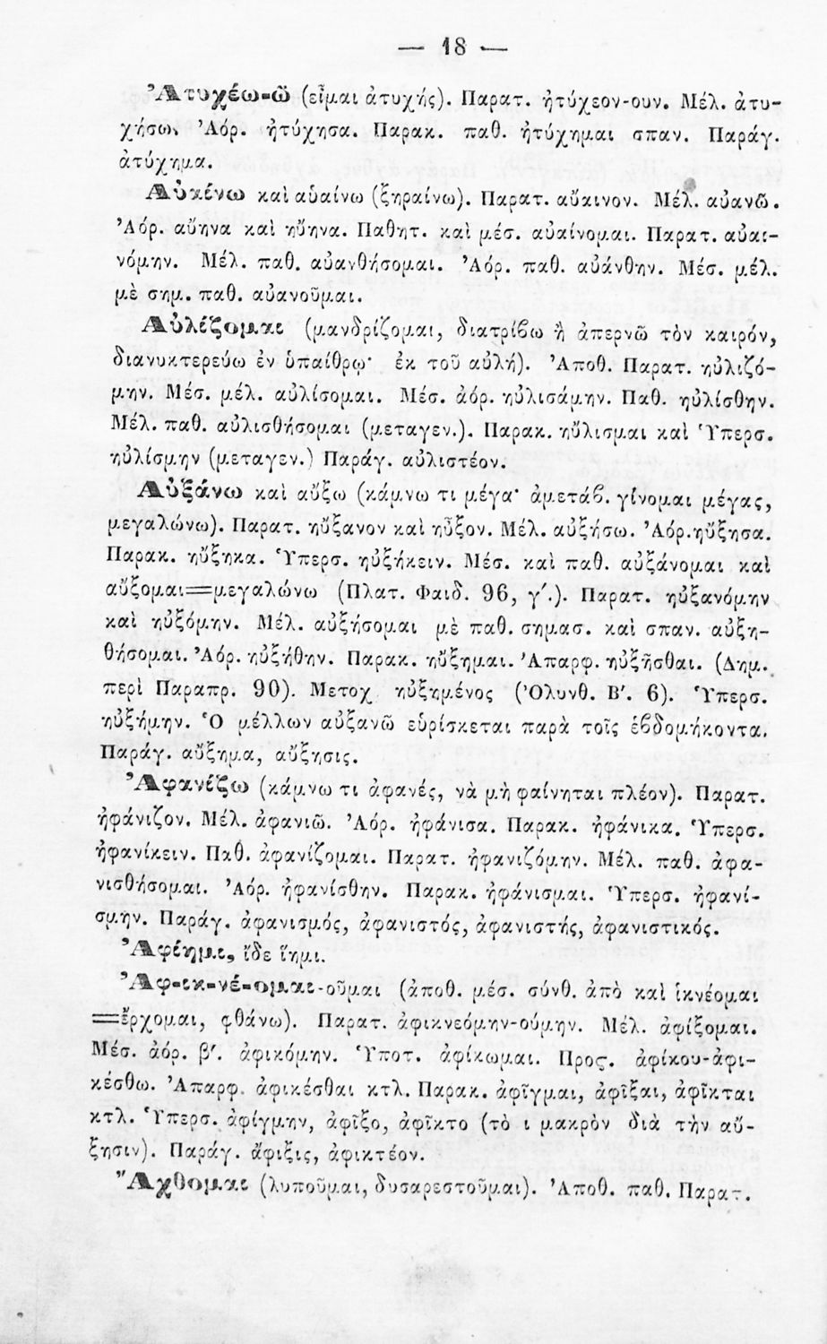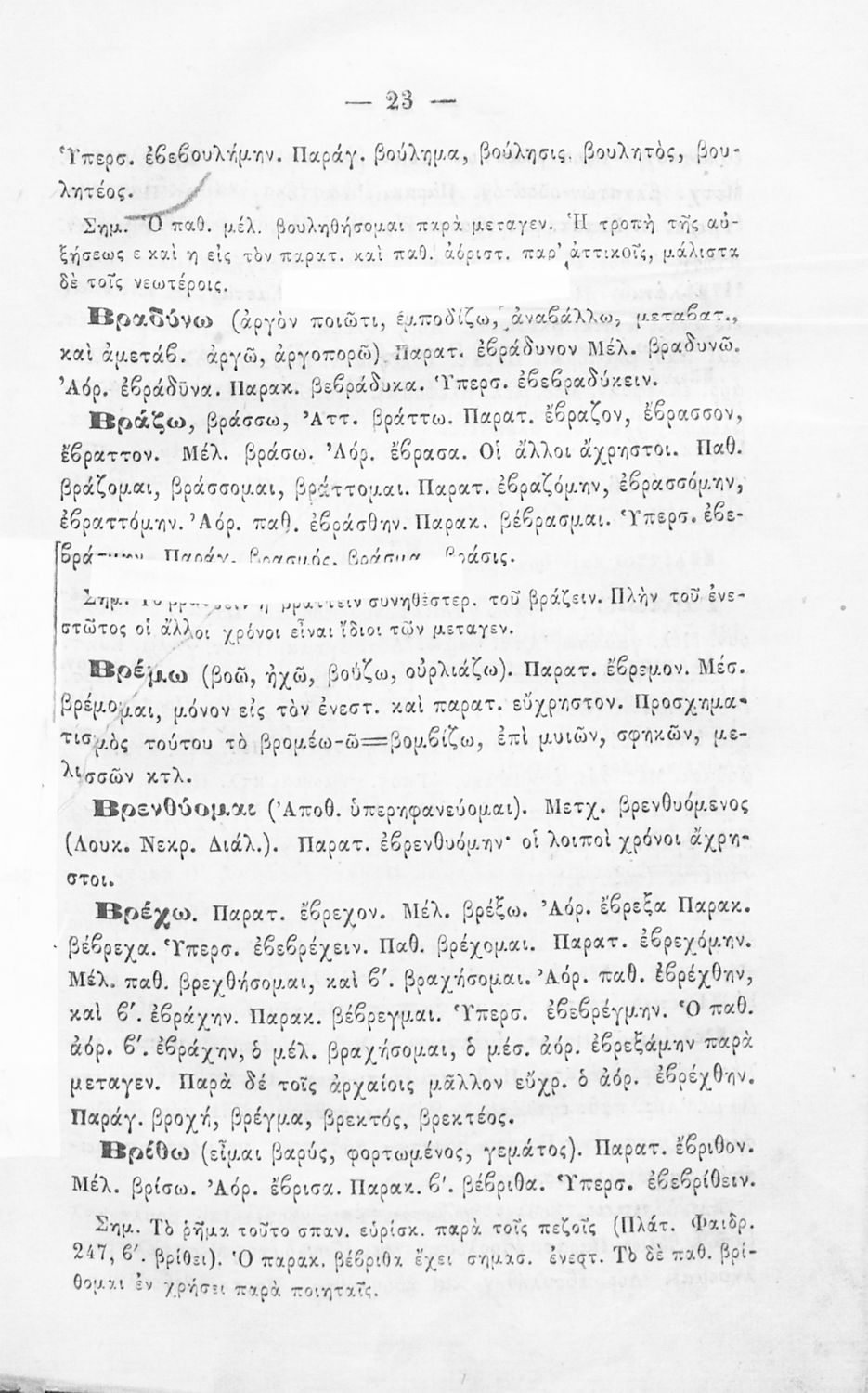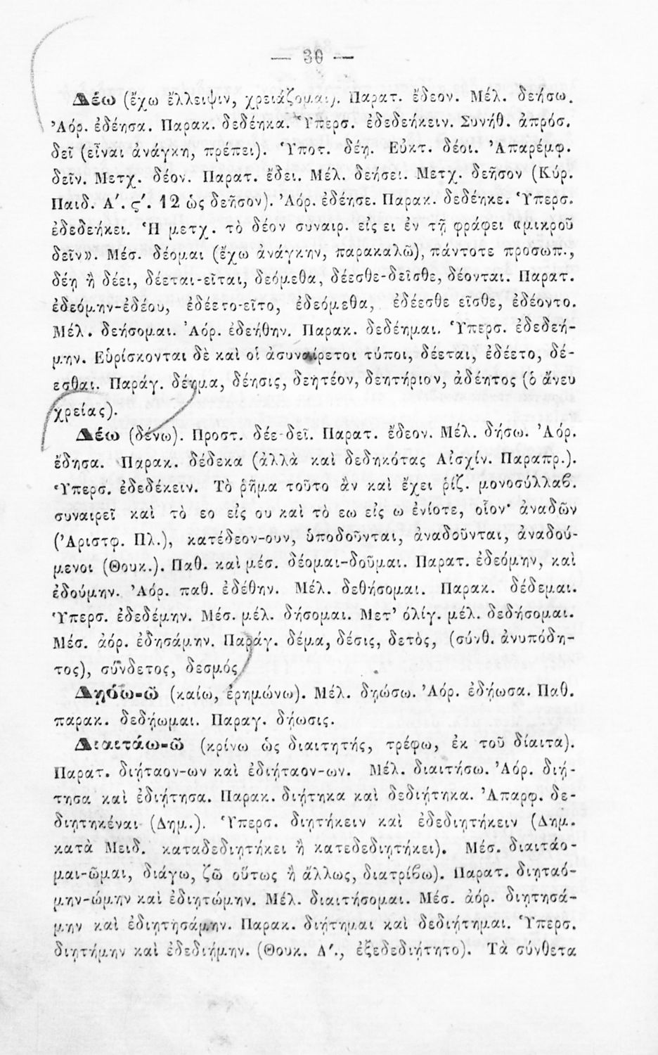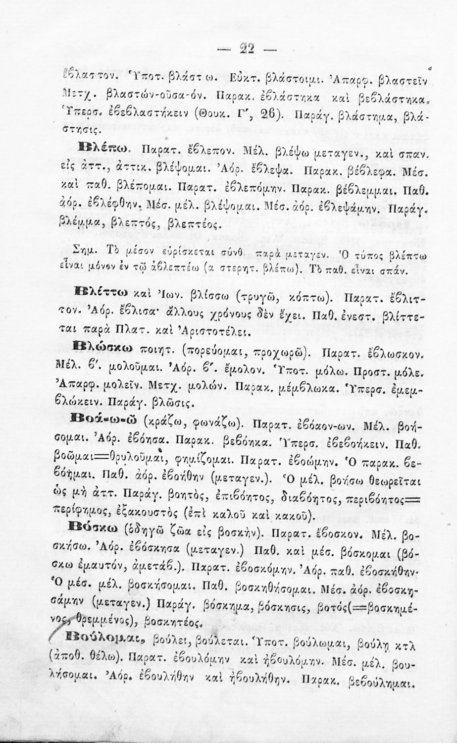 Μαθητικό βοήθημα Αρχαίων Ελληνικών για τα Ελληνικά Σχολεία, Παρθεναγωγεία και Γυμνάσια που περιλαμβάνει γραμματική της αρχαίας ελληνικής και κατάλογο ανωμάλων ρημάτων.
