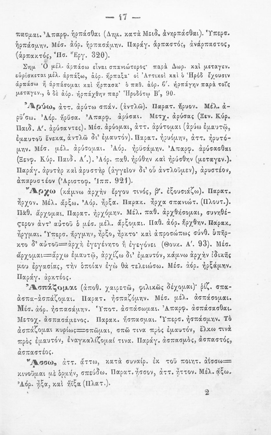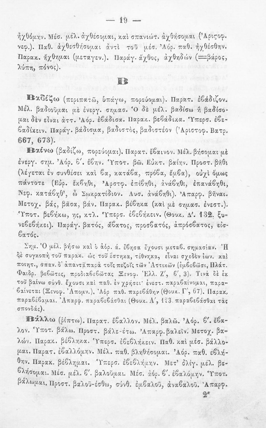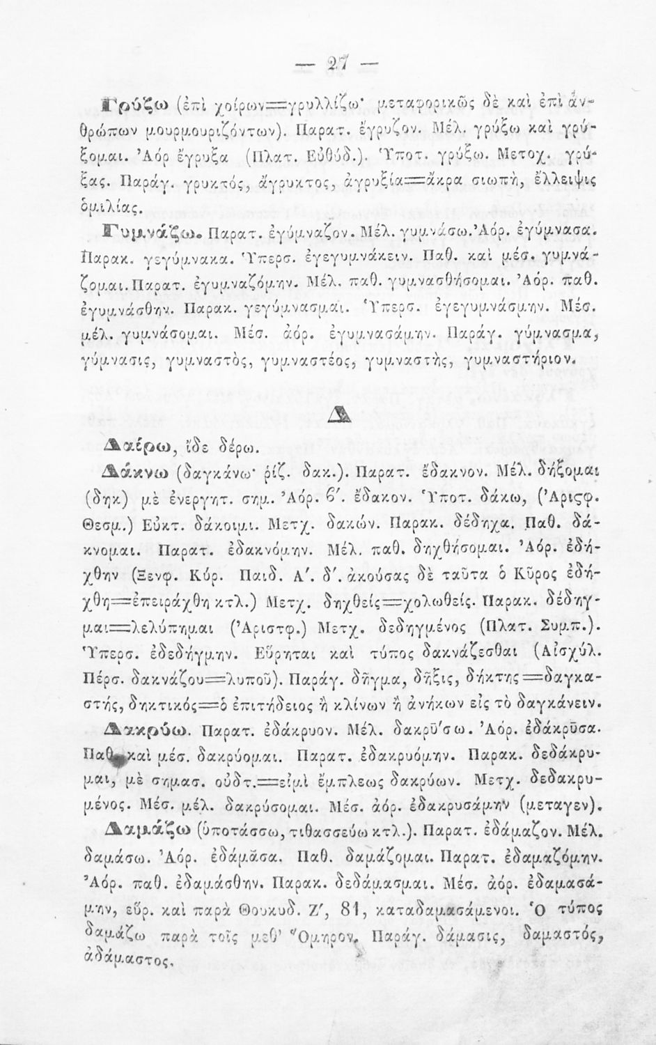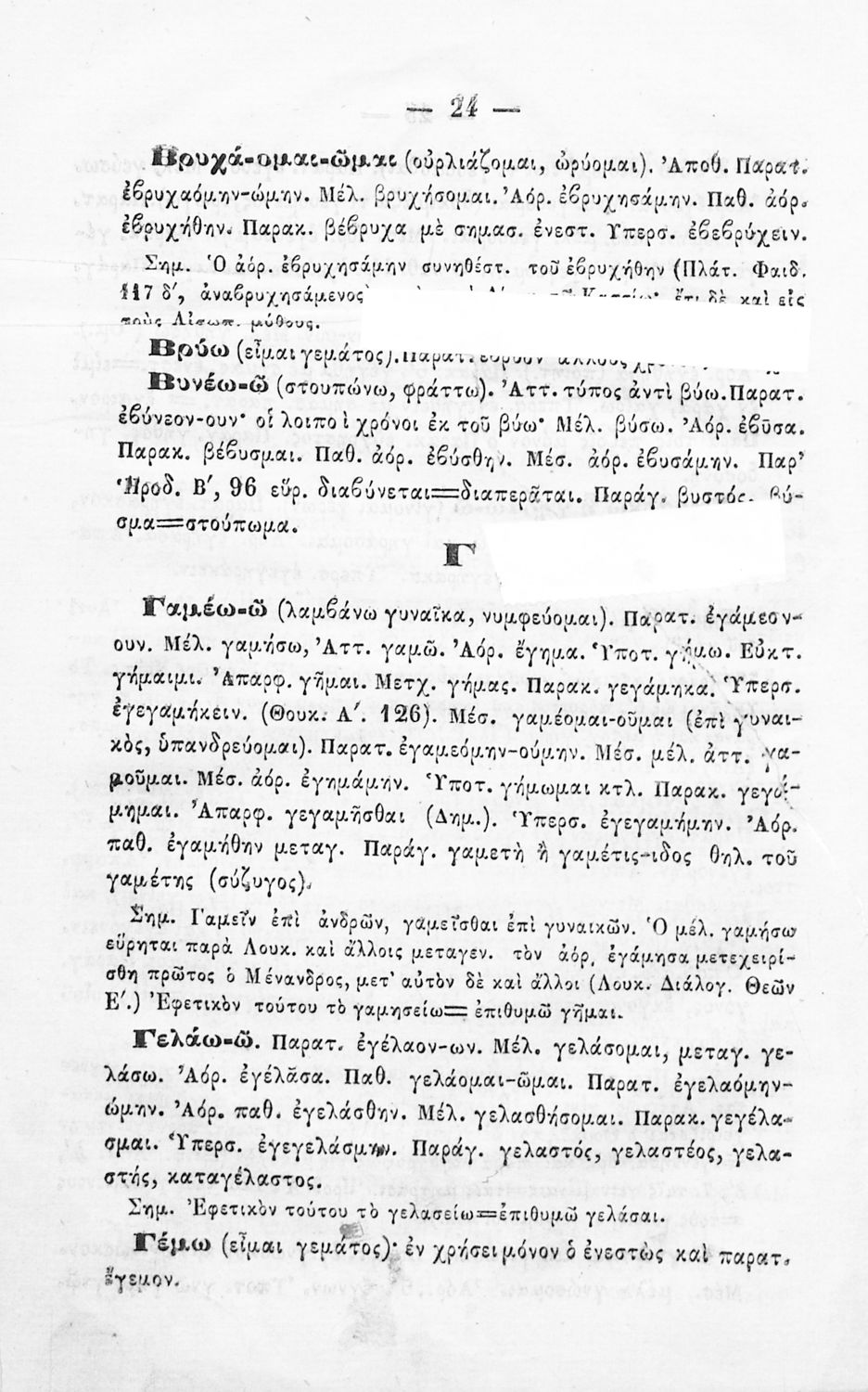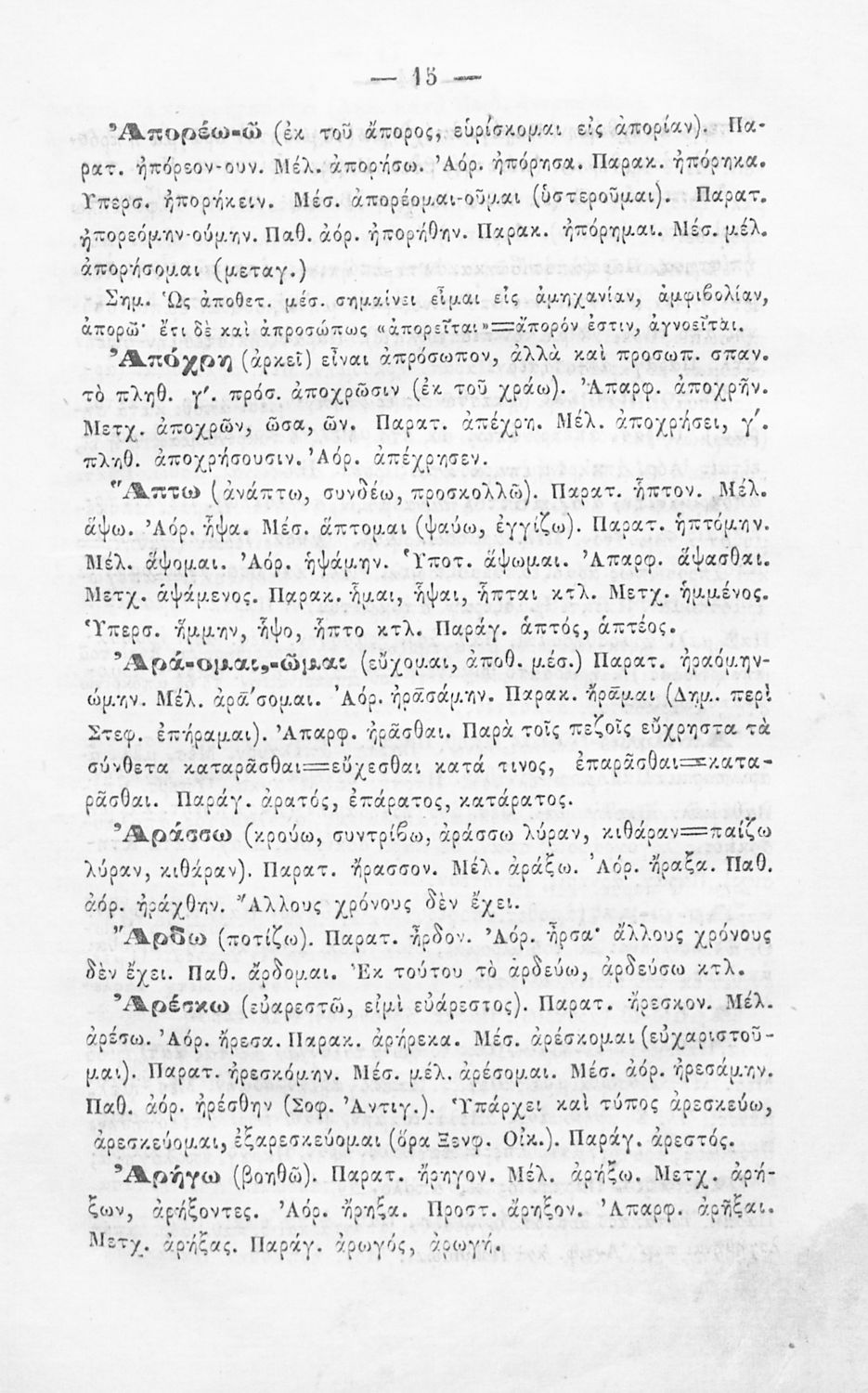 Μαθητικό βοήθημα Αρχαίων Ελληνικών για τα Ελληνικά Σχολεία, Παρθεναγωγεία και Γυμνάσια που περιλαμβάνει γραμματική της αρχαίας ελληνικής και κατάλογο ανωμάλων ρημάτων.