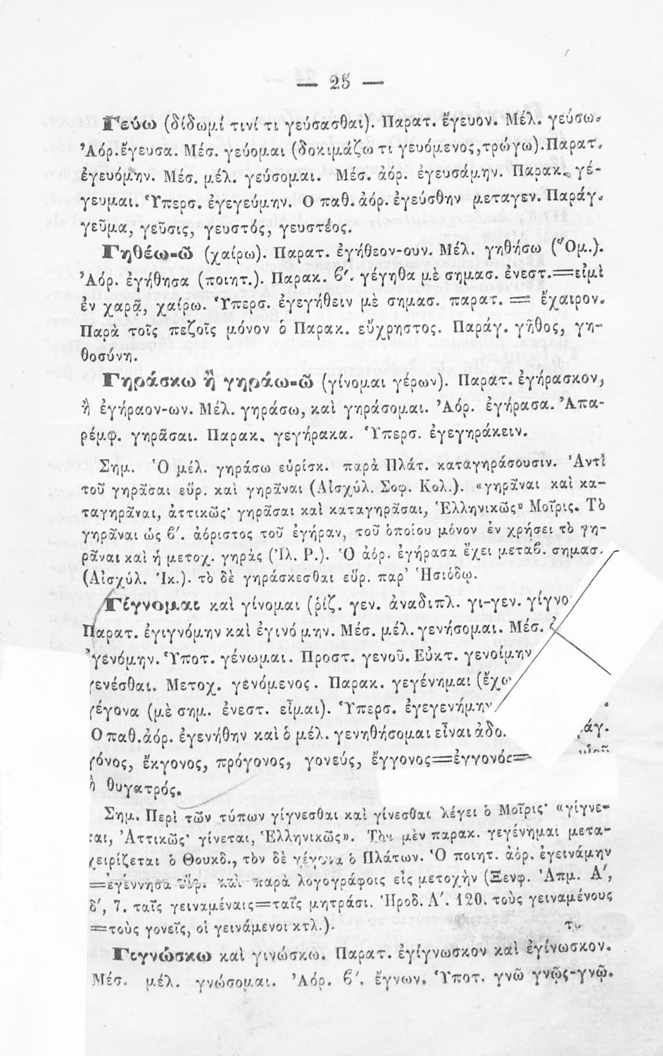 Μαθητικό βοήθημα Αρχαίων Ελληνικών για τα Γυμνάσια, Παρθεναγωγεία και Ελληνικά σχολεία το οποίο περιέχει κατάλογο ανωμάλων ρημάτων της Αττικής διαλέκτου.