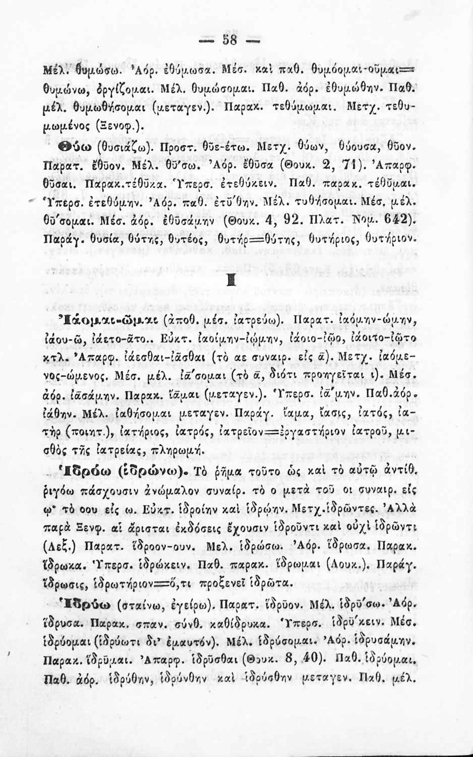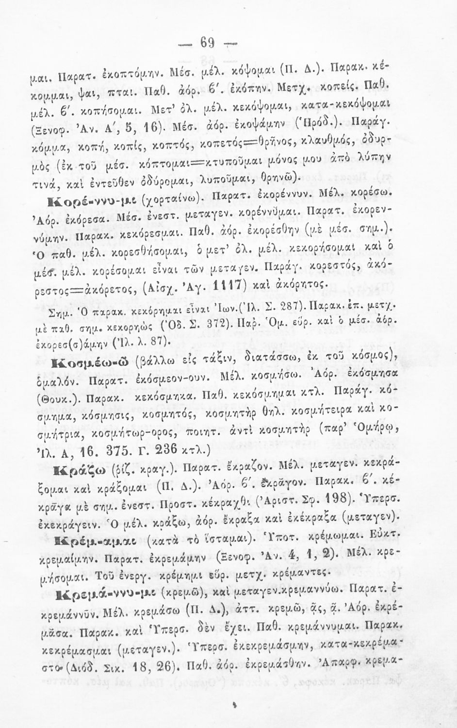 Μαθητικό βοήθημα Αρχαίων Ελληνικών για τα Ελληνικά Σχολεία, Παρθεναγωγεία και Γυμνάσια που περιλαμβάνει γραμματική της αρχαίας ελληνικής και κατάλογο ανωμάλων ρημάτων.