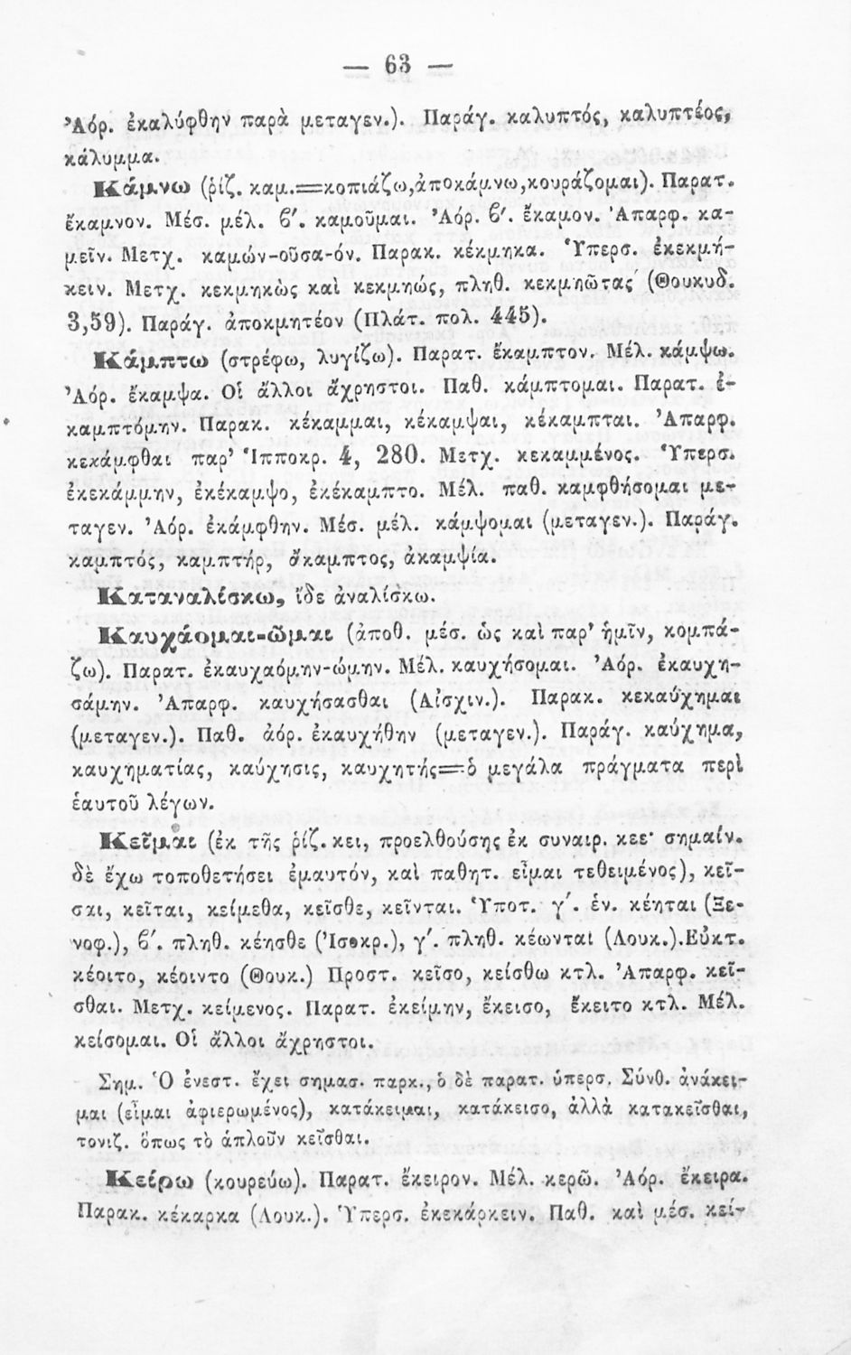 Μαθητικό βοήθημα Αρχαίων Ελληνικών για τους μαθητές των Ελληνικών Σχολείων και των Γυμνασίων που περιέχει κατάλογο ανωμάλων κι ελλιπών ρημάτων.