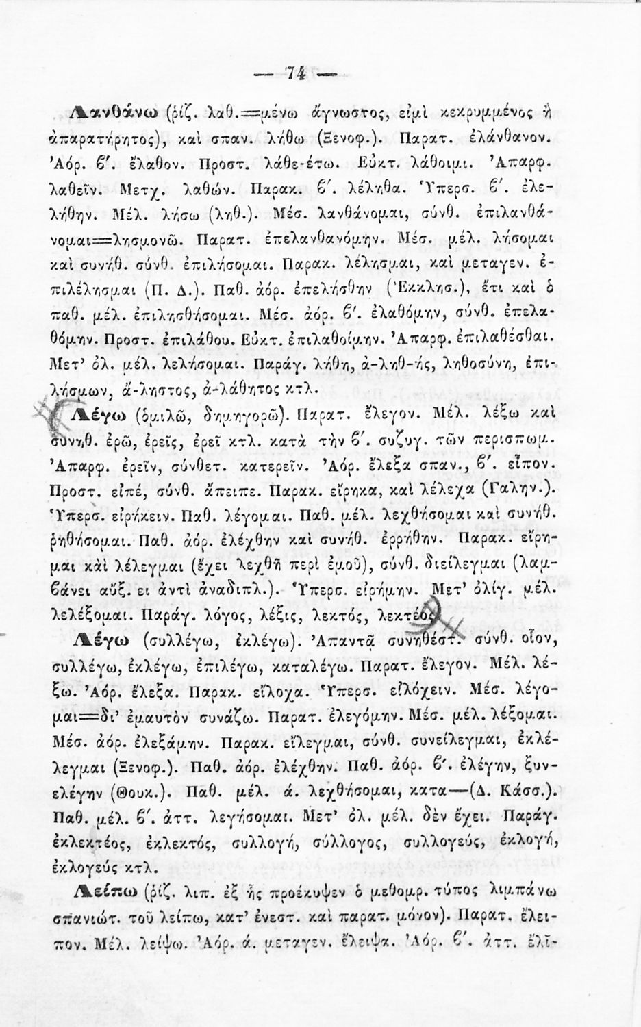 Μαθητικό βοήθημα Αρχαίων Ελληνικών για τους μαθητές των Ελληνικών Σχολείων και των Γυμνασίων που περιέχει κατάλογο ανωμάλων κι ελλιπών ρημάτων.