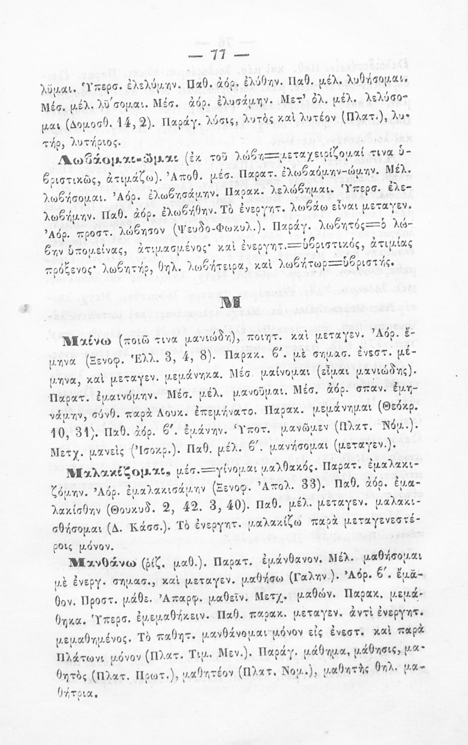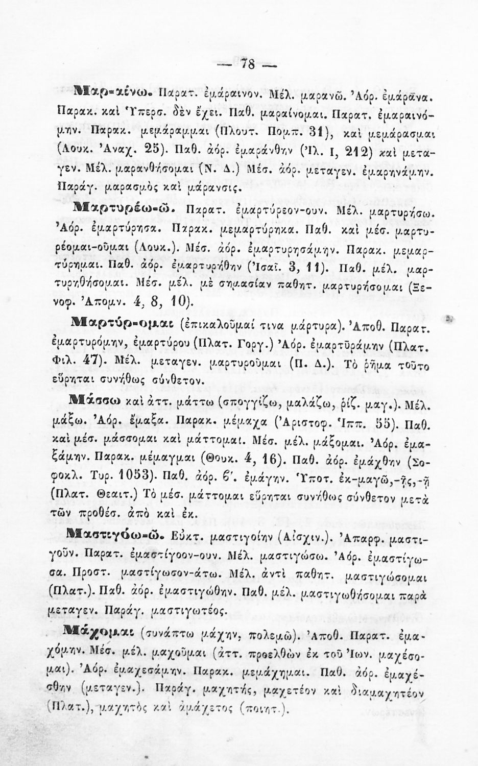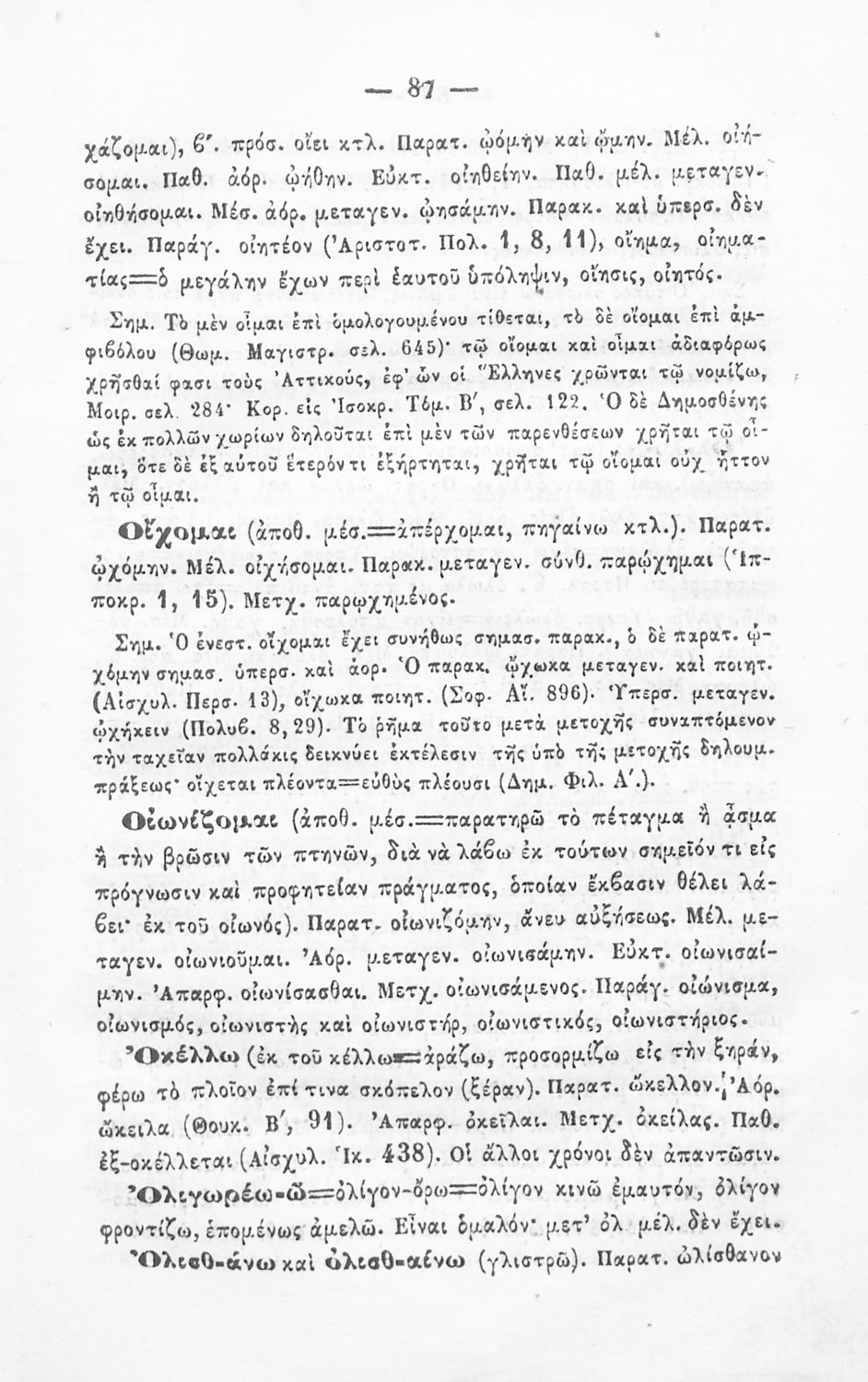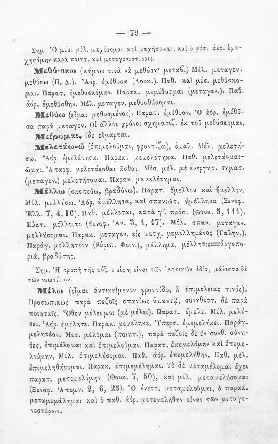 Μαθητικό βοήθημα Αρχαίων Ελληνικών για τα Ελληνικά Σχολεία, Παρθεναγωγεία και Γυμνάσια που περιλαμβάνει γραμματική της αρχαίας ελληνικής και κατάλογο ανωμάλων ρημάτων.