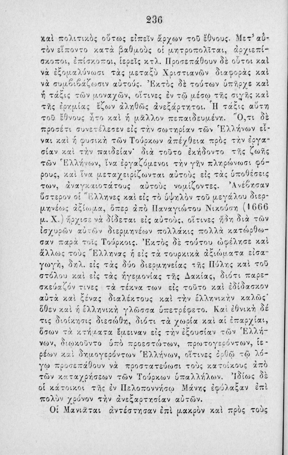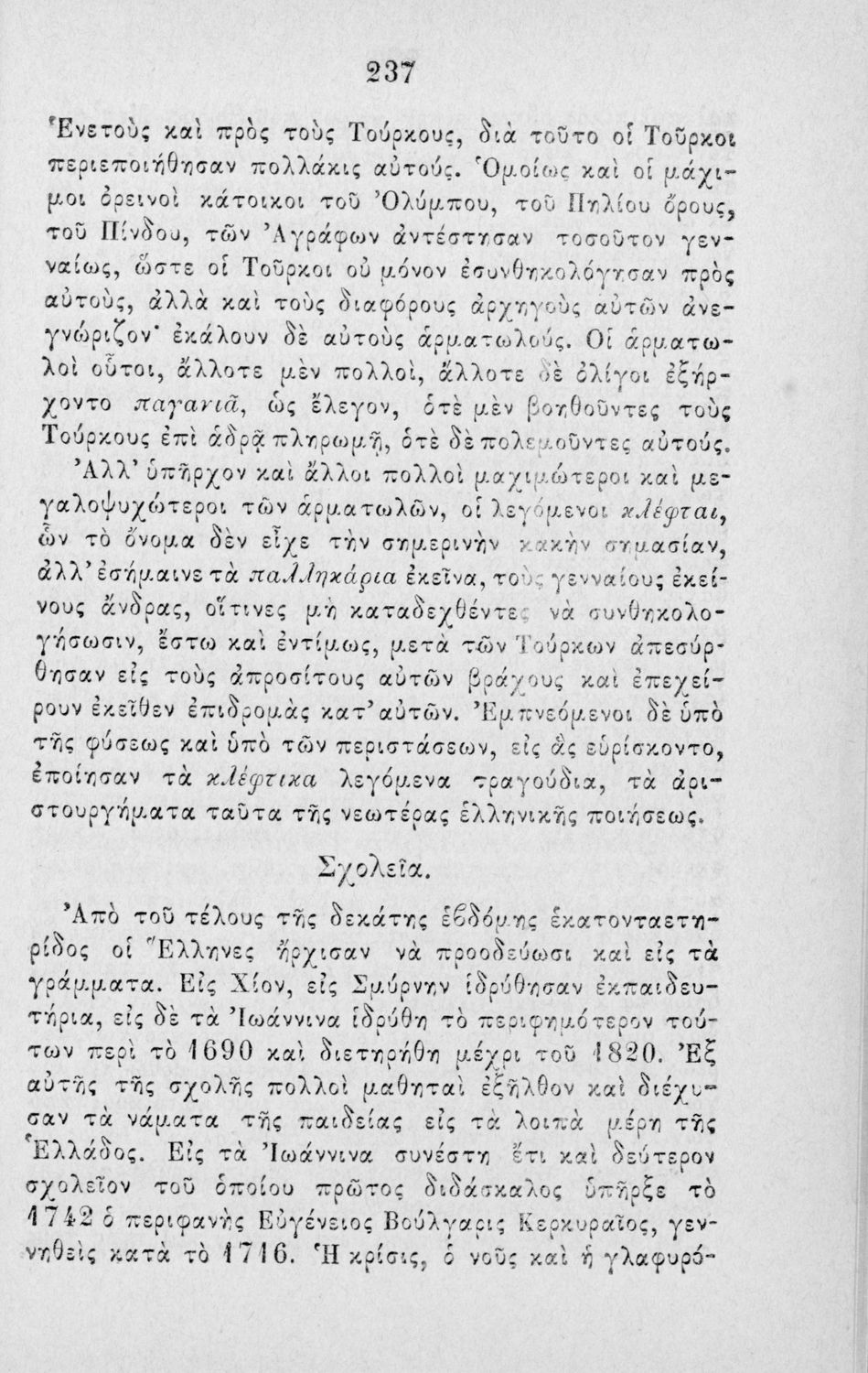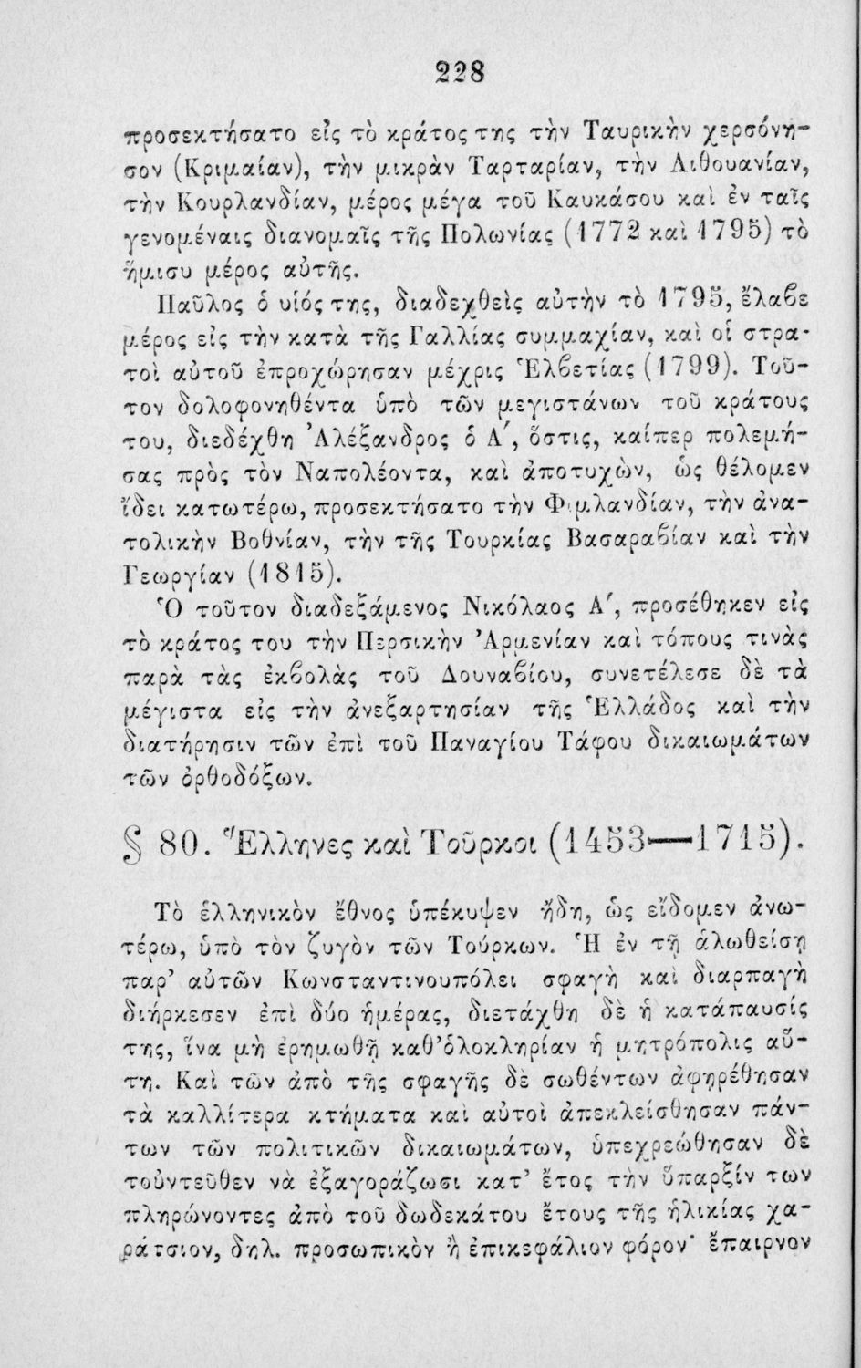 LDR 02303 2200217 4500 035 ## _a02-02721 040 ## _aΕλληνικό Λογοτεχνικό και Ιστορικό Αρχείο 041 ## _ael 100 ## _aΔ. Πανταζής 110 ## _a2721 245 0# _aΣύνοψις γενικής ιστορίας εκτενεστέραν την ελληνικήν περιέχουσα συναρμολογηθείσα προς χρήσιν των μαθητών των Ελληνικών Σχολείων 250 ## _a10η Έκδοση 260 ## _aΑθήνα _bΣ. Κ. Βλαστός _c1880 300 ## _a284 _bΣκίτσα (ασπρόμαυρα), Χάρτες (ασπρόμαυροι) 520 ## _aΣχολικό εγχειρίδιο για τις τάξεις του Ελληνικού για το μάθημα της Ιστορίας. Το εγχειρίδιο περιλαμβάνει εισαγωγικά τον ορισμό της γενικής ιστορίας και συνεχίζει την καταγραφή και παρουσίαση των γεγονότων με την ιστορία των αρχαίων ανατολικών λαών, την εμφάνιση των πρώτων Ελλήνων, την ιστορία των μυθικών χρόνων, τους Τρωικούς και Περσικούς πολέμους, την ακμή και αίγλη της Αθήνας του Περικλή, την ηγεμονία της Σπάρτης και της Θήβας, την Μακεδονική Ηγεμονία του Φιλίππου και την συνέχεια του Αλεξάνδρου και των διαδόχων, την υποταγή των Ελλήνων στους Ρωμαίους και συνεχίζει συνοπτικά με την ιστορία της Ευρώπης μέχρι και την Γαλλική και Ελληνική Επανάσταση. 521 ## _aΕλληνικό Σχολείο 522 ## _aΕλλάδα 546 ## _aΚαθαρεύουσα 563 ## _aΣκληρό Εξώφυλλο 583 ## _a2038/ 24-4-1862 _c1862 650 #4 _aΑρχαία ελληνική ιστορία _aΓαλλική και Ελληνική Επανάσταση _aΕυρωπαϊκή ιστορία _aΙστορία των ανατολικών εθνών