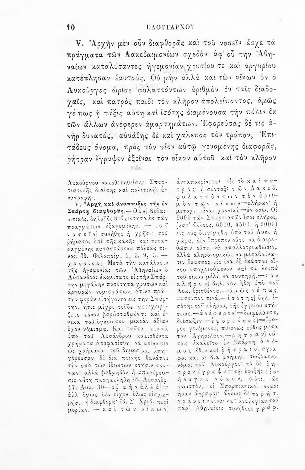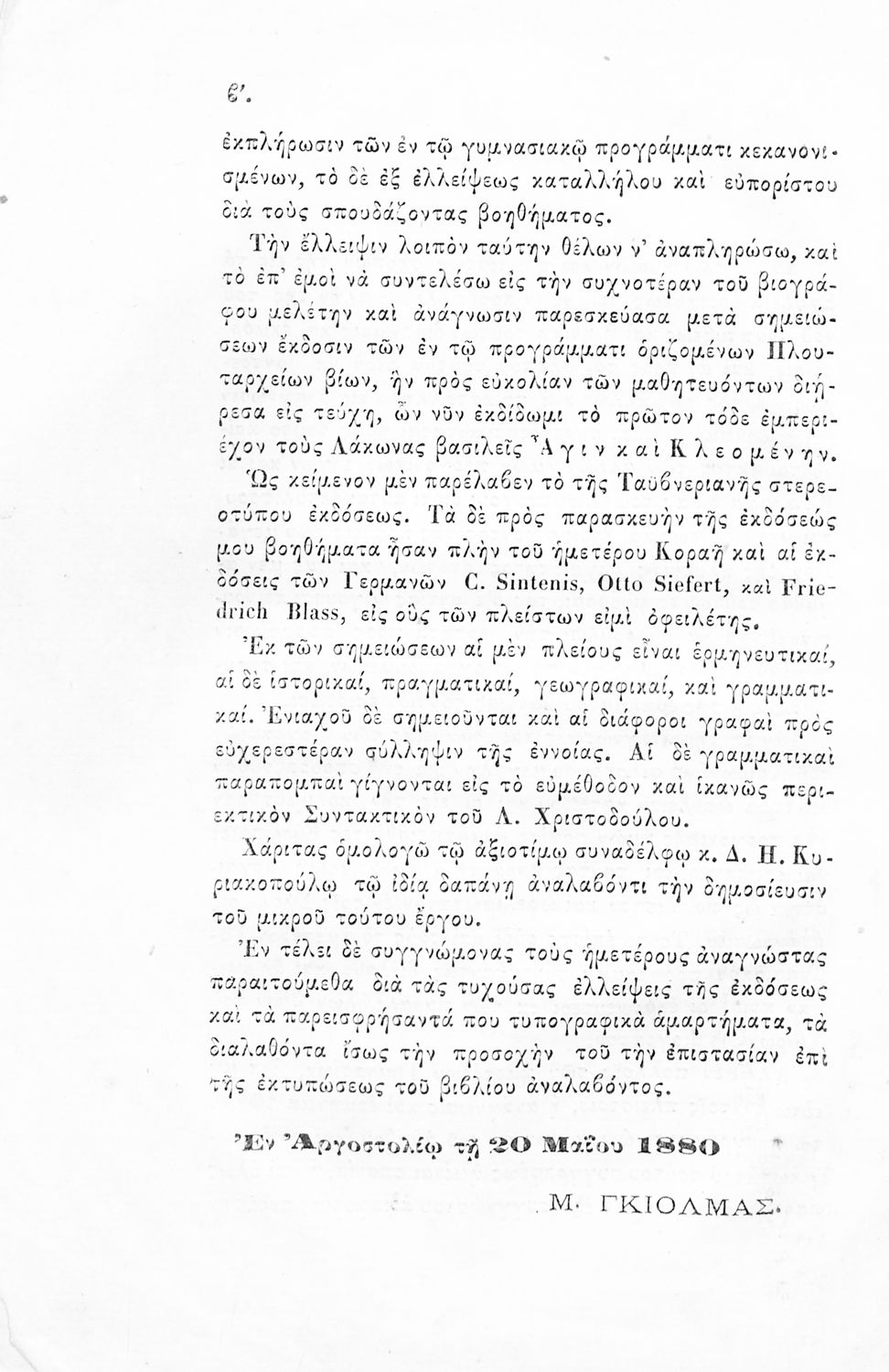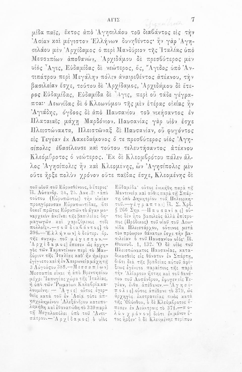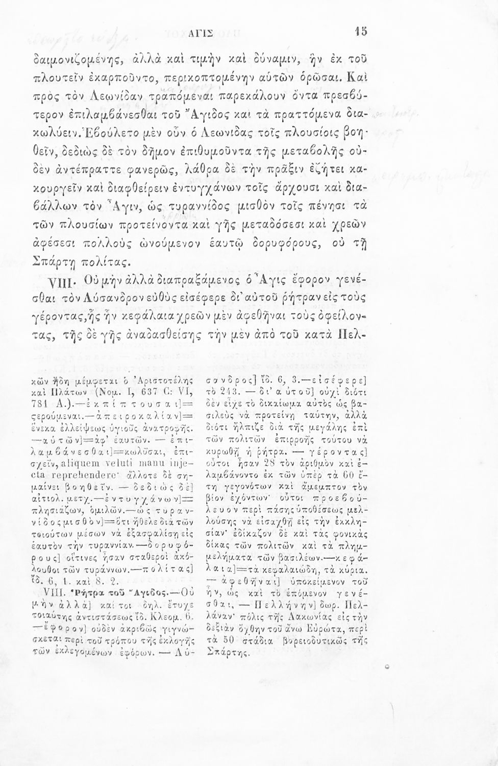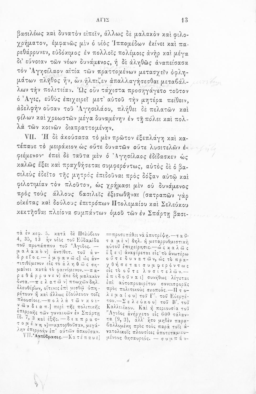 Σχολικό εγχειρίδιο Αρχαίων Ελληνικών για τους μαθητές των Γυμνασίων. Το βιβλίο περιλαμβάνει τις βιογραφίες των δύο βασιλέων της Λακωνίας, Άγι και Κλεομένη οι οποίες και συνοδεύονται από ερμηνευτικές, αι πραγματολογικές και γλωσσικές σημειώσεις.