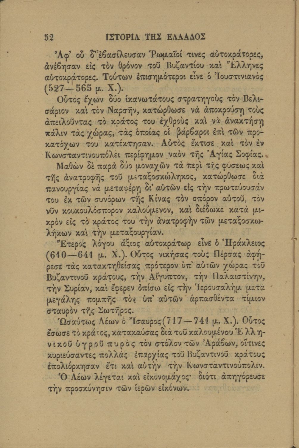 Βαθμίδα εκπαίδευσης: Πρωτοβάθμια Μάθημα: Ιστορία Γλώσσα: Καθαρεύουσα Παρουσίαση περιεχομένου: Σχολικό εγχειρίδιο Ιστορίας Δημοτικού που καλύπτει την περίοδο από τους προϊστορικούς χρόνους μέχρι και την Ελληνική Επανάσταση. |