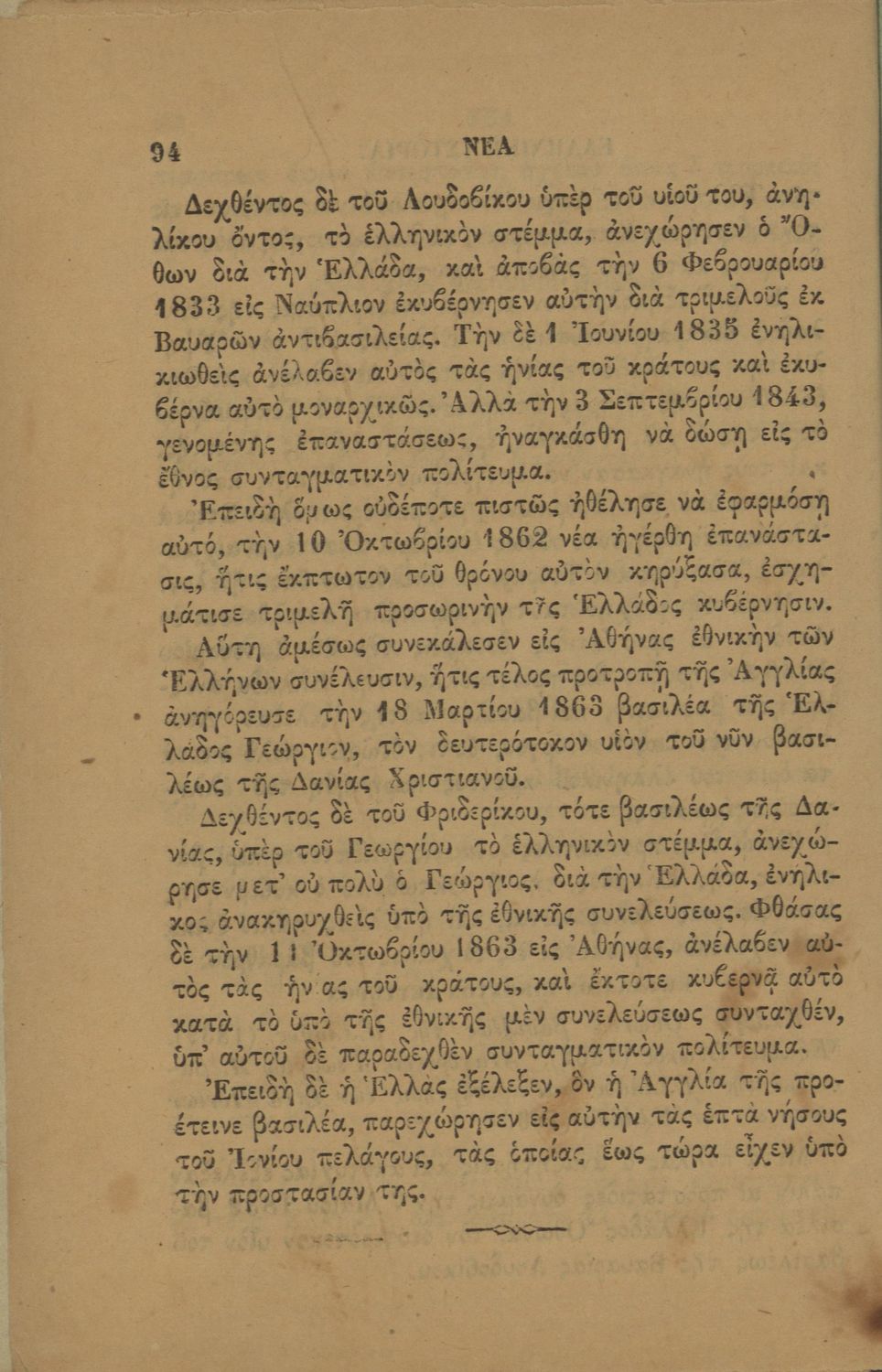 Σχολικό εγχειρίδιο Ιστορίας για τα Δημοτικά και Παρθεναγωγεία που περιλαμβάνει την περίοδο από τους μυθικούς και ηρωικούς χρόνους μέχρι την βασιλεία του Όθωνα και του Γεωργίου του Α΄.