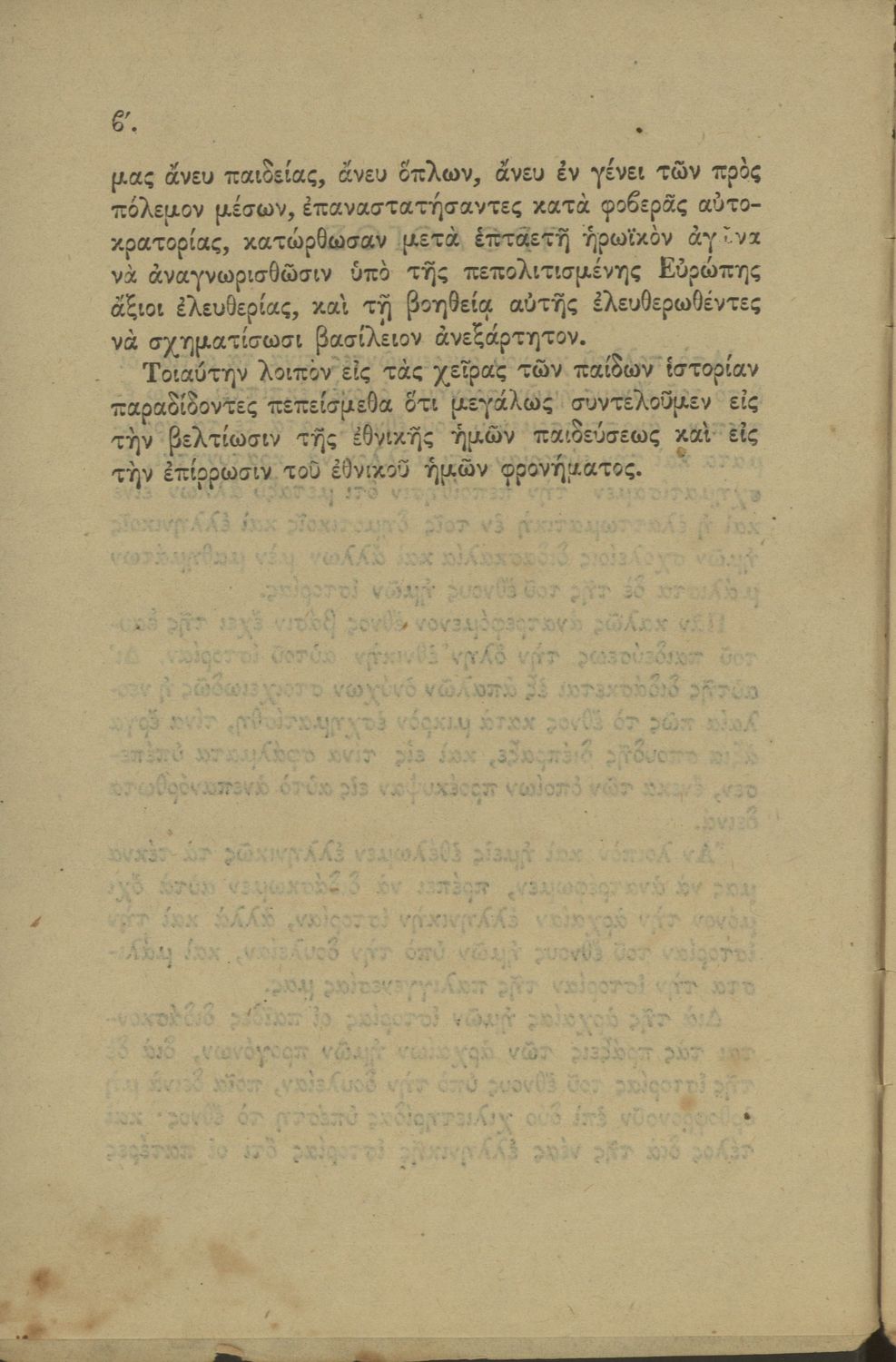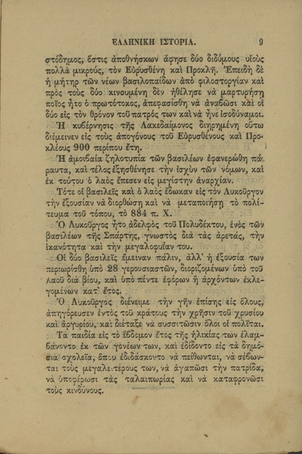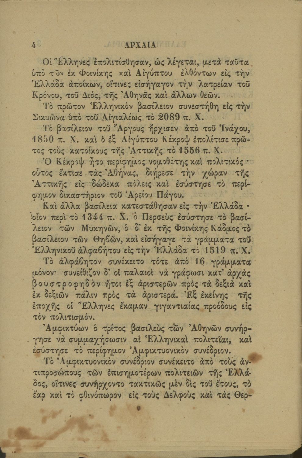 Βαθμίδα εκπαίδευσης: Πρωτοβάθμια Μάθημα: Ιστορία Γλώσσα: Καθαρεύουσα Παρουσίαση περιεχομένου: Σχολικό εγχειρίδιο Ιστορίας Δημοτικού που καλύπτει την περίοδο από τους προϊστορικούς χρόνους μέχρι και την Ελληνική Επανάσταση. |