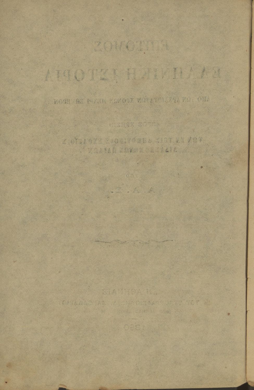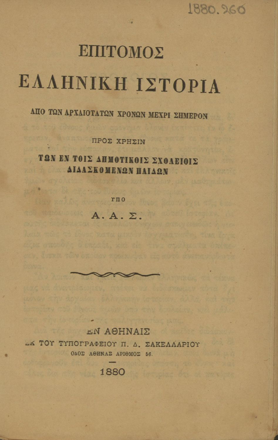 Εκδότης: Π. Δ. Σακελλαρίου Έτος έκδοσης: 1880 Τόπος έκδοσης: Αθήνα |