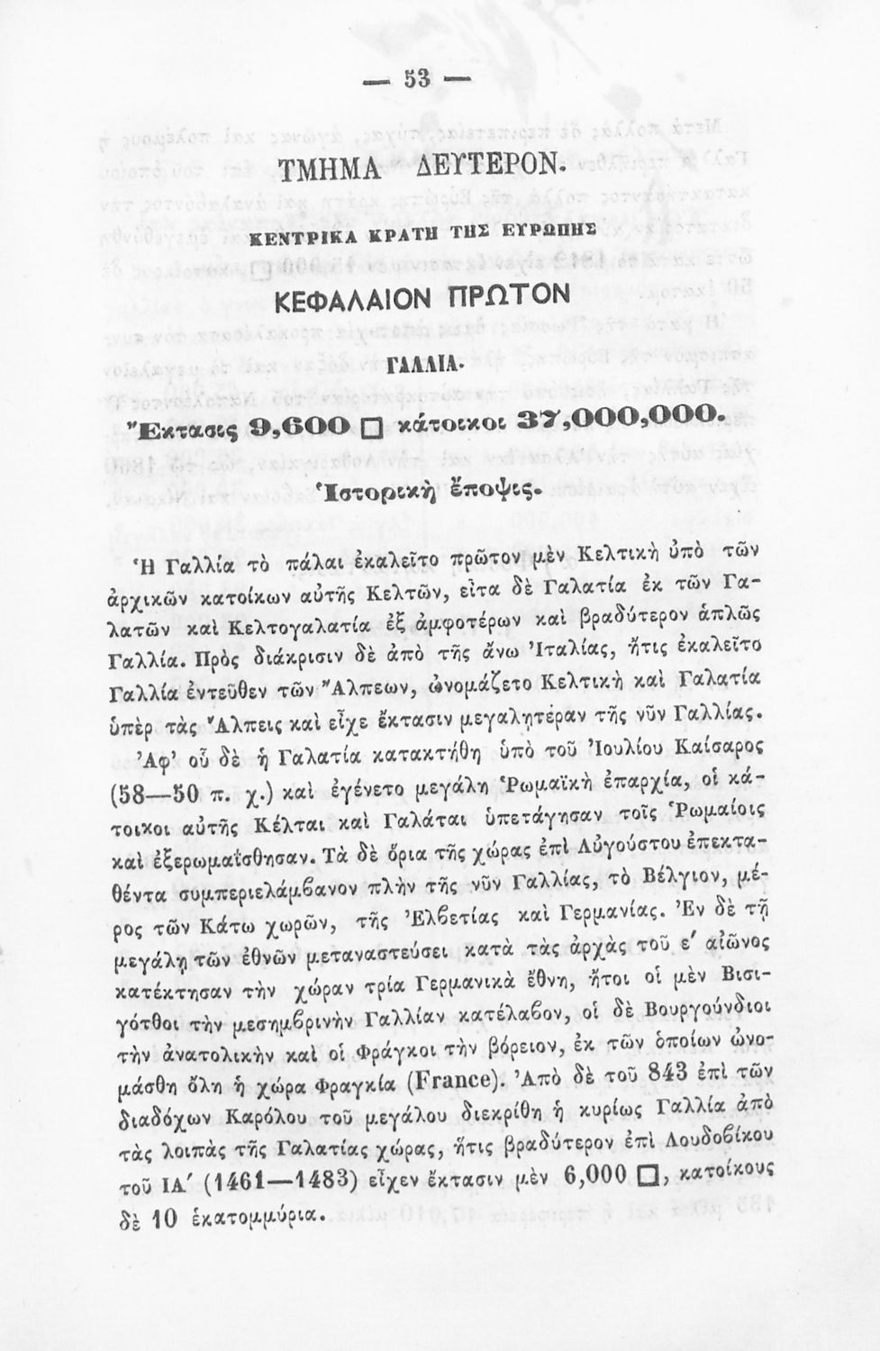 Τίτλος: Πολιτική γεωγραφία, προς χρήσιν των Ελληνικών Σχολείων και Παρθεναγωγείων, Μέρος δεύτερον, Τεύχος πρώτον, Γεωγραφία της Ευρώπης πλην της ελληνικής χερσονήσου