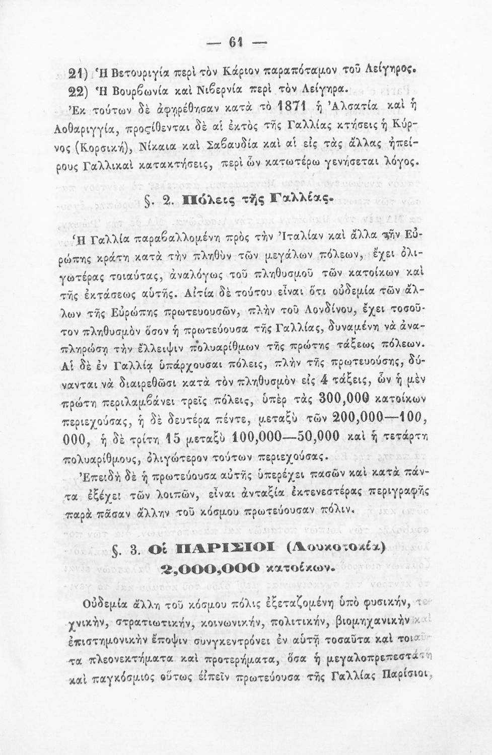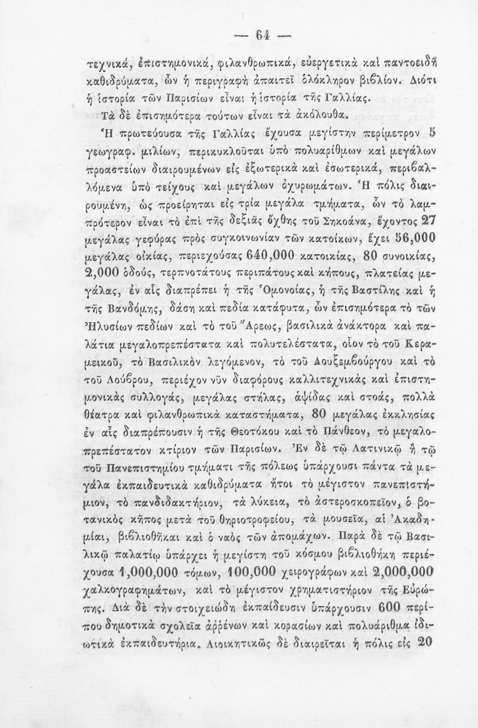 Σχολικό εγχειρίδιο Γεωγραφίας για τα Ελληνικά Σχολεία και Παρθεναγωγεία που περιλαμβάνει εισαγωγή στη φυσική, πολιτική και οικονομική γεωγραφία και μια γενική επισκόπηση της Ελλάδας και της Ευρωπαϊκής Τουρκίας