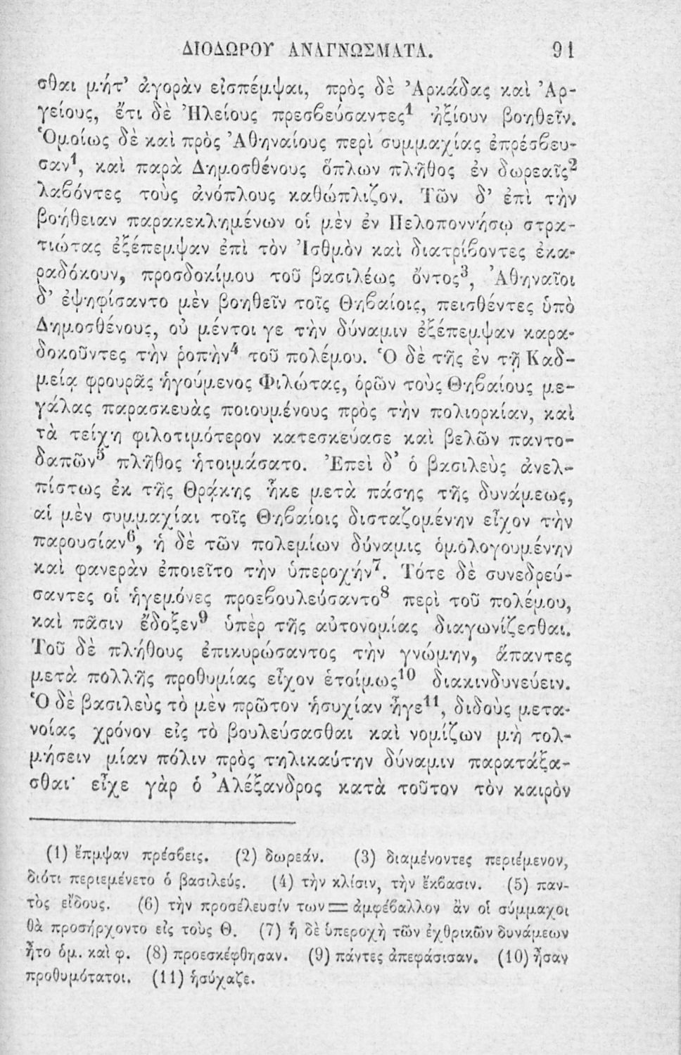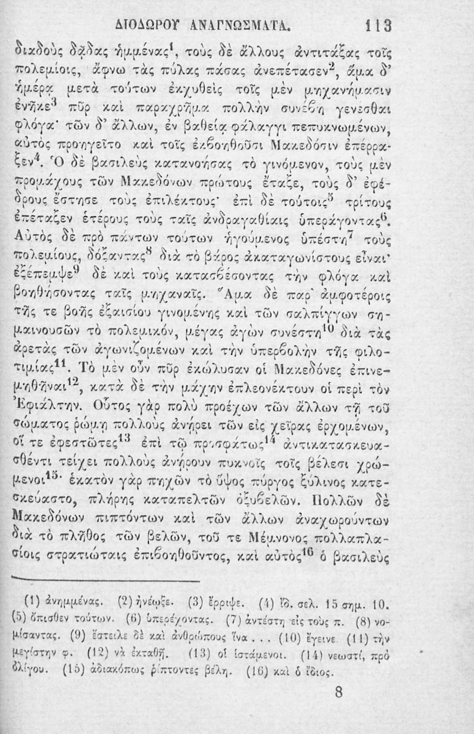 Σχολικό εγχειρίδιο Αρχαίων Ελληνικών που περιλαμβάνει αποσπάσματα από το έργο του Διόδωρου Σικελιώτη και ερμηνευτικά, λεξιλογικά και πραγματολογικά σχόλια.