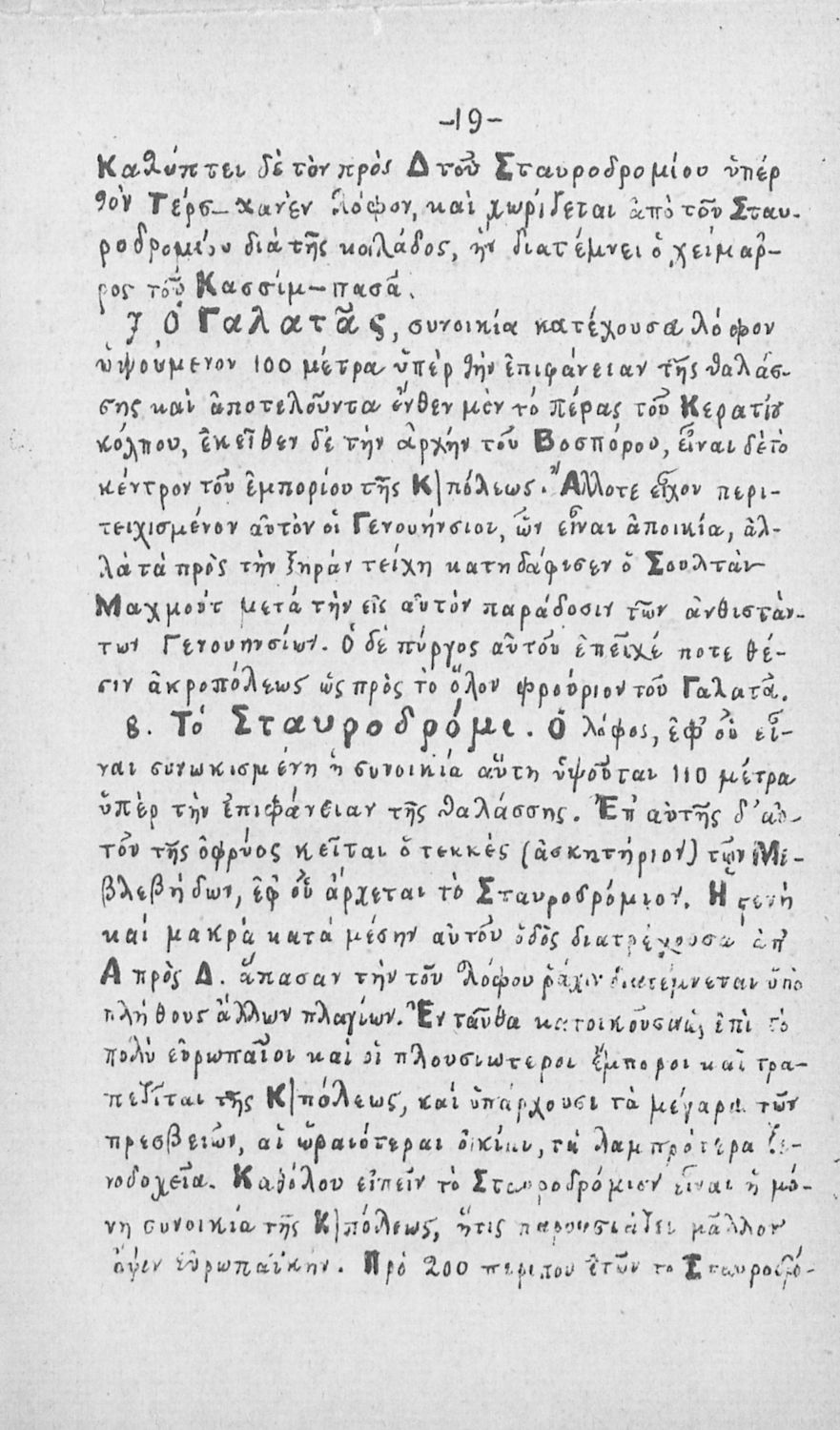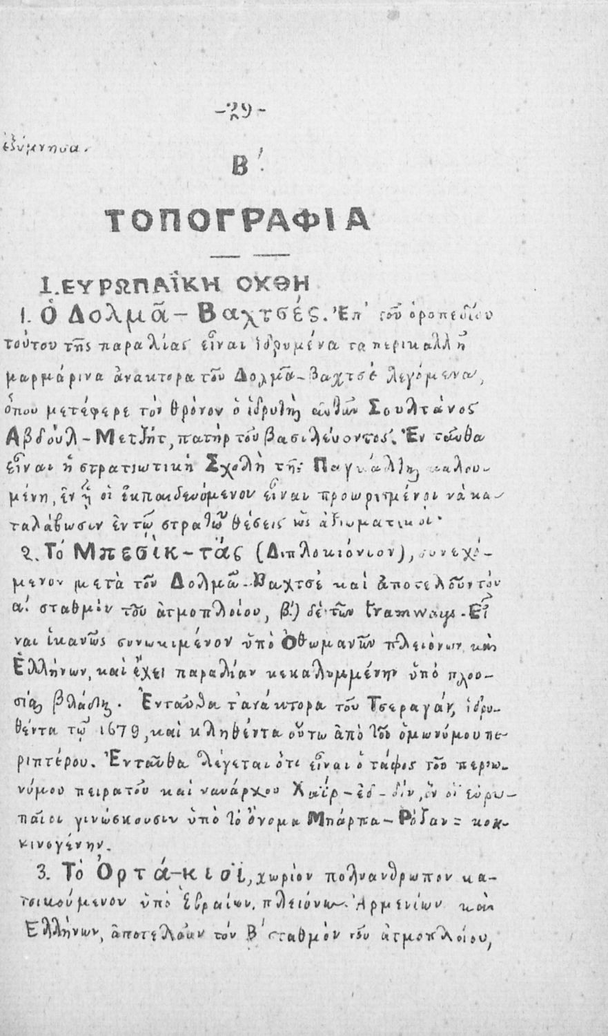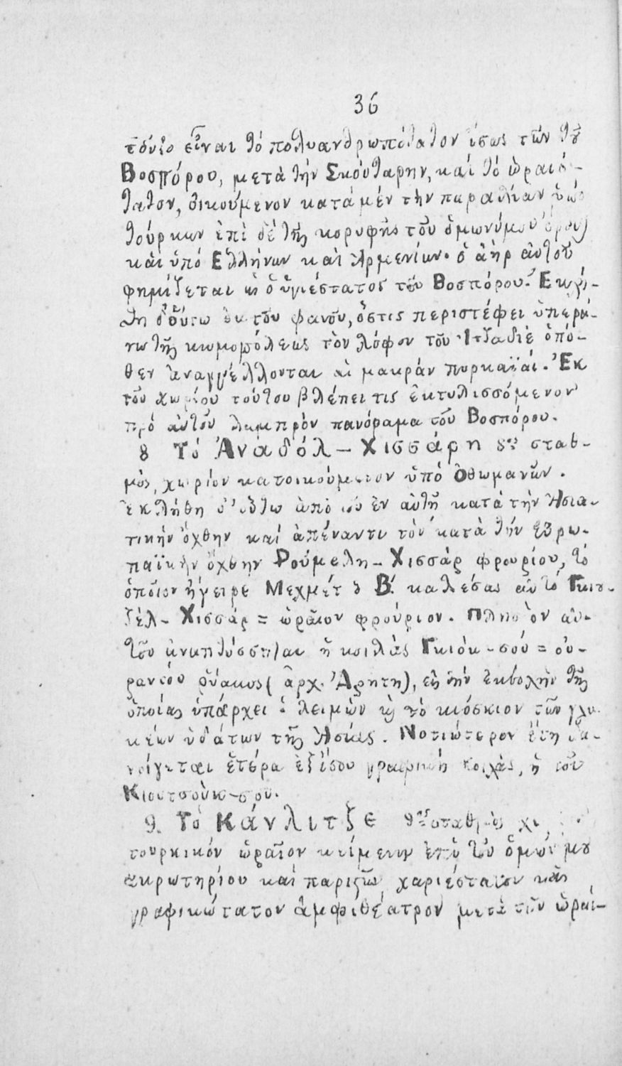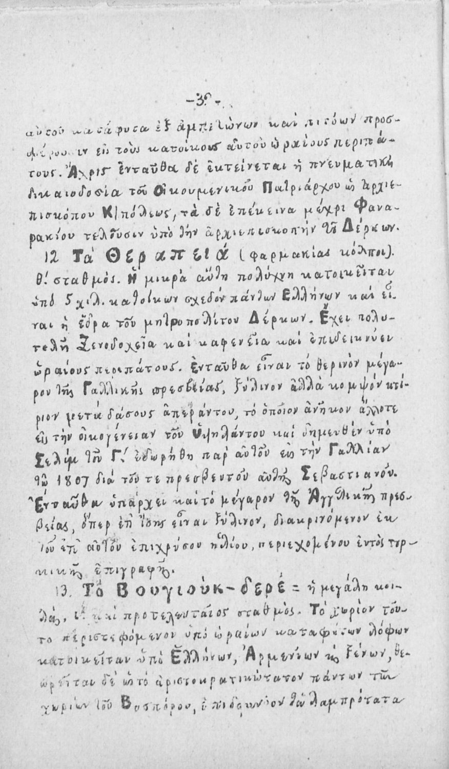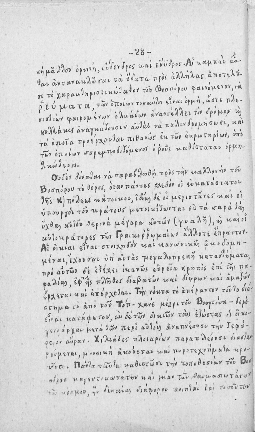 Χειρόγραφο που περιλαμβάνει την φυσική, πολιτική, οικονομική και ιστορική γεωγραφία της Κωνσταντινούπολης, του Βοσπόρου, της Θράκης και της ελληνικής χερσονήσου.