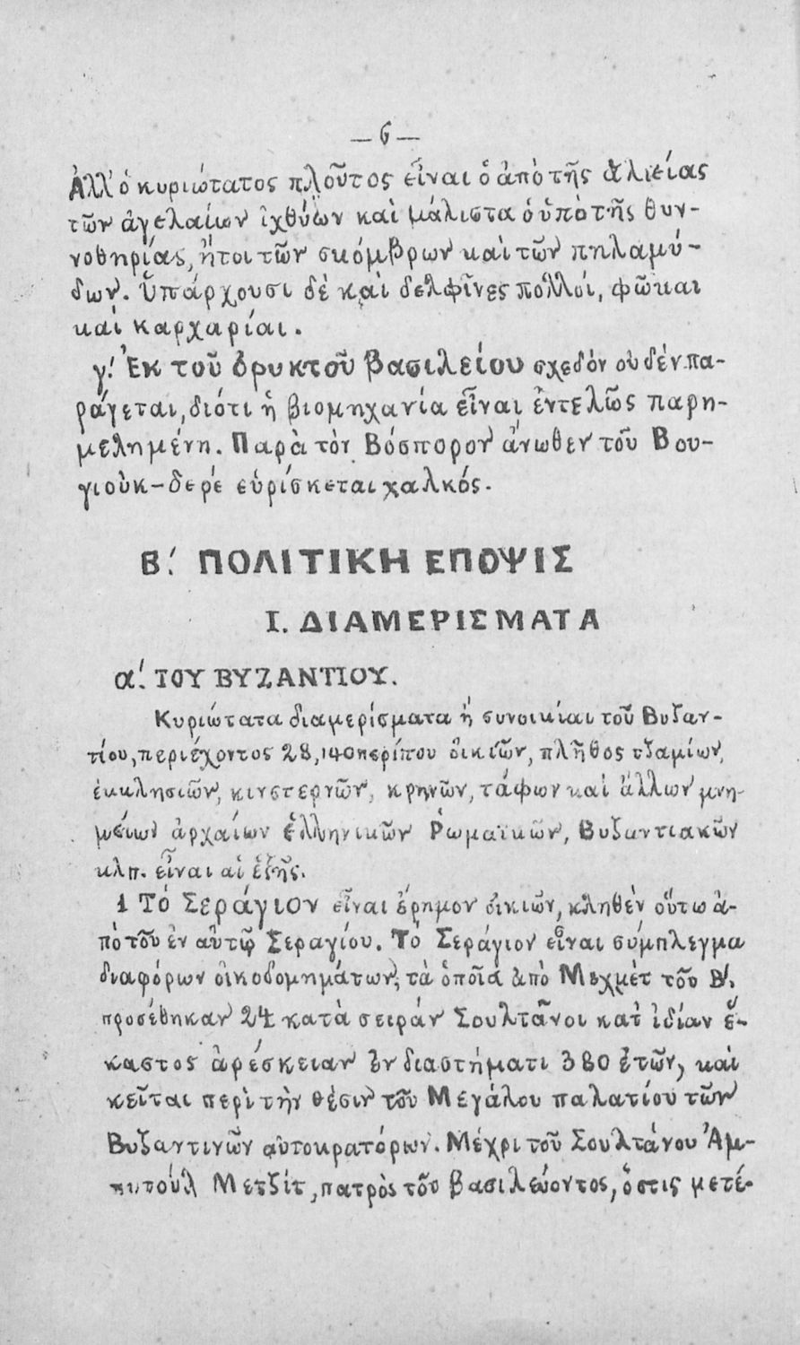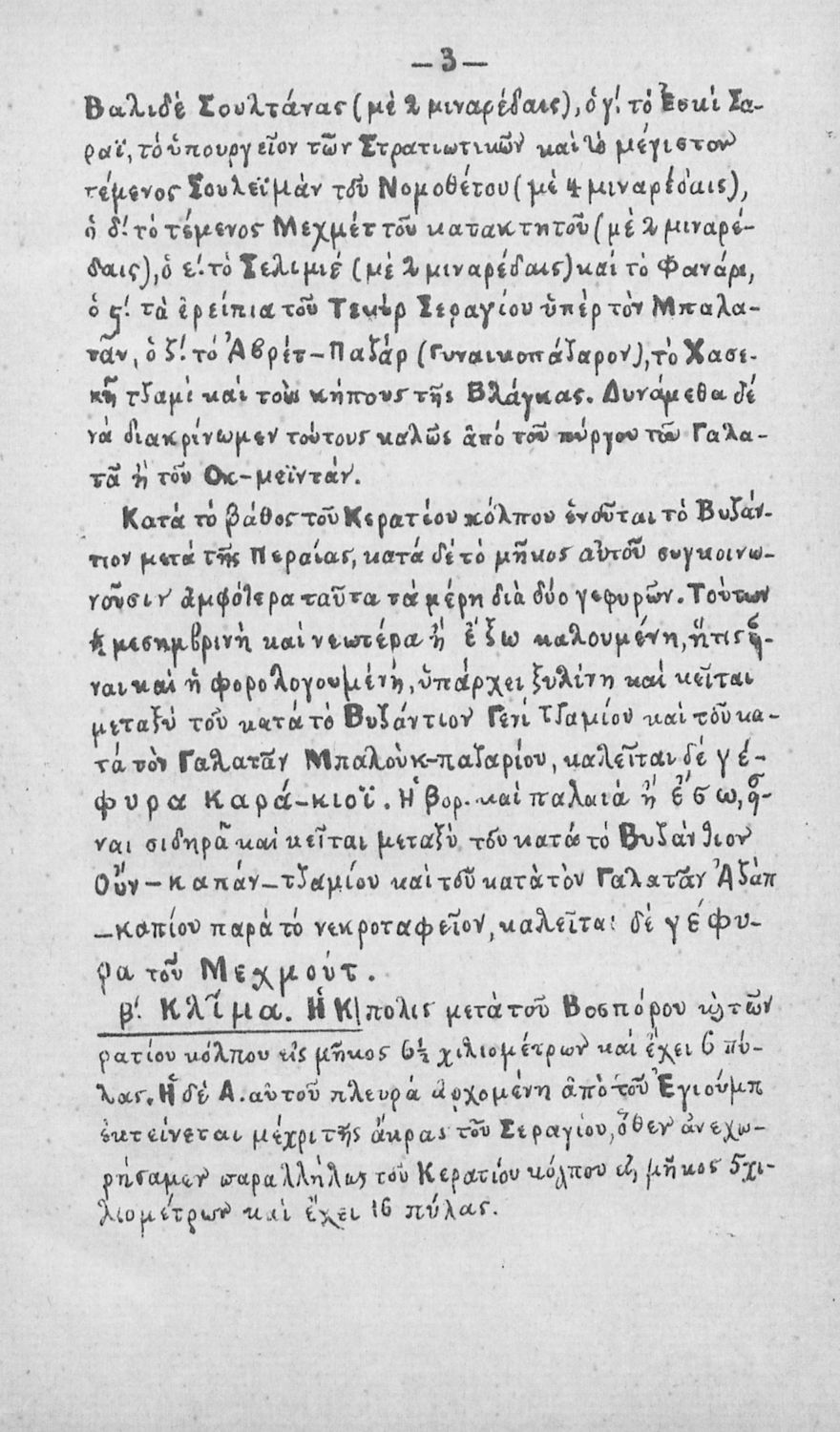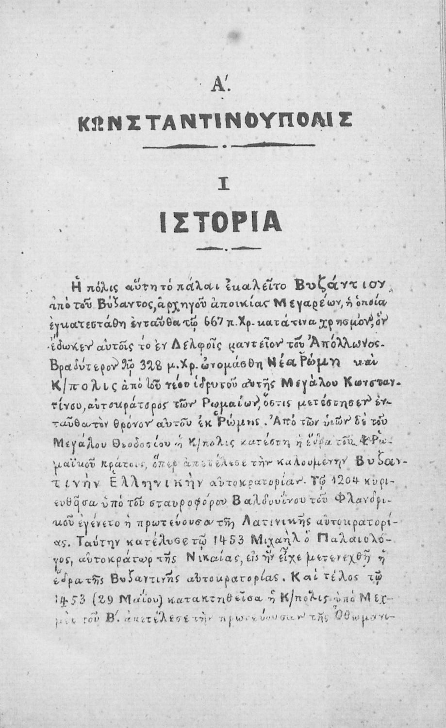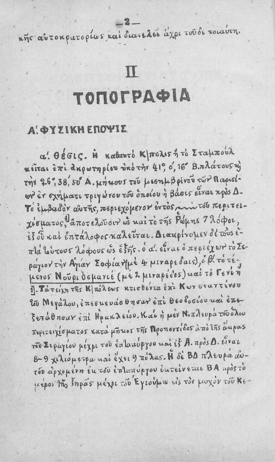 Χειρόγραφο που περιλαμβάνει την φυσική, πολιτική, οικονομική και ιστορική γεωγραφία της Κωνσταντινούπολης, του Βοσπόρου, της Θράκης και της ελληνικής χερσονήσου.
