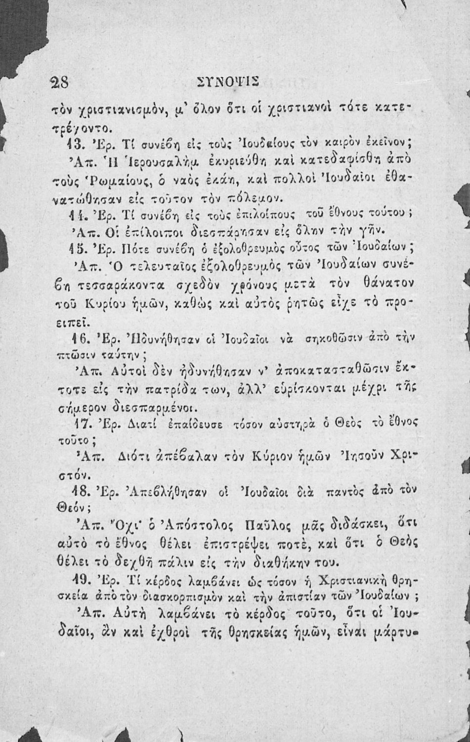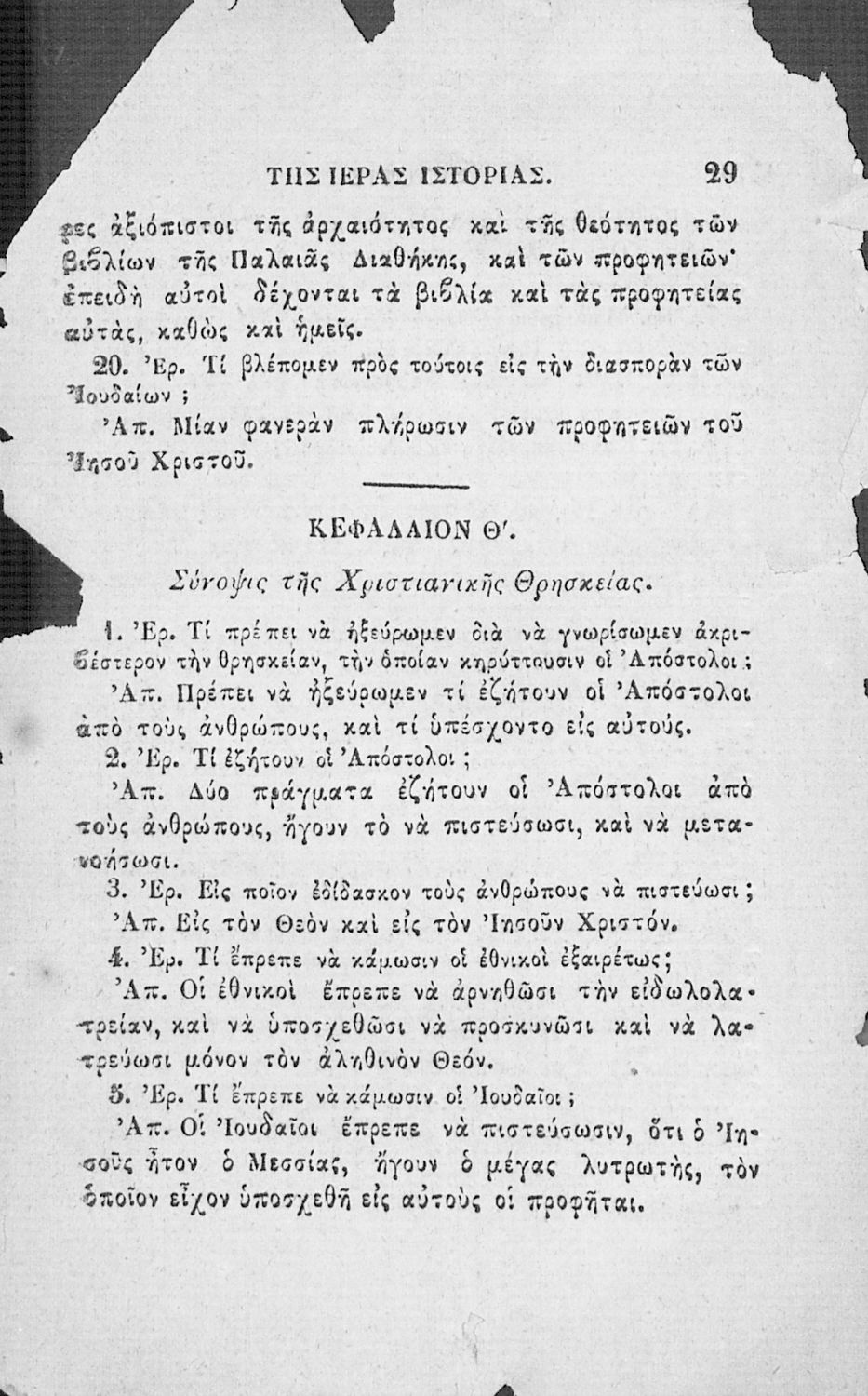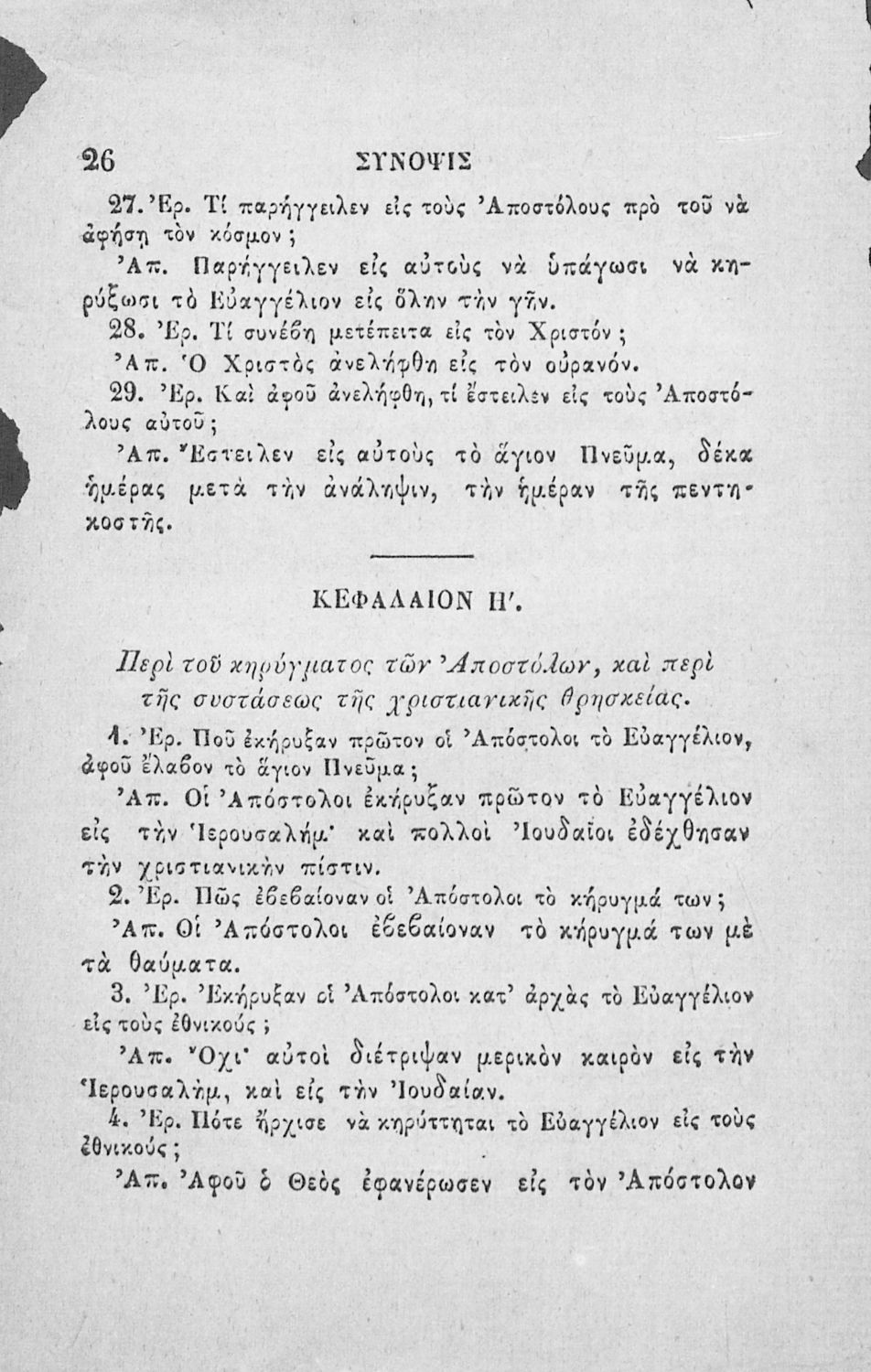 Κωδικός αναγνώρισης: 02-02752 Τίτλος: Χριστιανικής διδασκαλίας μάθημα τμήματος Β΄, ιεράς ιστορίας σύνοψις προς χρήσιν των Δημοτικών Σχολείων Συγγραφέας: Α. Κοραής Μέγεθος και υπόστρωμα: Σχολικό εγχειρίδιο, 32 σελίδες. Σκίτσα (ασπρόμαυρα). |