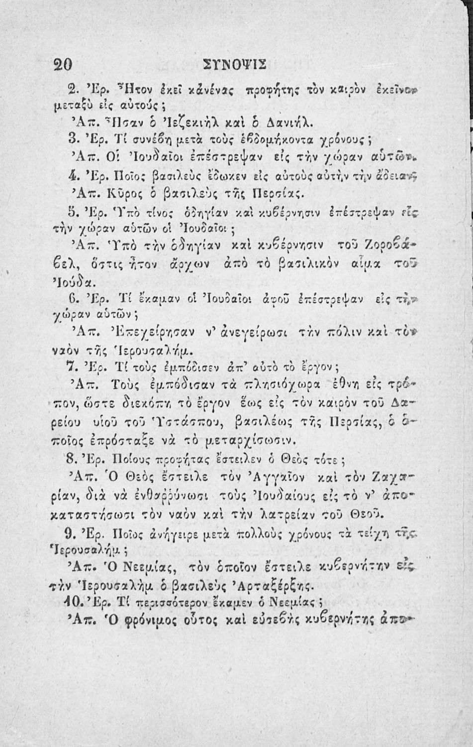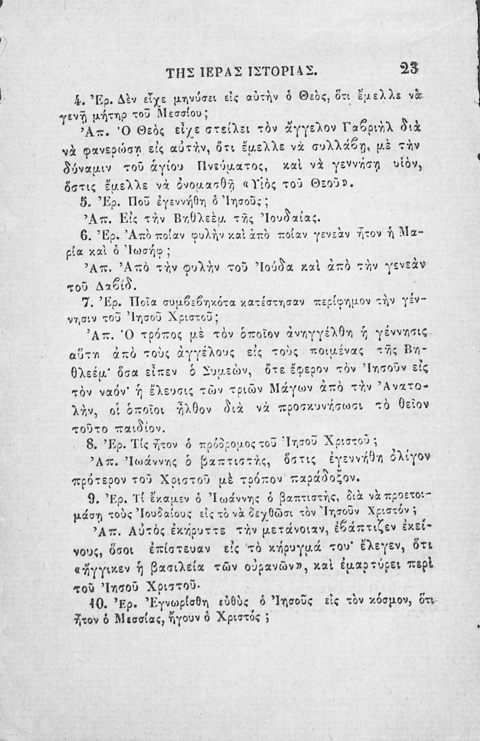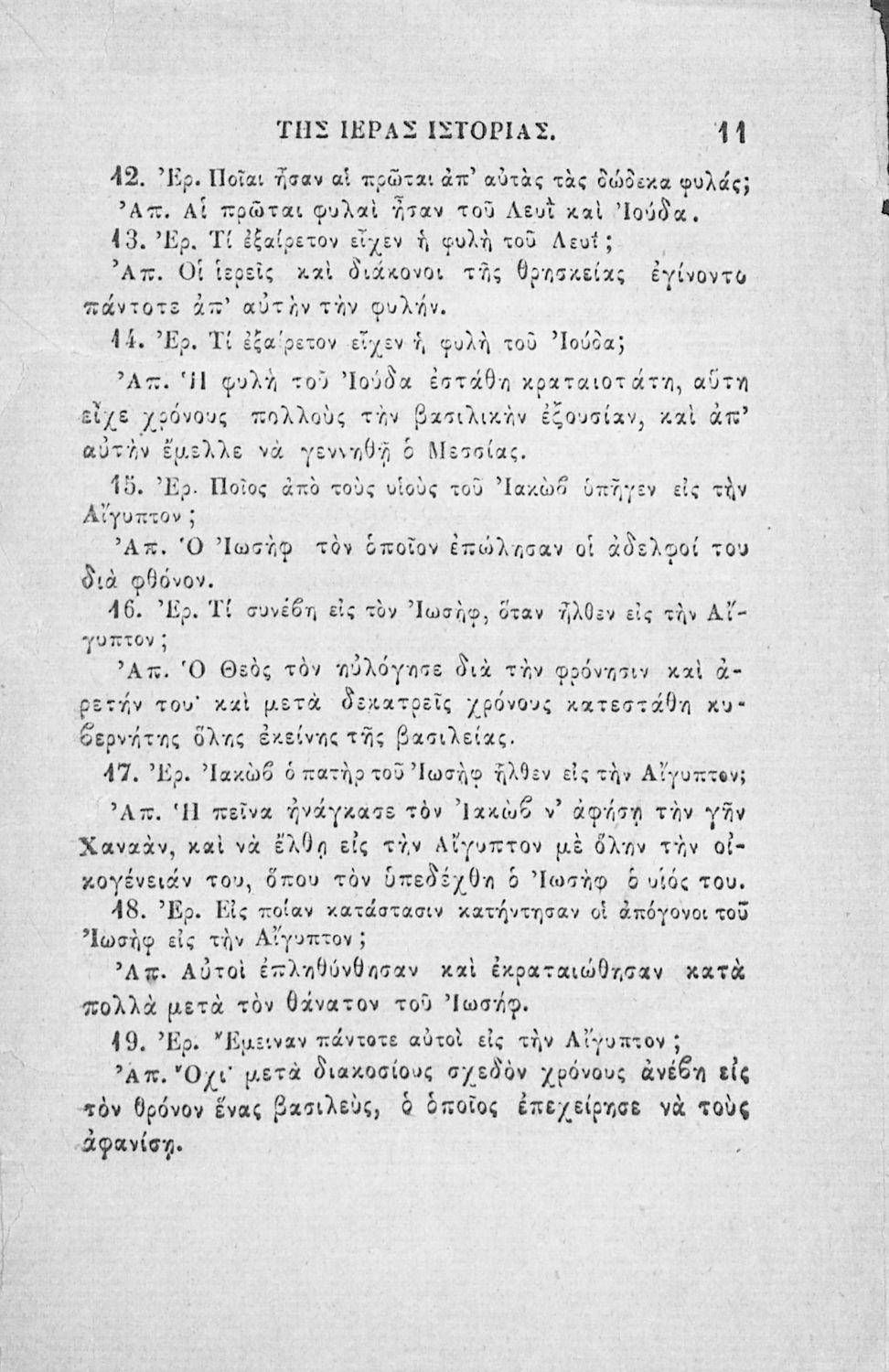 Κωδικός αναγνώρισης: 02-02752 Τίτλος: Χριστιανικής διδασκαλίας μάθημα τμήματος Β΄, ιεράς ιστορίας σύνοψις προς χρήσιν των Δημοτικών Σχολείων Συγγραφέας: Α. Κοραής Μέγεθος και υπόστρωμα: Σχολικό εγχειρίδιο, 32 σελίδες. Σκίτσα (ασπρόμαυρα). |