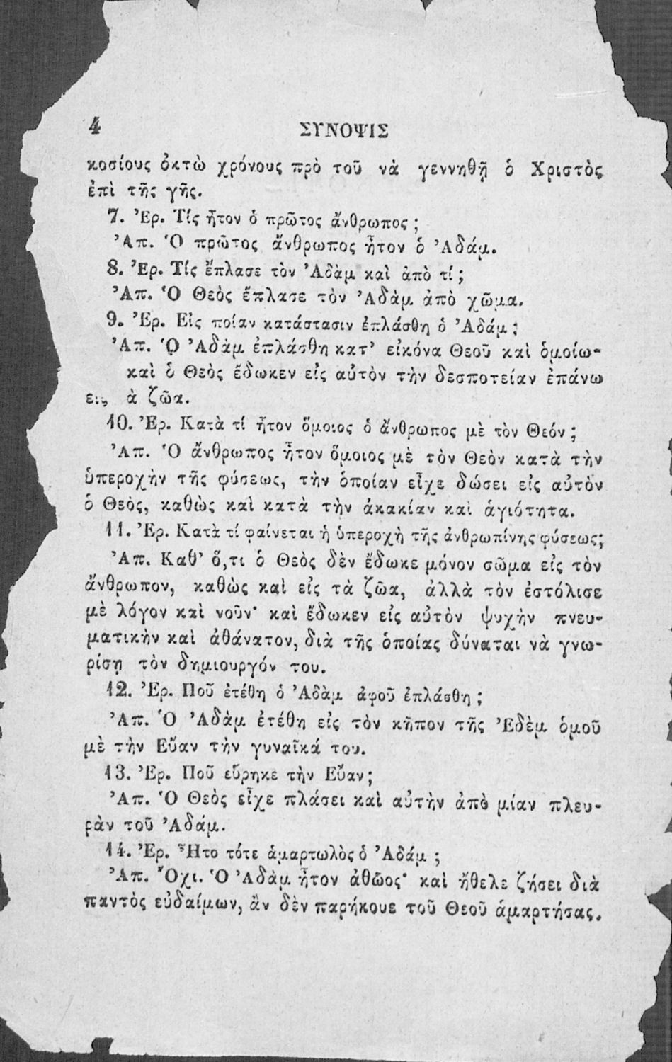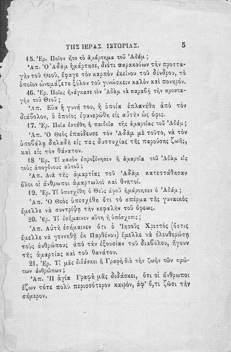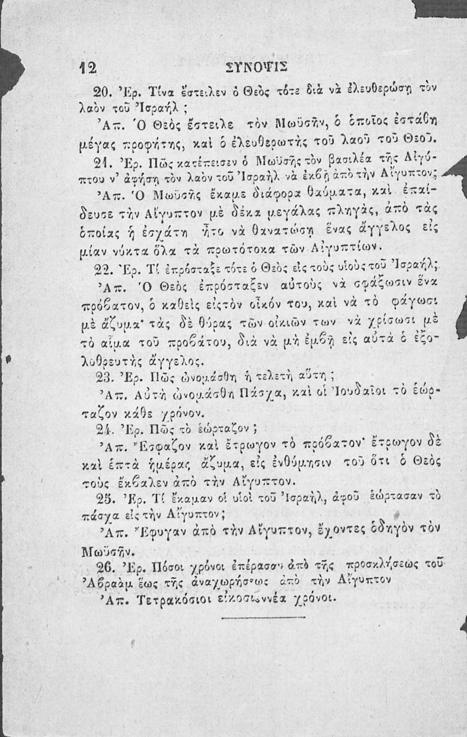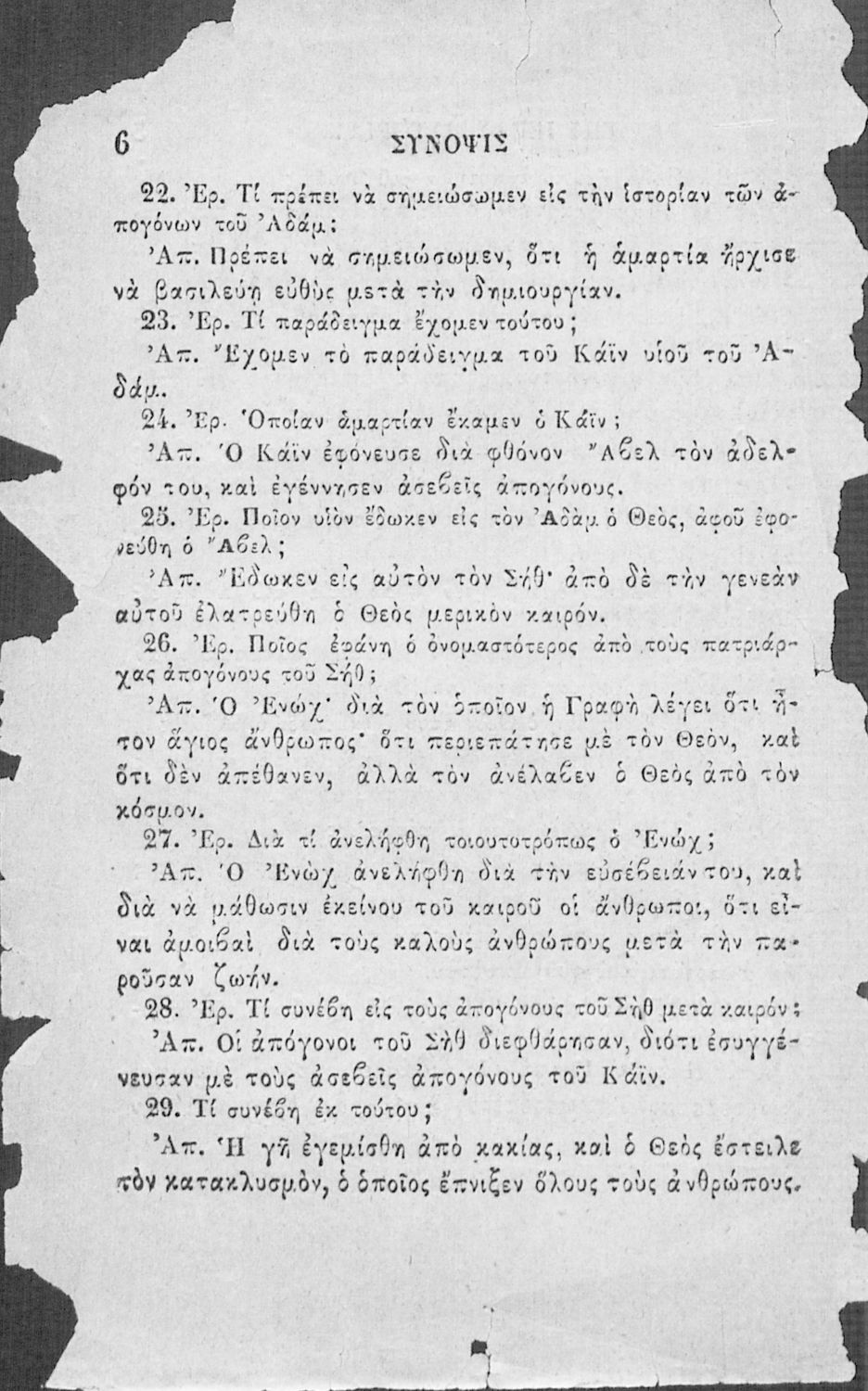 Κωδικός αναγνώρισης: 02-02752 Τίτλος: Χριστιανικής διδασκαλίας μάθημα τμήματος Β΄, ιεράς ιστορίας σύνοψις προς χρήσιν των Δημοτικών Σχολείων Συγγραφέας: Α. Κοραής Μέγεθος και υπόστρωμα: Σχολικό εγχειρίδιο, 32 σελίδες. Σκίτσα (ασπρόμαυρα). |