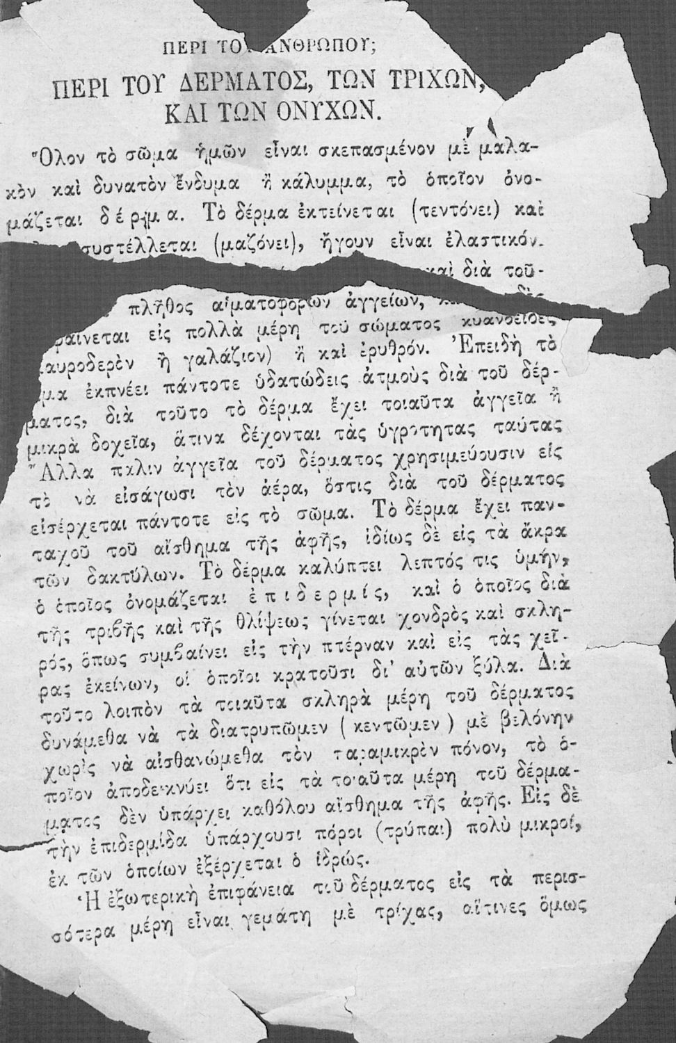 Σχολικό εγχειρίδιο Ανθρωπολογίας και Υγιεινής για τους μαθητές του Δημοτικού το οποίο εξετάζει στις λειτουργίες του ανθρώπινου σώματος, τα εξωτερικά και εσωτερικά μέρη του σώματος και τους παράγοντες οι οποίοι