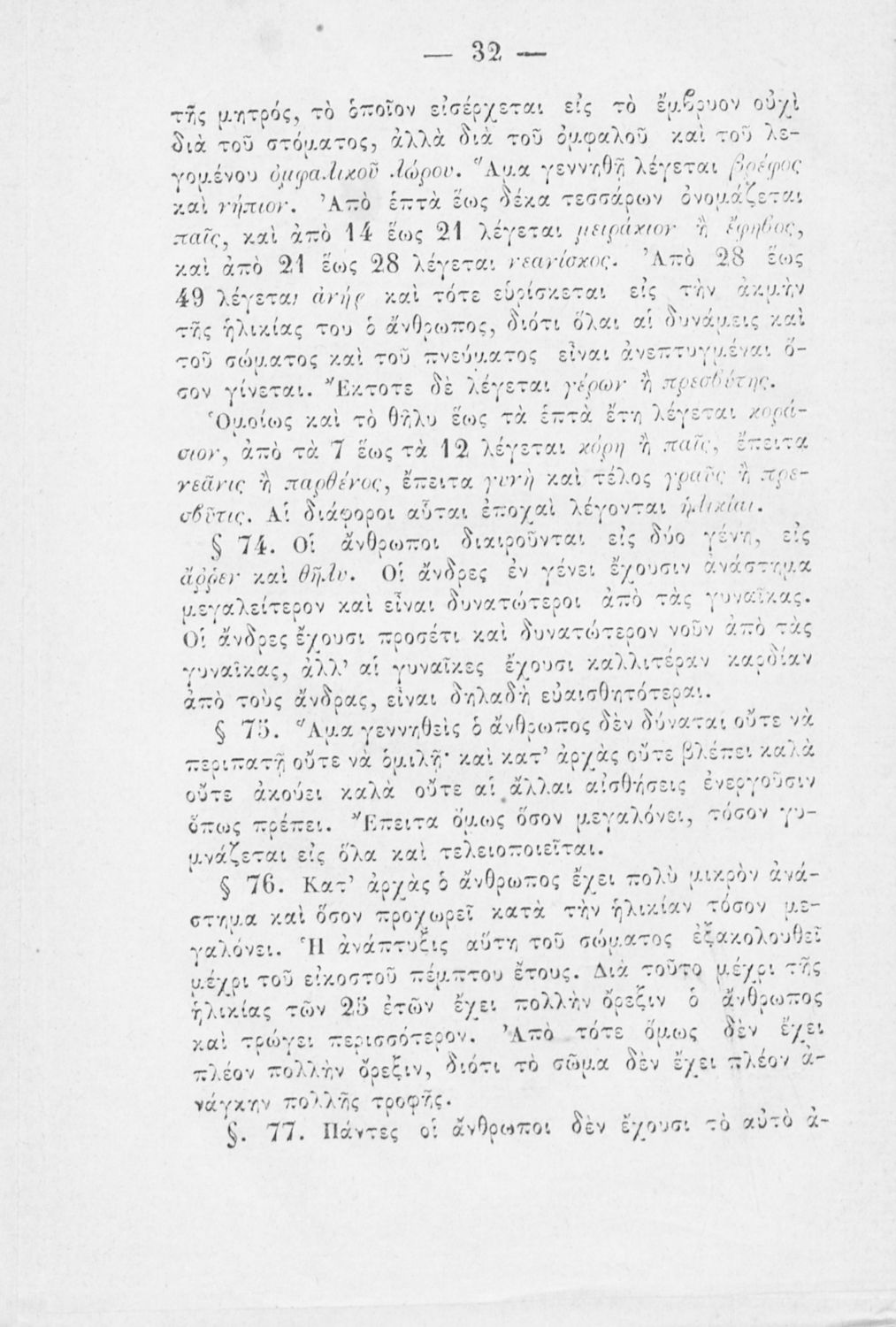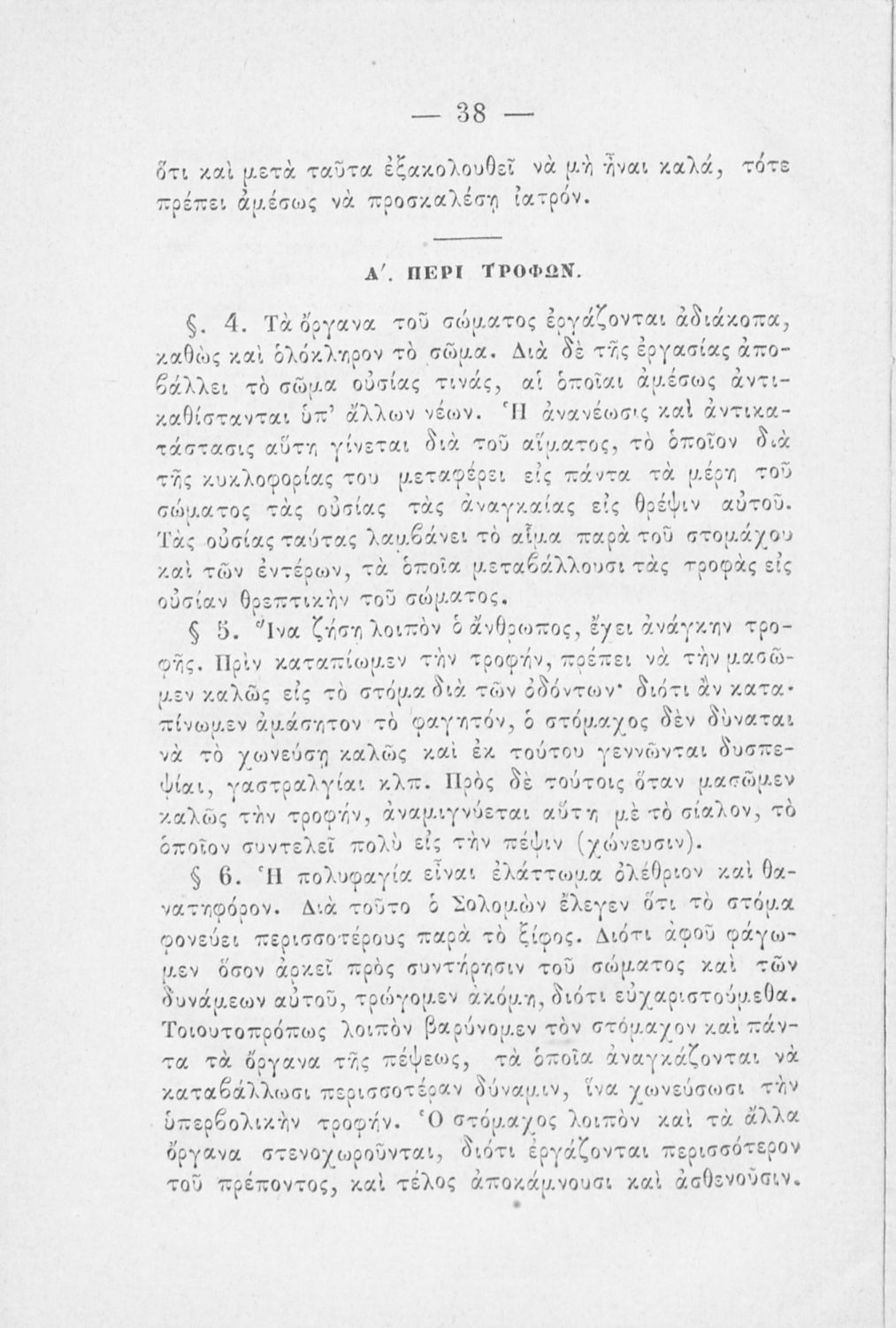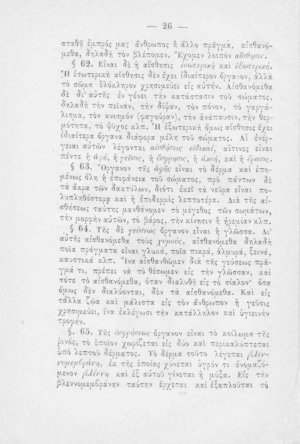Βαθμίδα εκπαίδευσης: Πρωτοβάθμια Μάθημα: Ανθρωπολογία Γλώσσα: Καθαρεύουσα Παρουσίαση περιεχομένου: Σχολικό εγχειρίδιο Ανθρωπολογίας και Υγιεινής για τους μαθητές του Δημοτικού το οποίο εξετάζει στις λειτουργίες του ανθρώπινου σώματος, τα εξωτερικά και εσωτερικά μέρη του σώματος και τους παράγοντες οι οποίοι επηρεάζουν θετικά ή αρνητικά τον ανθρώπινο οργανισμό, όπως η εργασία, η τροφή και η άσκηση. |