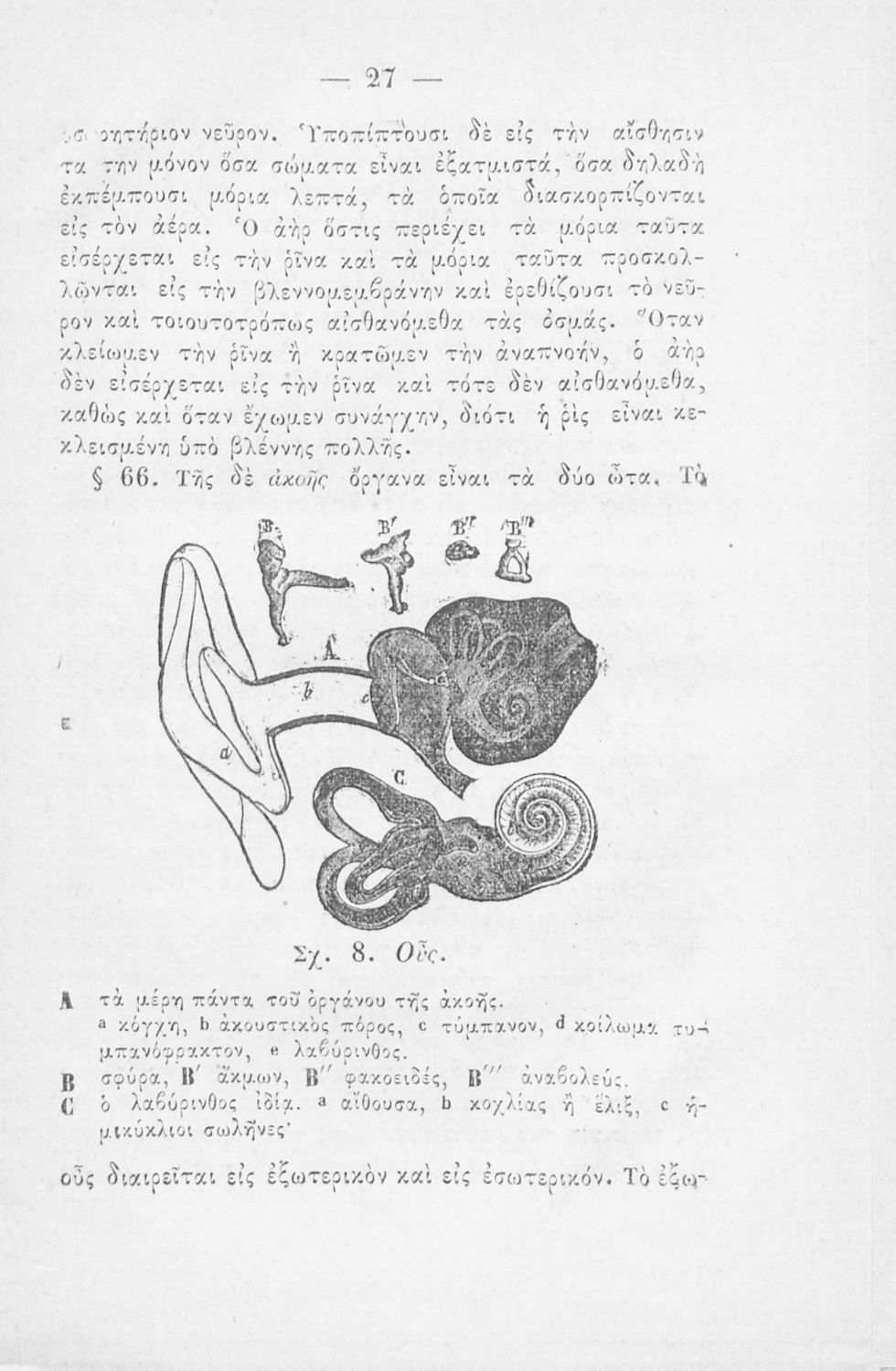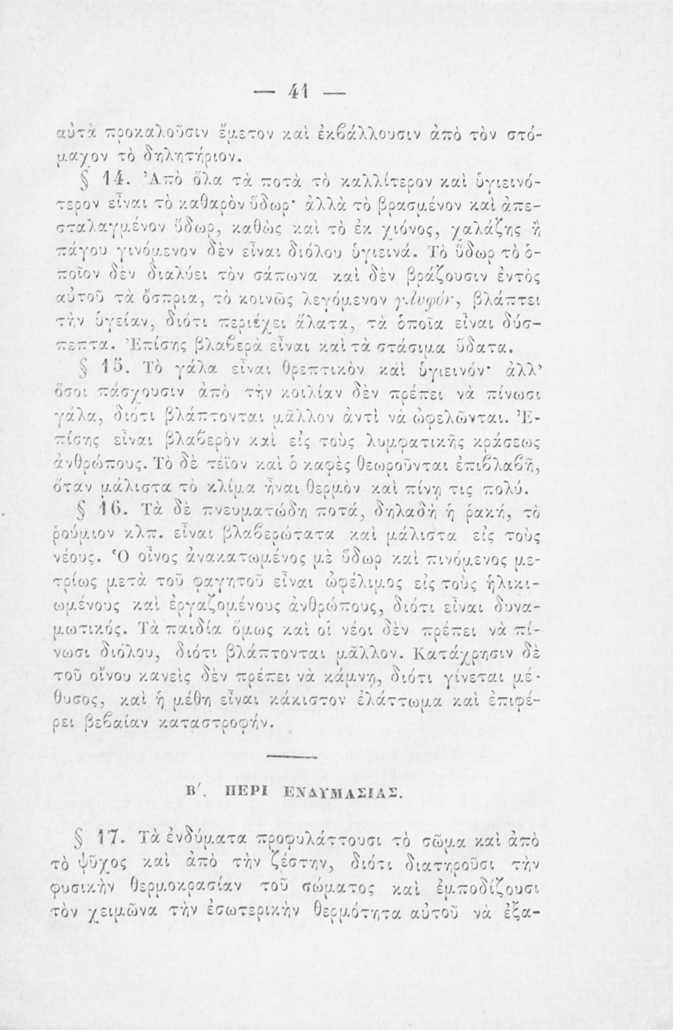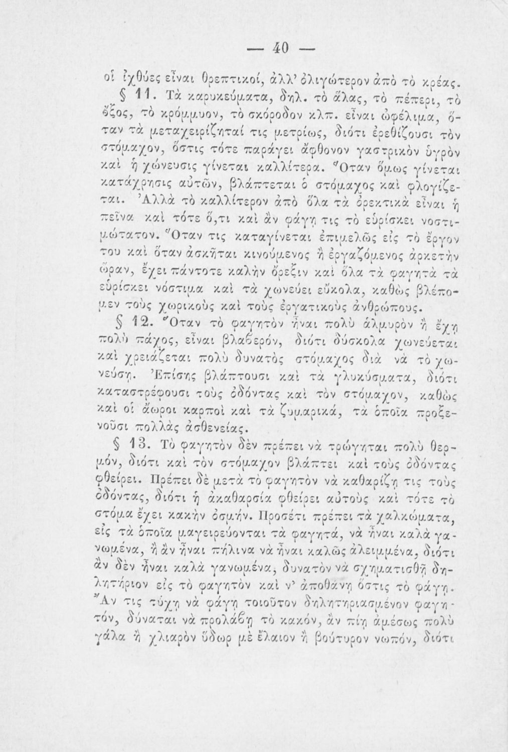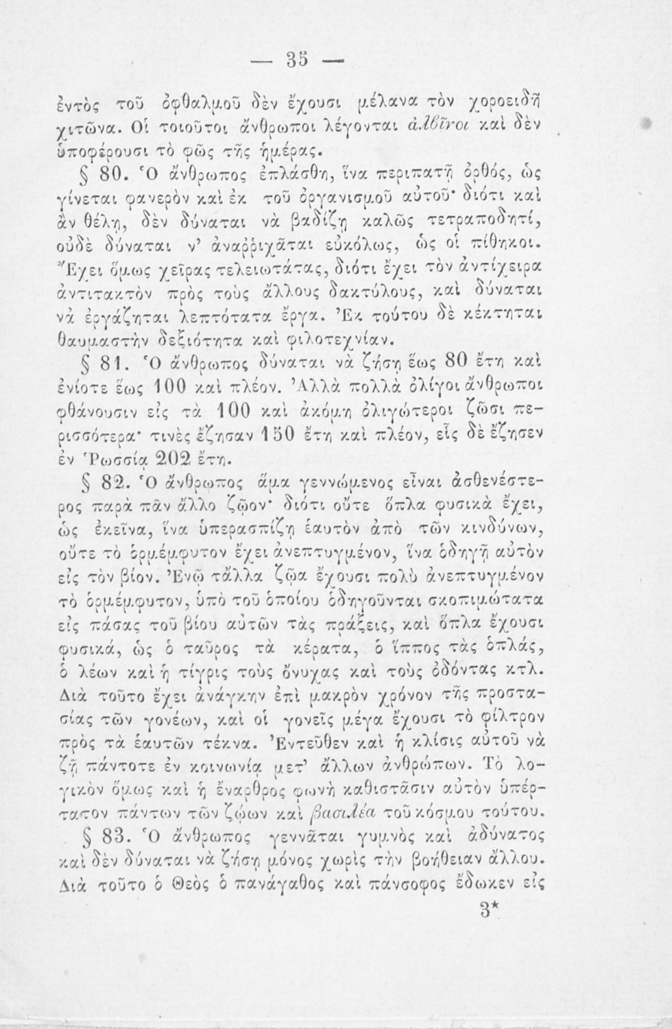 Βαθμίδα εκπαίδευσης: Πρωτοβάθμια Μάθημα: Ανθρωπολογία Γλώσσα: Καθαρεύουσα Παρουσίαση περιεχομένου: Σχολικό εγχειρίδιο Ανθρωπολογίας και Υγιεινής για τους μαθητές του Δημοτικού το οποίο εξετάζει στις λειτουργίες του ανθρώπινου σώματος, τα εξωτερικά και εσωτερικά μέρη του σώματος και τους παράγοντες οι οποίοι επηρεάζουν θετικά ή αρνητικά τον ανθρώπινο οργανισμό, όπως η εργασία, η τροφή και η άσκηση. |