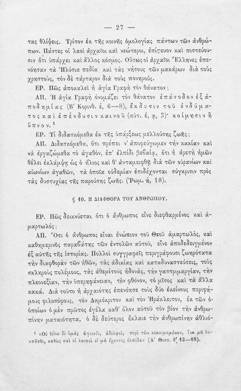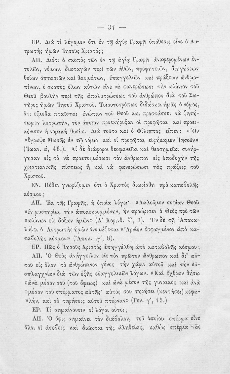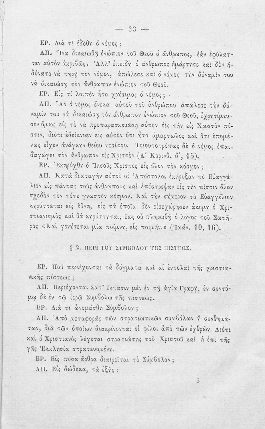 Σχολικό εγχειρίδιο Θρησκευτικών για τα Ελληνικά Σχολεία και παρθεναγωγεία που περιλαμβάνει εισαγωγή στην Παλαιά και Καινή διαθήκη και πραγματεύεται δογματικά και ηθικά ζητήματα της ορθόδοξης κατήχησης Είχε ...