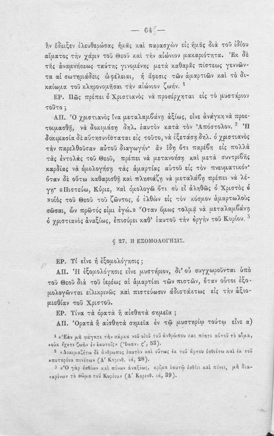 Σχολικό εγχειρίδιο Θρησκευτικών για τα Ελληνικά Σχολεία και παρθεναγωγεία που περιλαμβάνει εισαγωγή στην Παλαιά και Καινή διαθήκη και πραγματεύεται δογματικά και ηθικά ζητήματα της ορθόδοξης κατήχησης Είχε ...