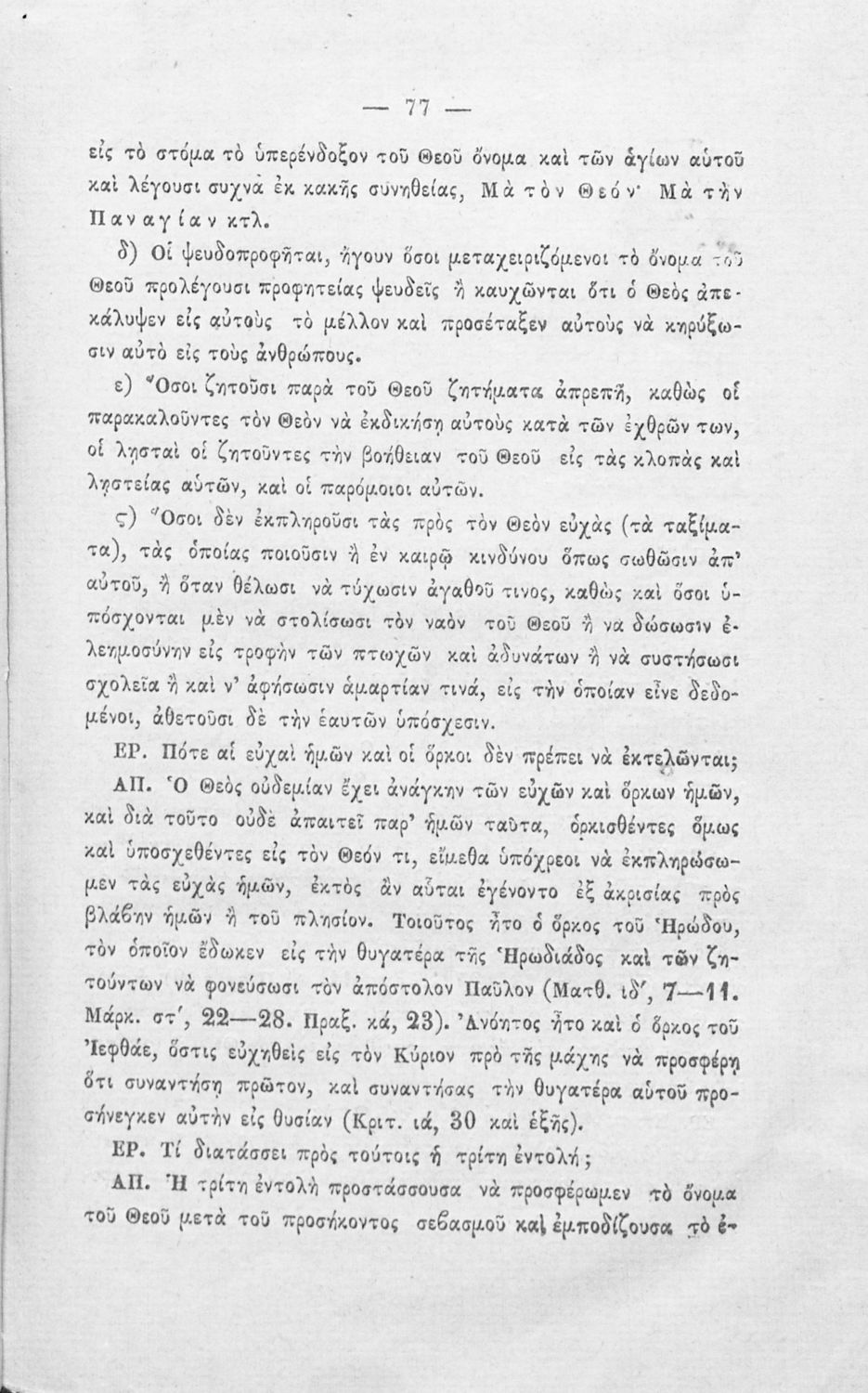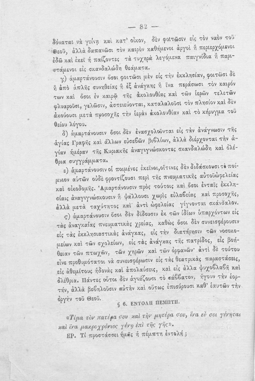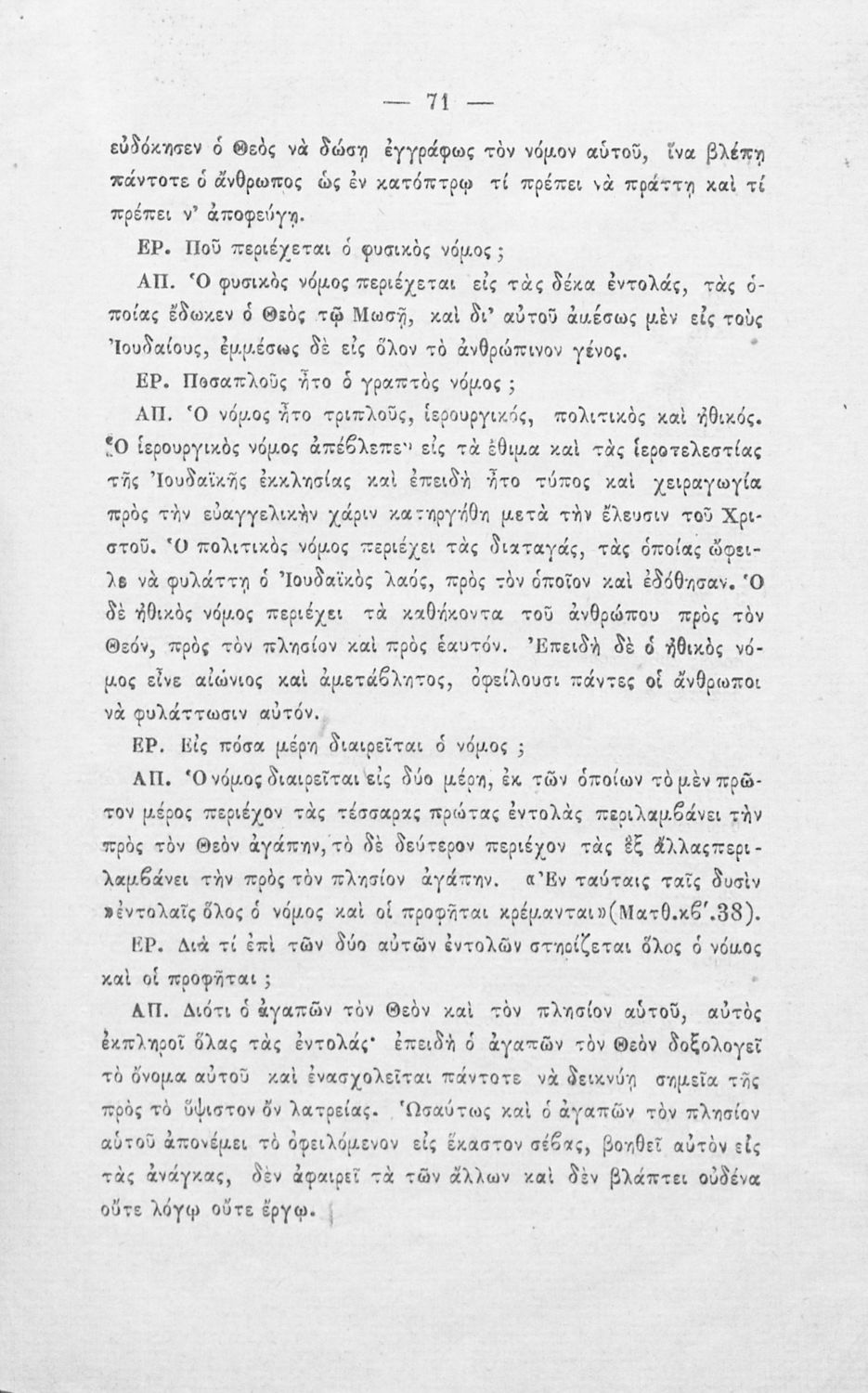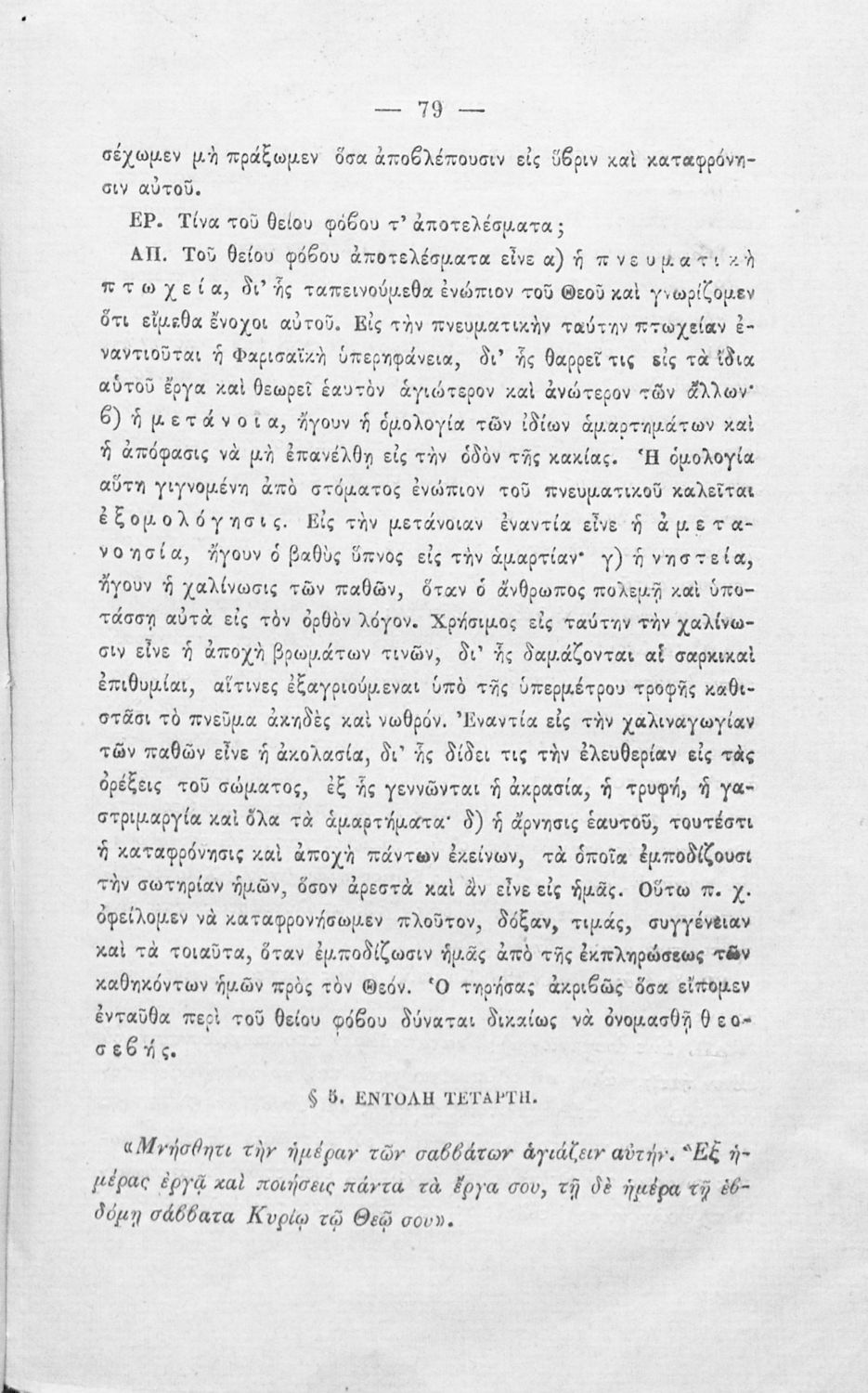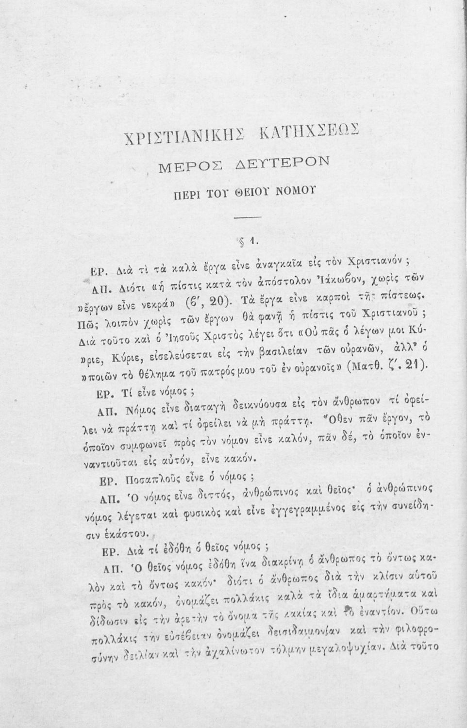 Σχολικό εγχειρίδιο Θρησκευτικών για τα Ελληνικά Σχολεία και Παρθεναγωγεία που εστιάζει σε θέματα χριστιανικής ηθικής και σε δογματικά και ηθικά ζητήματα της ορθόδοξης κατήχησης.