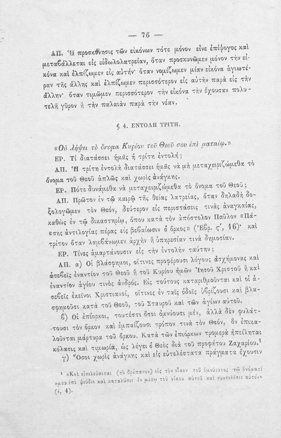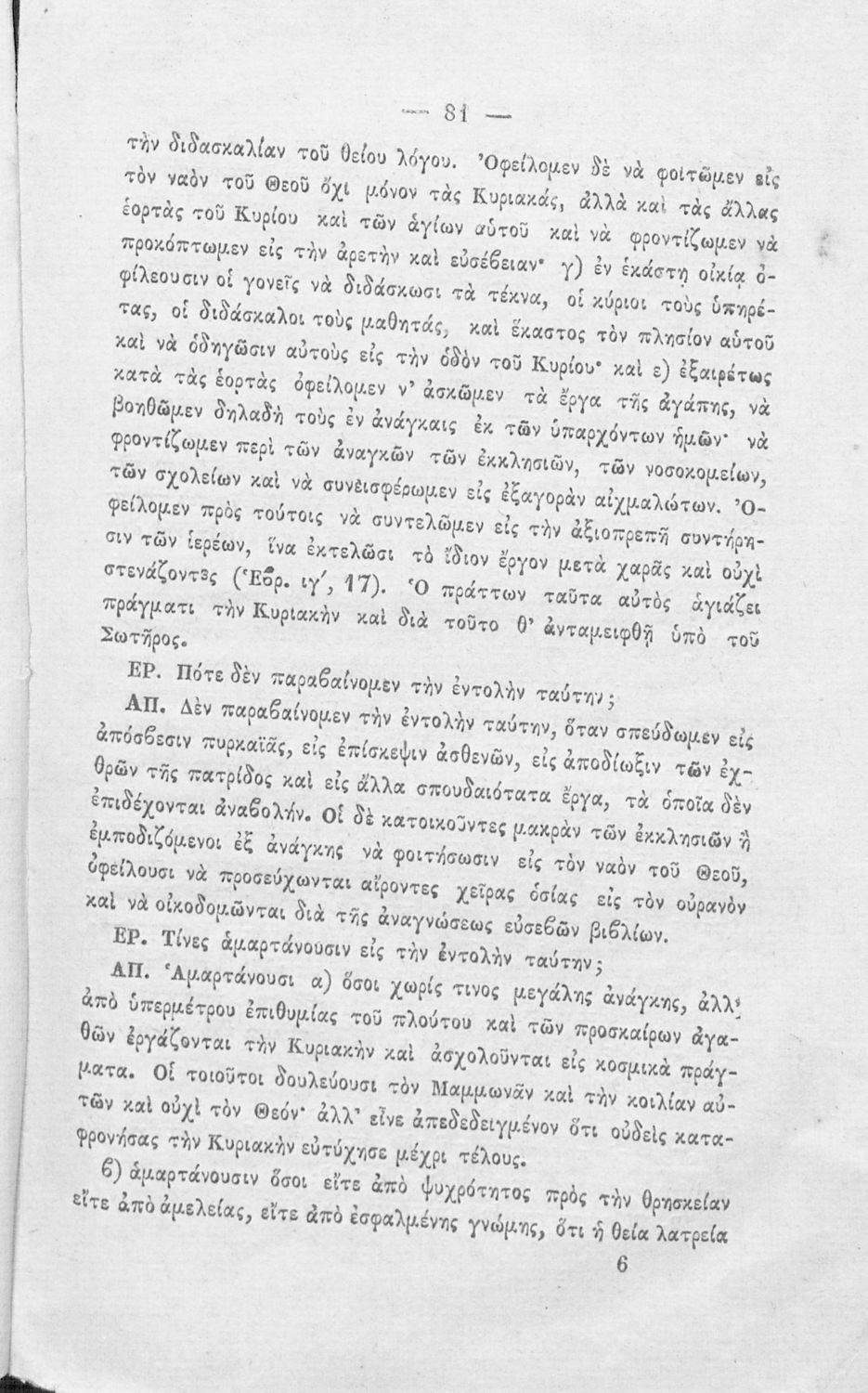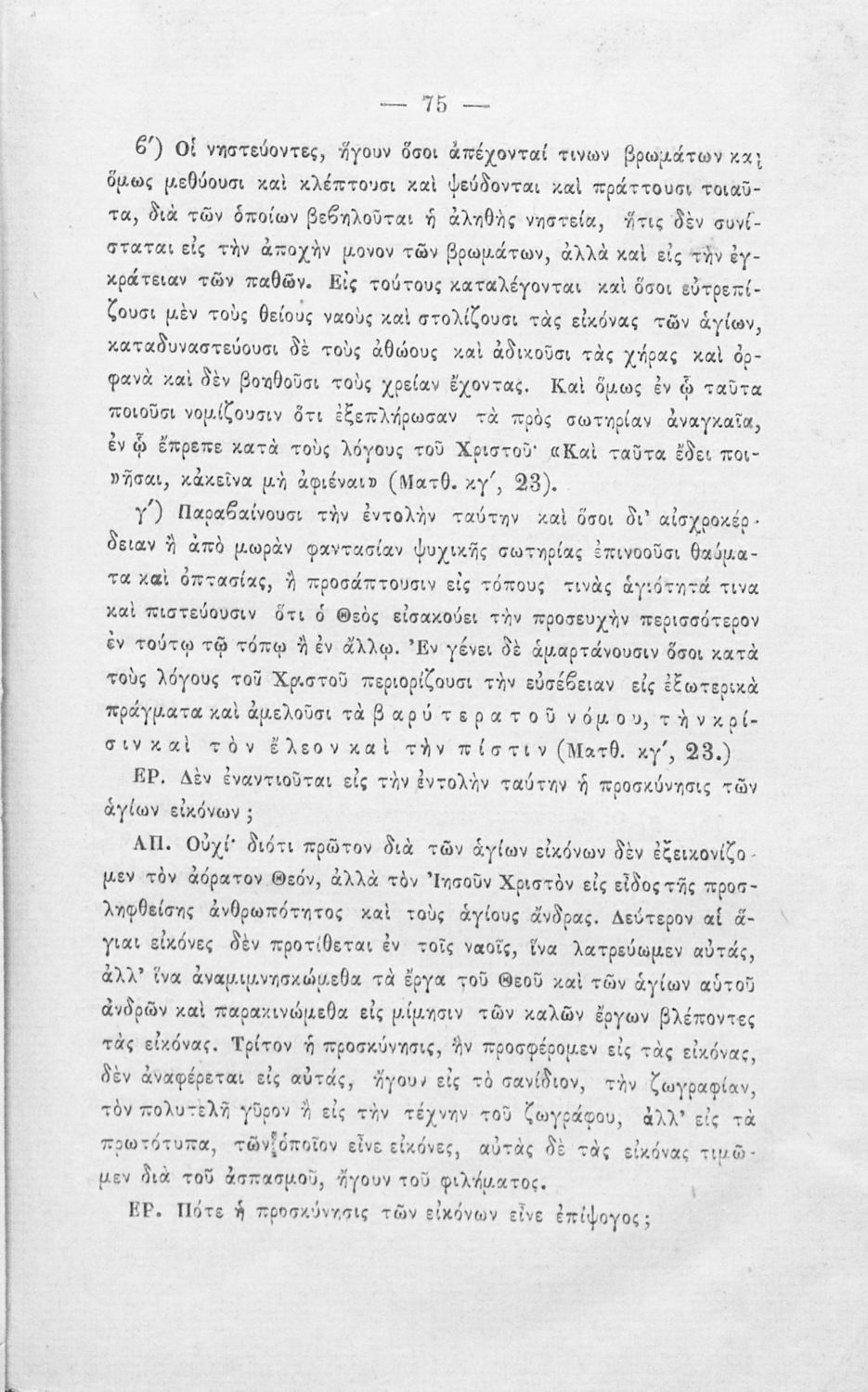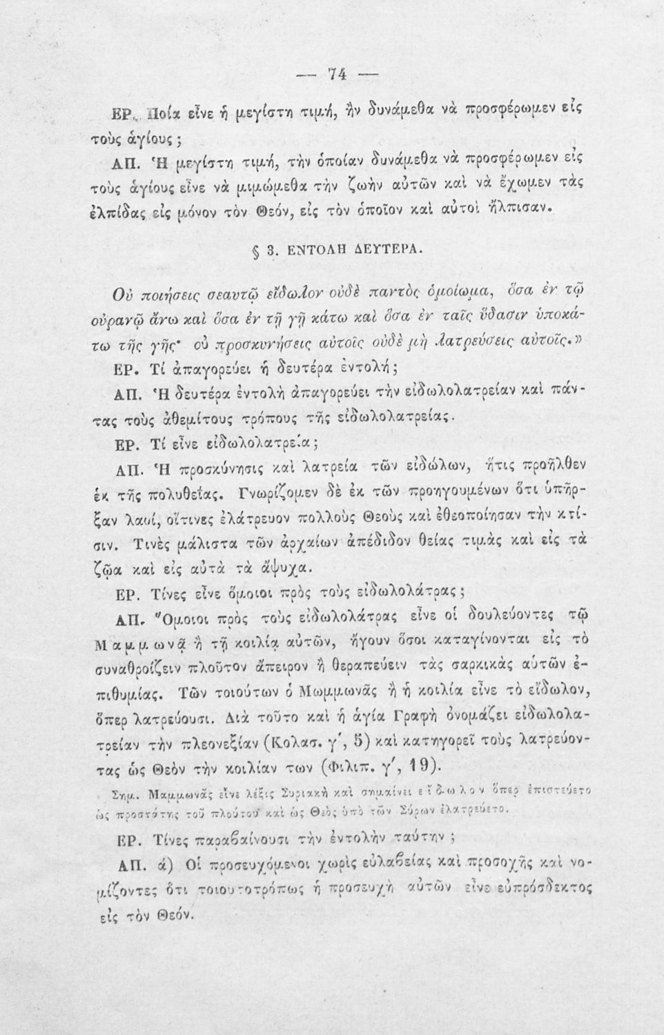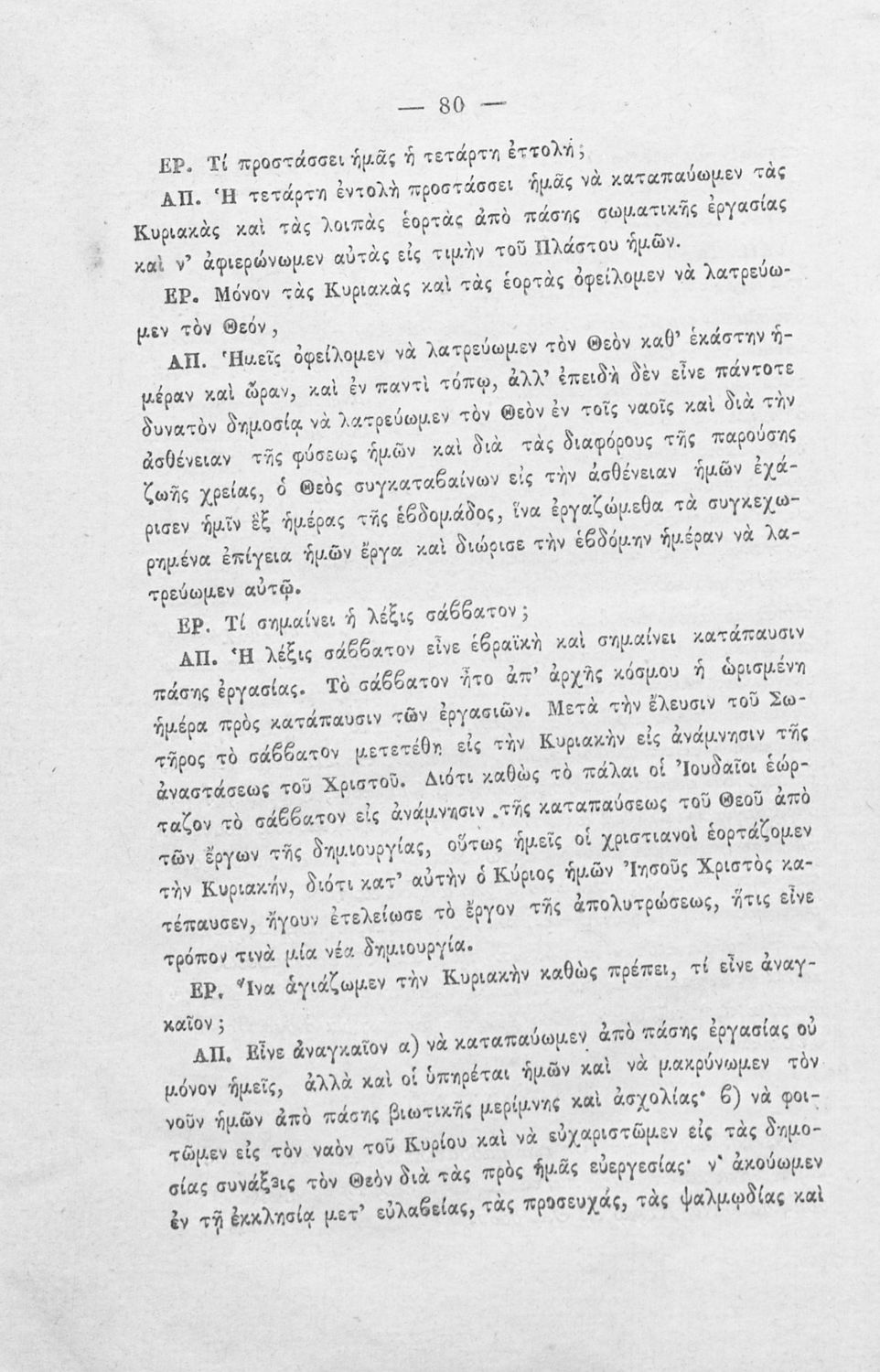 Σχολικό εγχειρίδιο Θρησκευτικών για τα Ελληνικά Σχολεία και Παρθεναγωγεία που εστιάζει σε θέματα χριστιανικής ηθικής και σε δογματικά και ηθικά ζητήματα της ορθόδοξης κατήχησης.