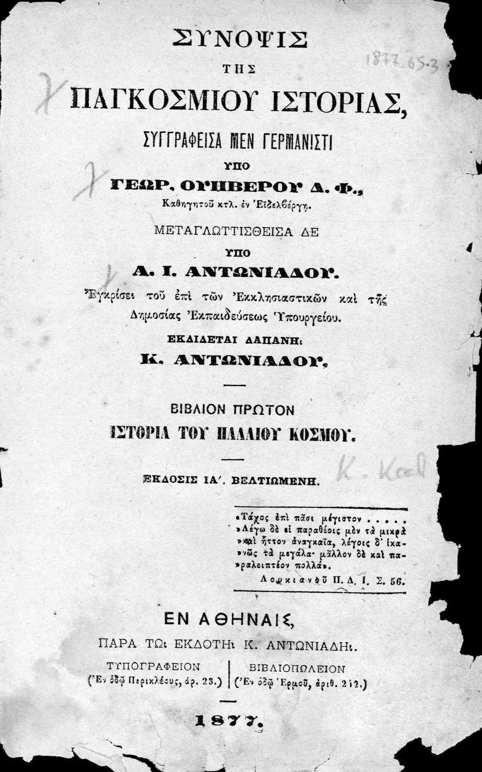 Εκδότης: Κ. Αντωνιάδης Έτος έκδοσης: 1877 Τόπος έκδοσης: Αθήνα Έκδοση: 11η |