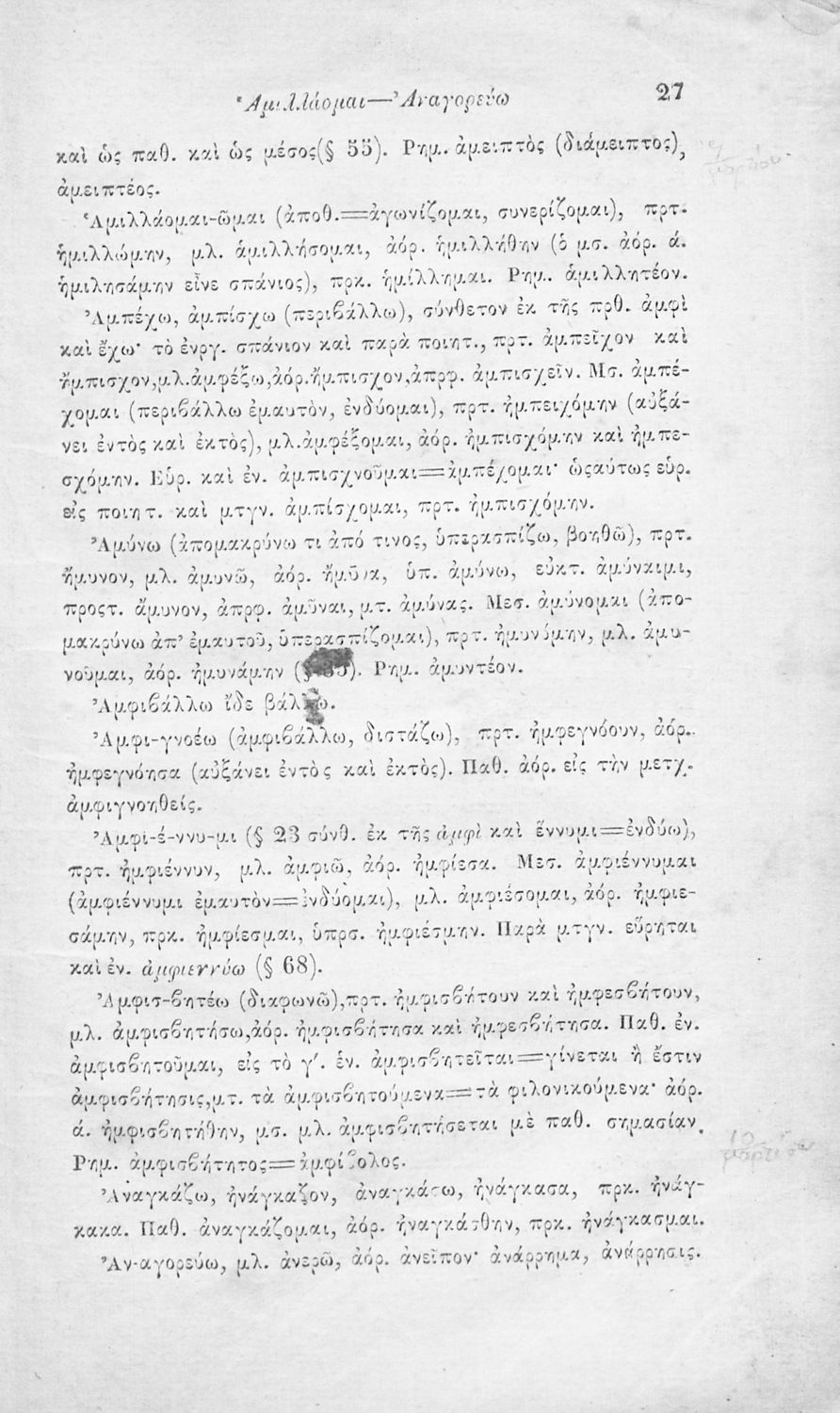 Μαθητικό βοήθημα Αρχαίων Ελληνικών για τους μαθητές των Ελληνικών Σχολείων και των Γυμνασίων που περιέχει κατάλογο ανωμάλων κι ελλιπών ρημάτων.